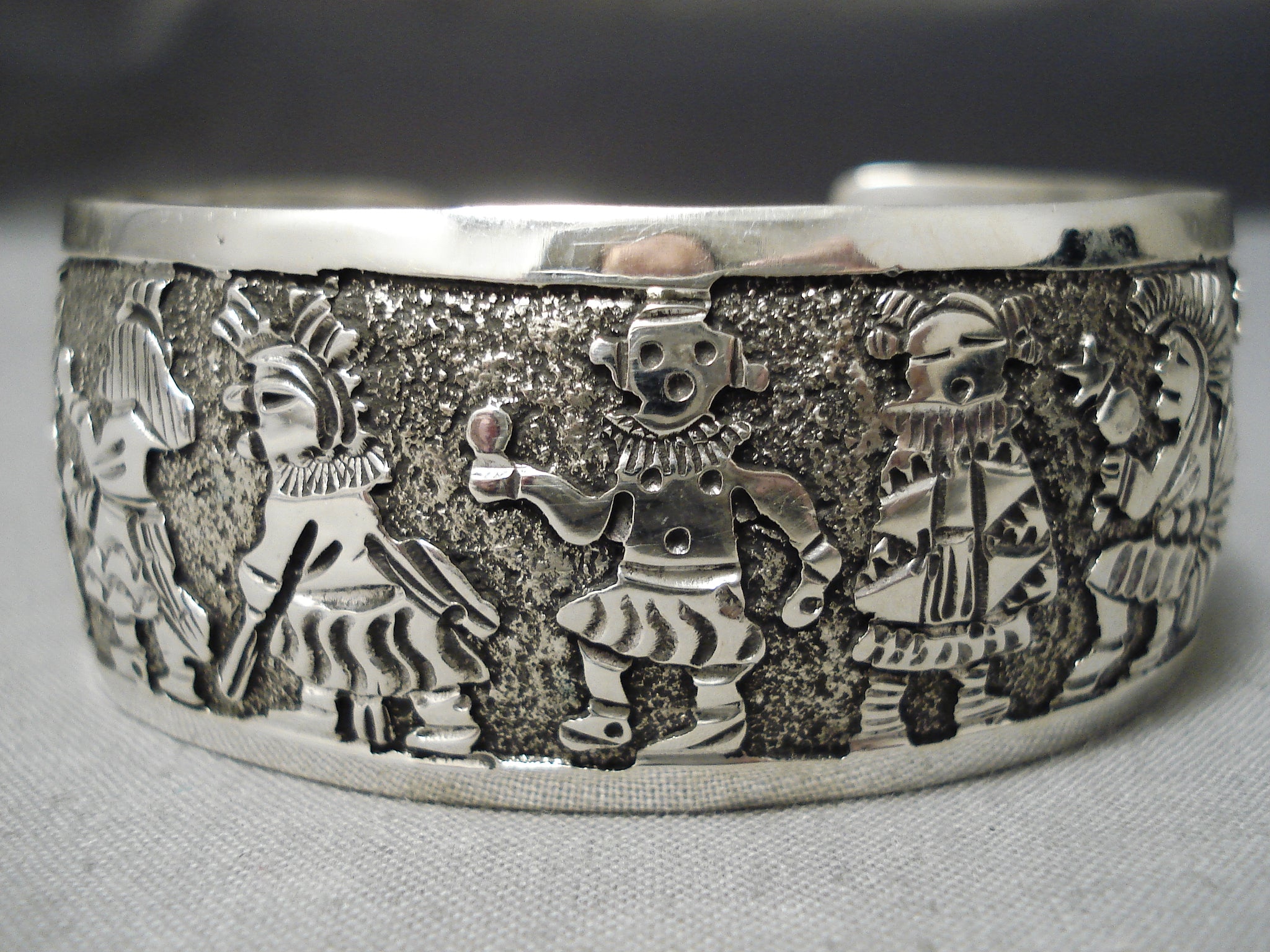 Detailed Dancing Kachina Navajo Sterling Silver Native American Bracelet