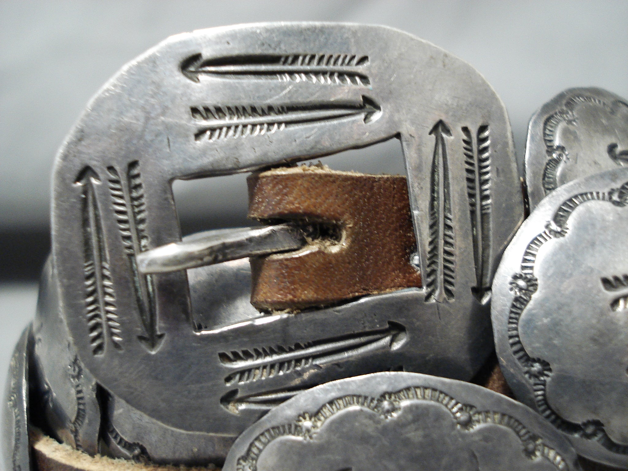 Detailed Early Vintage Native American Navajo Sterling Silver Arrow Concho Belt Old