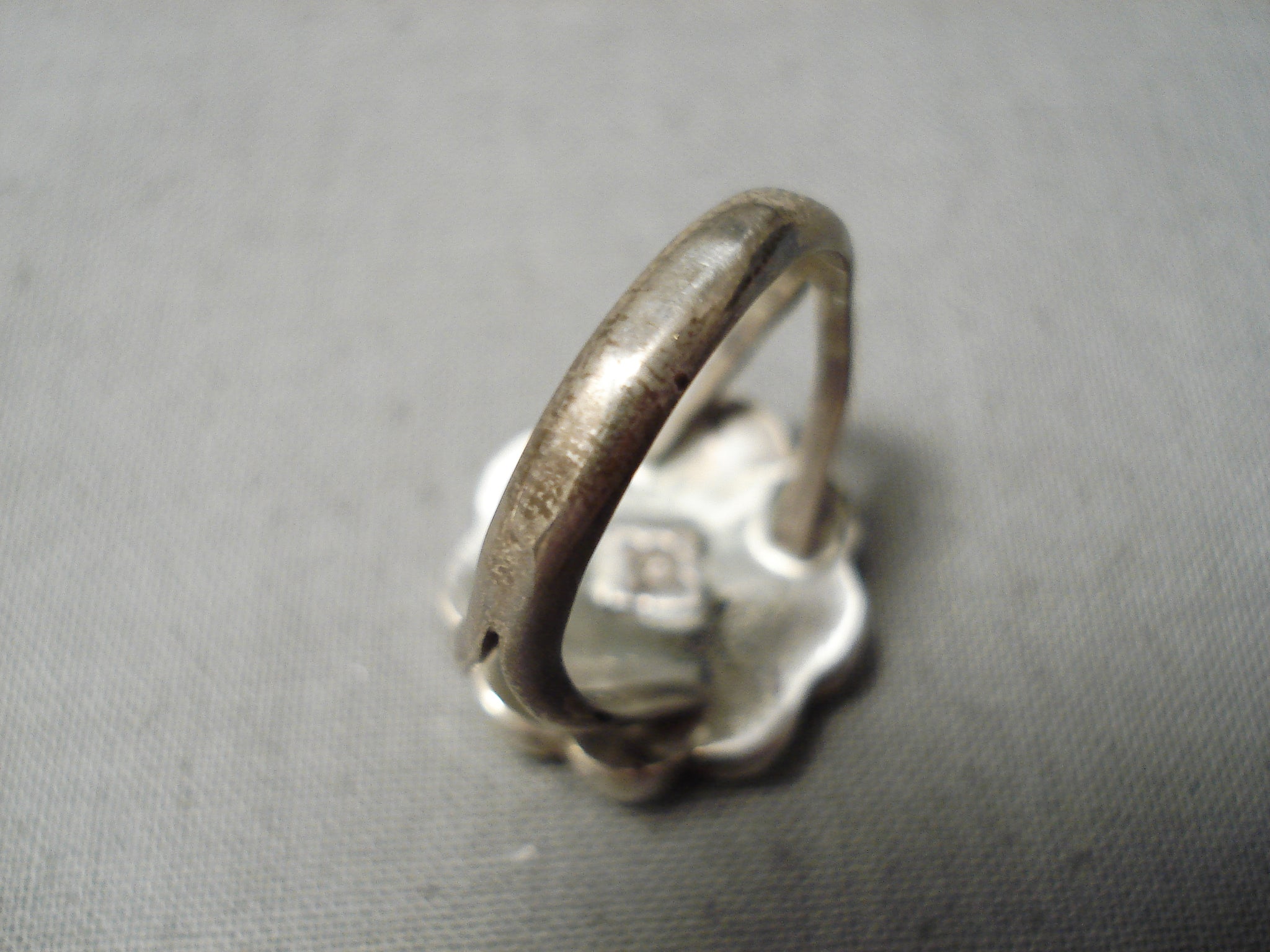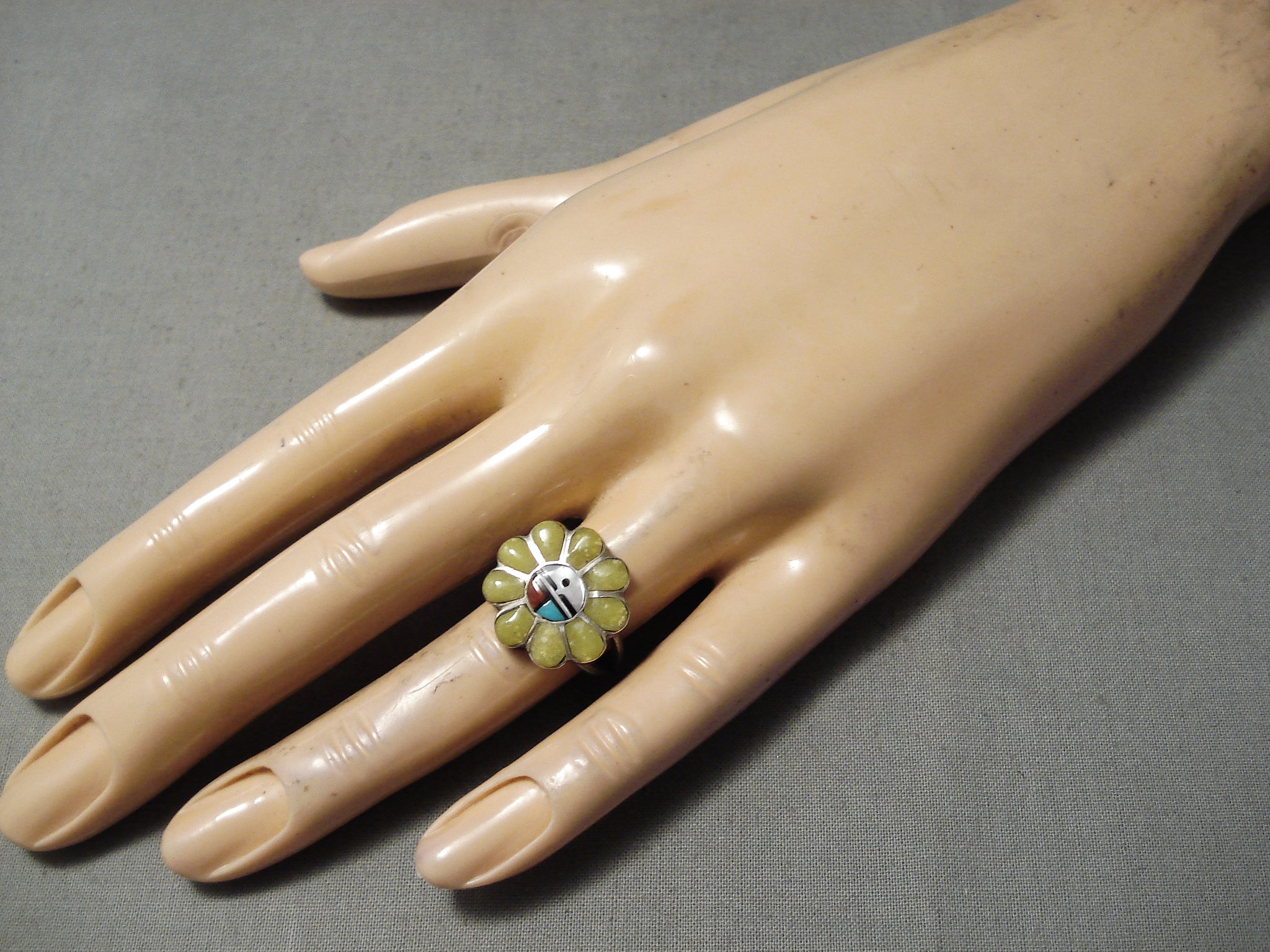 Detailed Flower Vintage Zuni Native American Turquoise Sterling Silver Ring