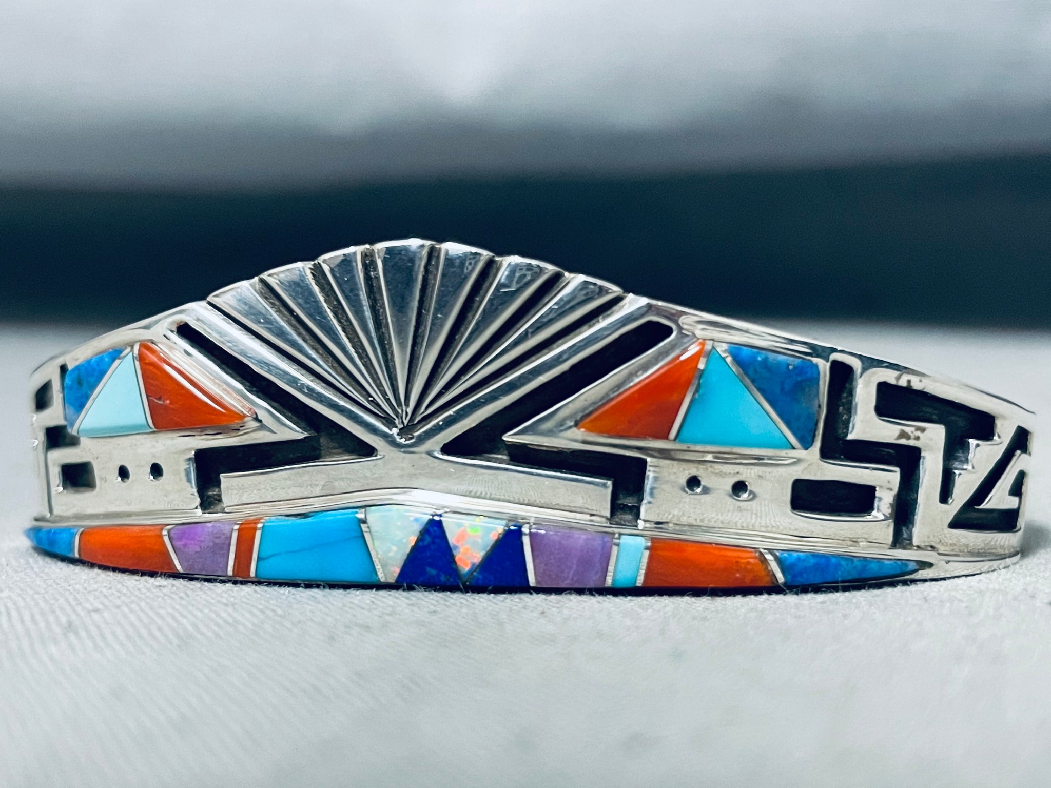 Detailed Important Vintage Native American Navajo Earl Turquoise Sterling Silver Bracelet