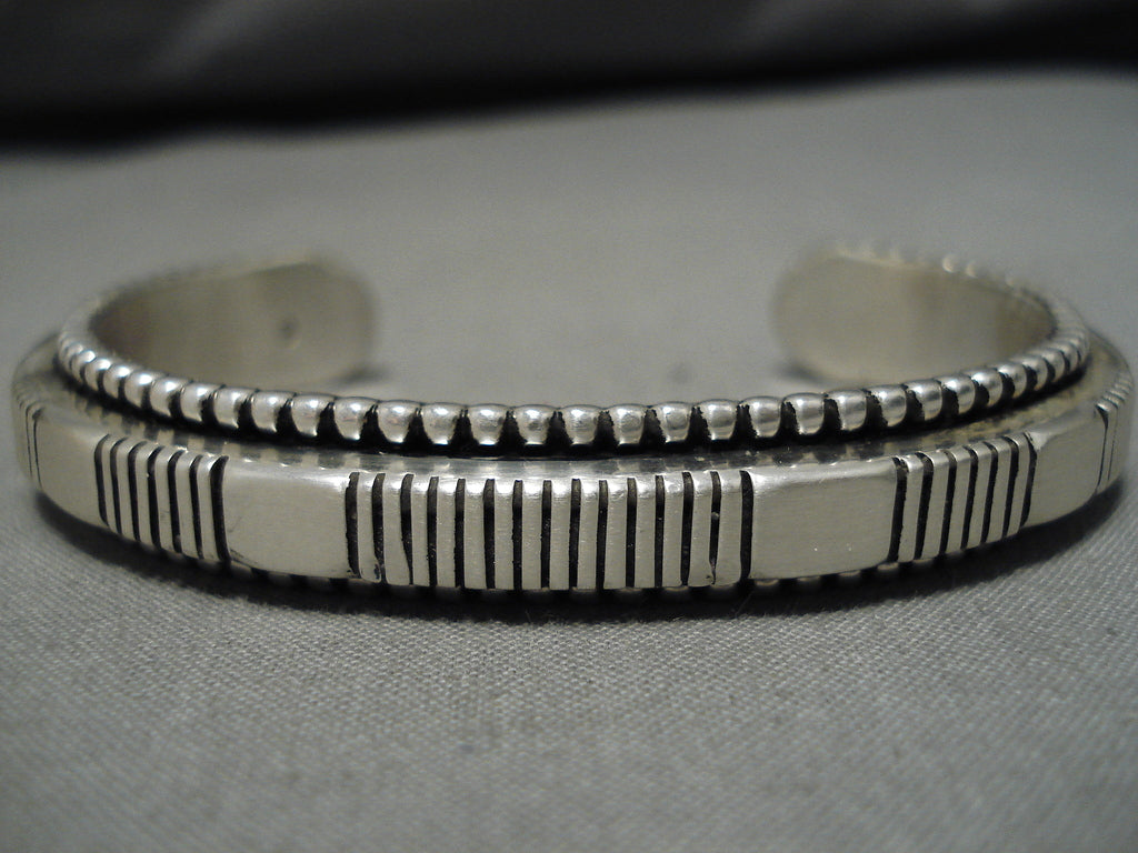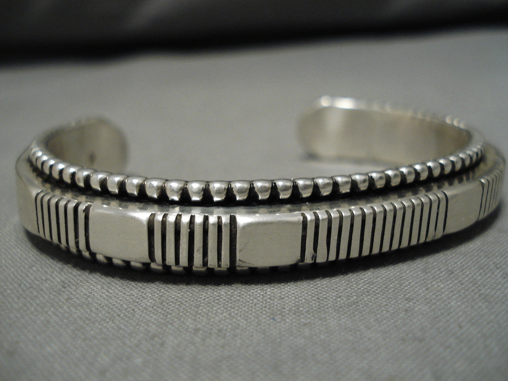 Detailed Johnny Nez Vintage Navajo Sterling Silver Native American Bracelet