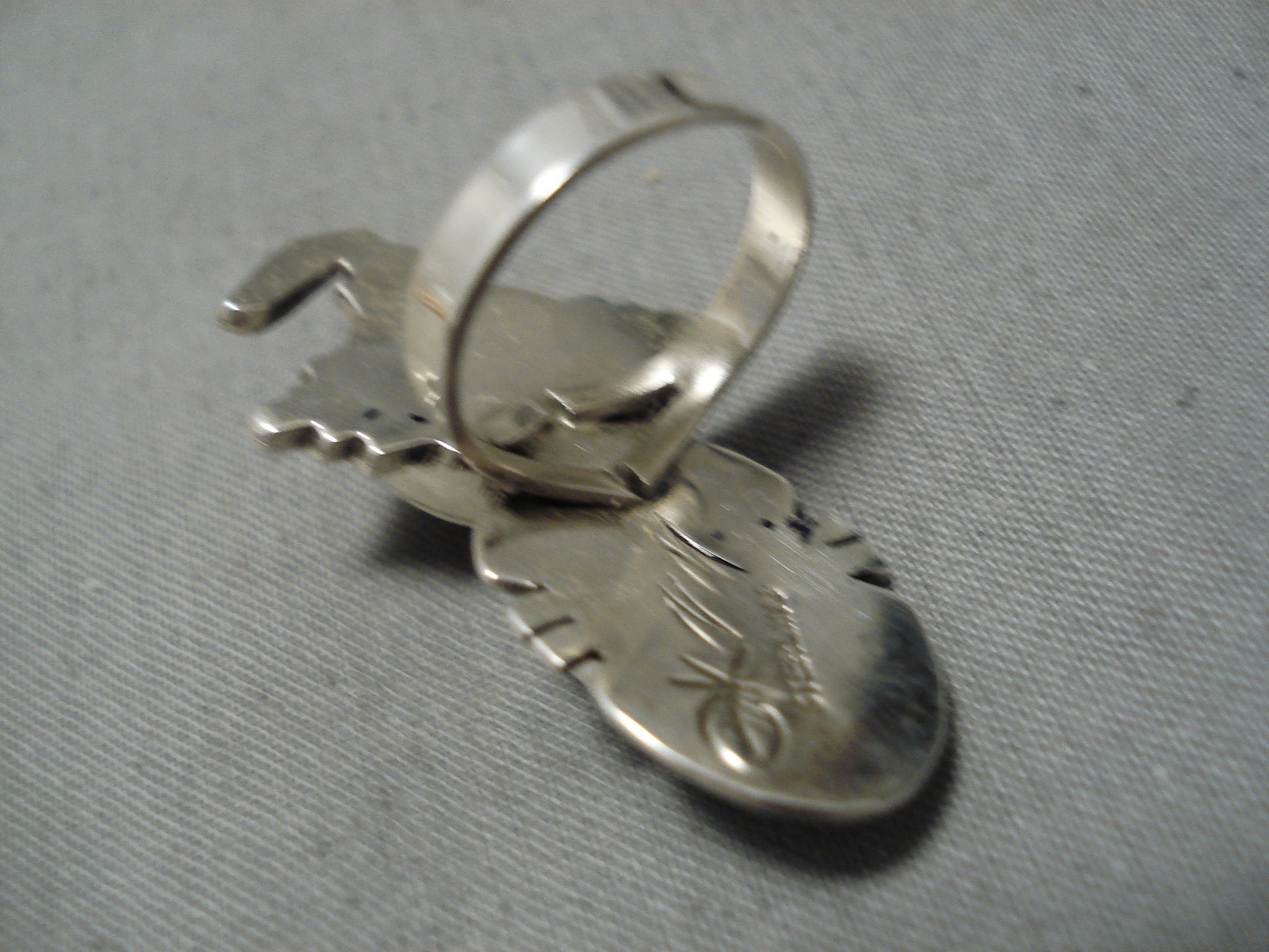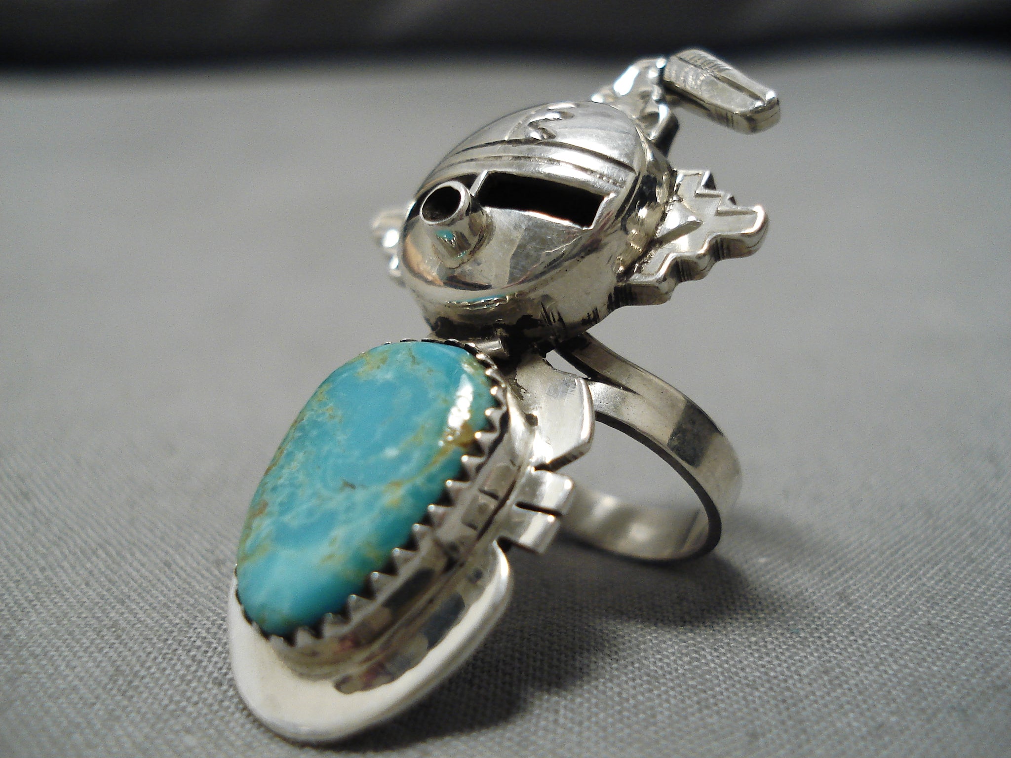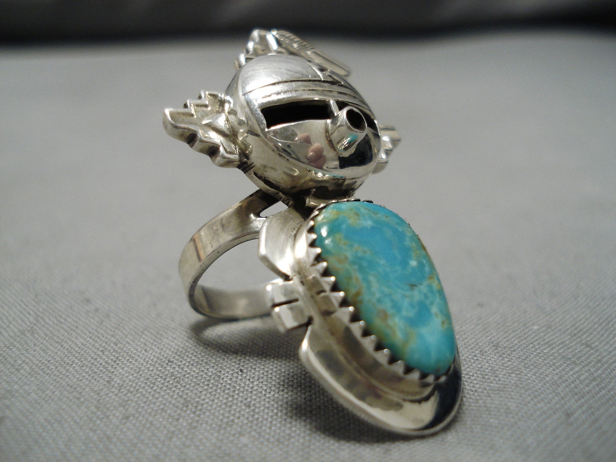 Detailed!! Native American Navajo Kachina Royston Turquoise Sterling Silver Ring