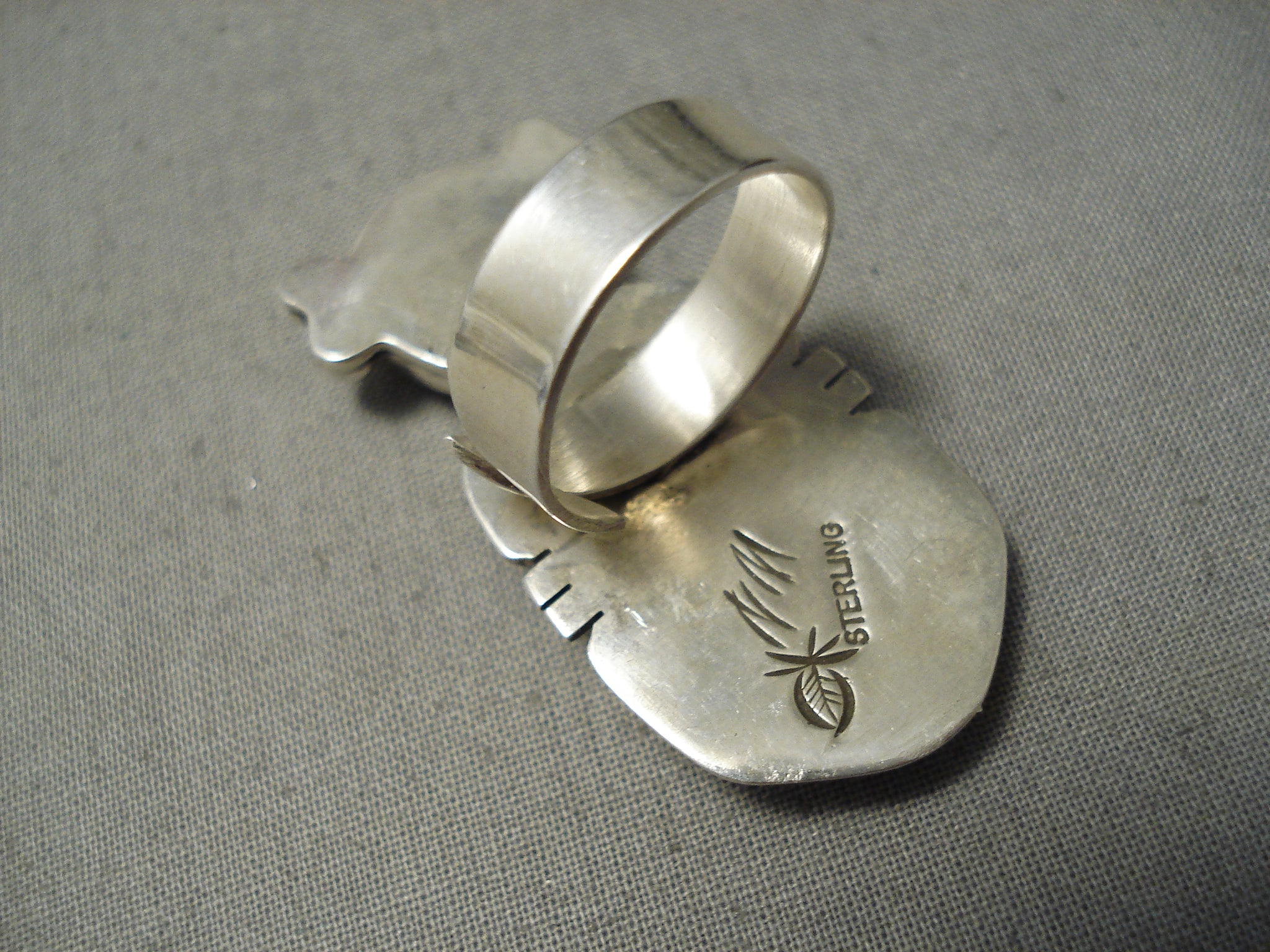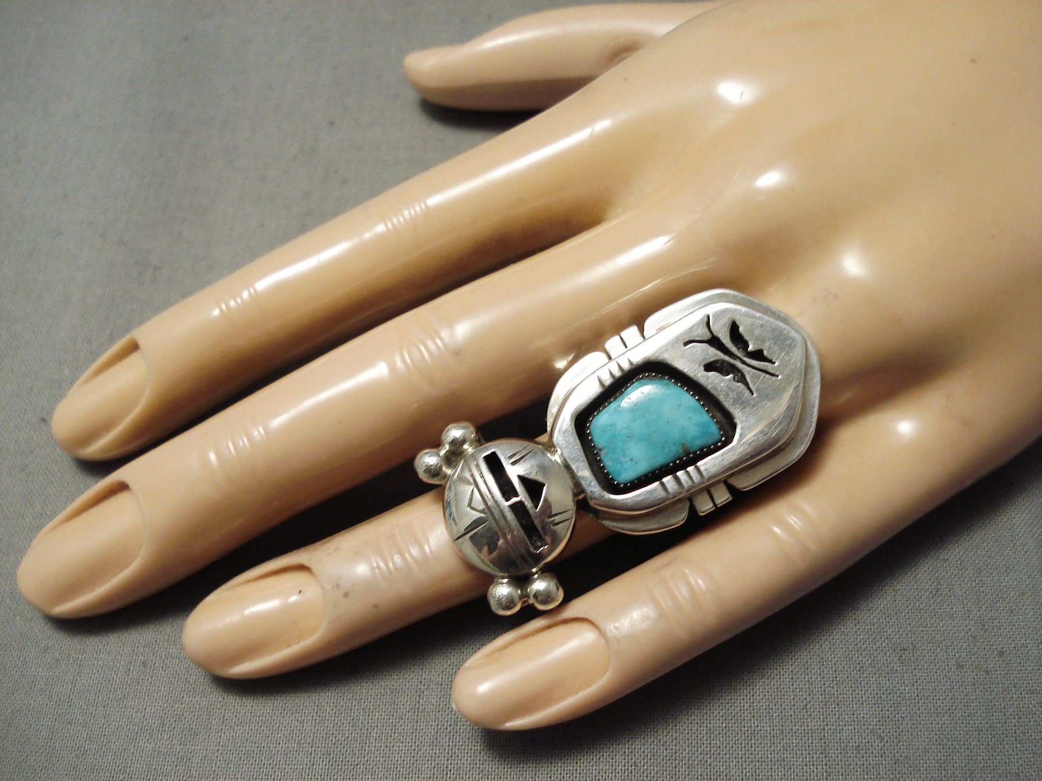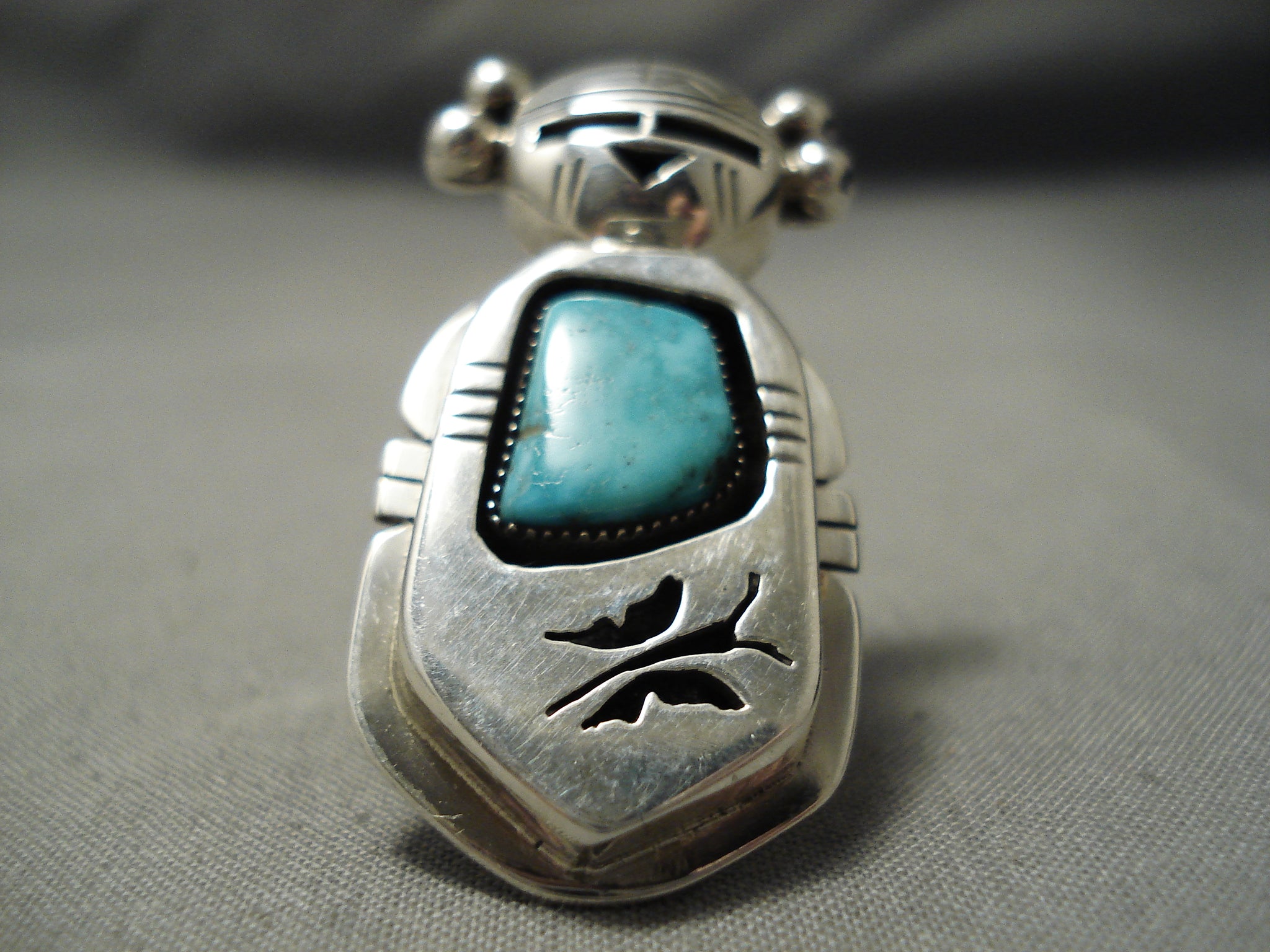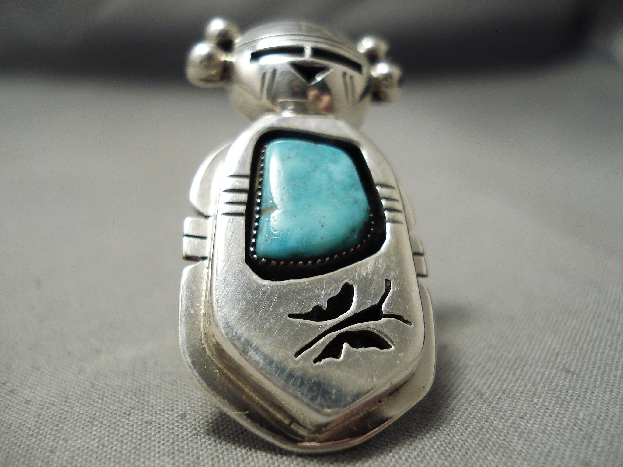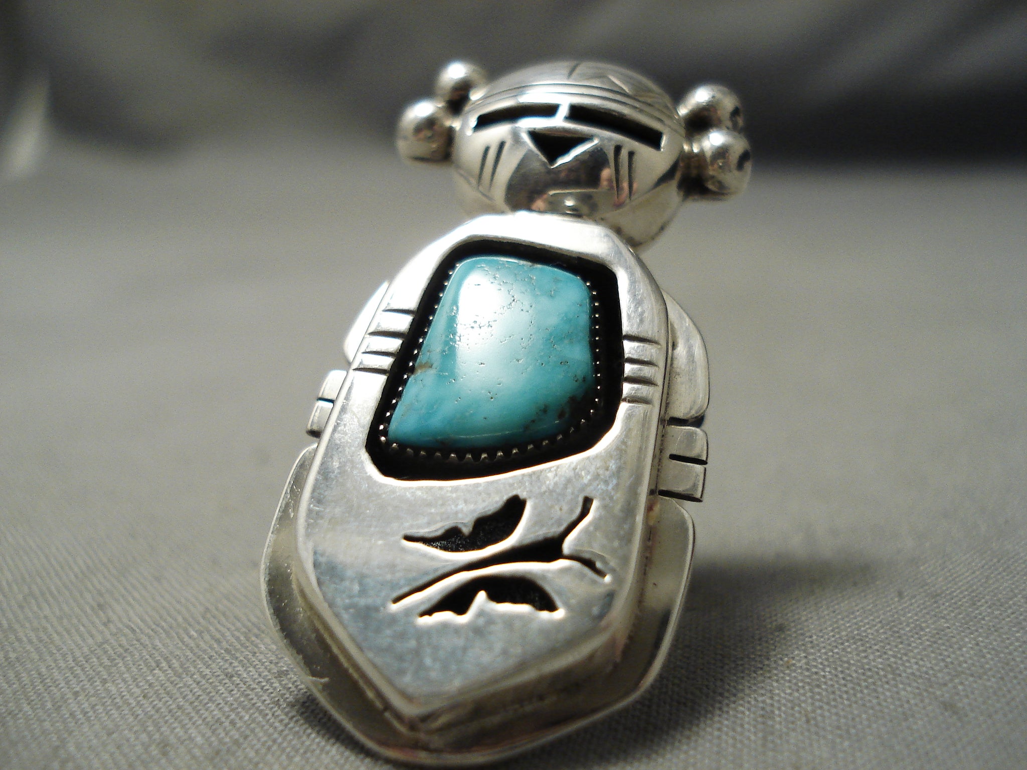 Detailed!! Native American Navajo Kachina Sterling Silver Blue Turquoise Ring