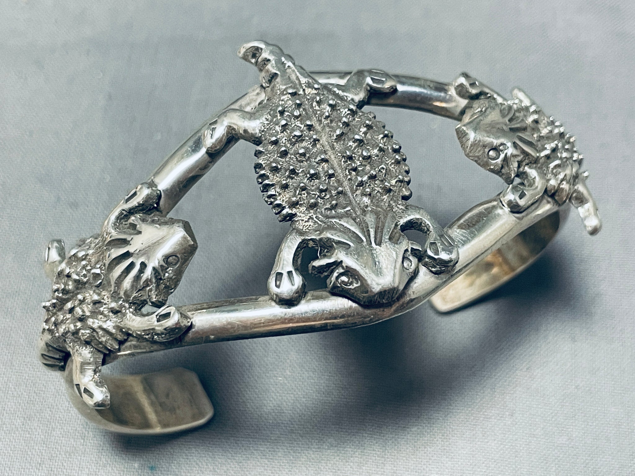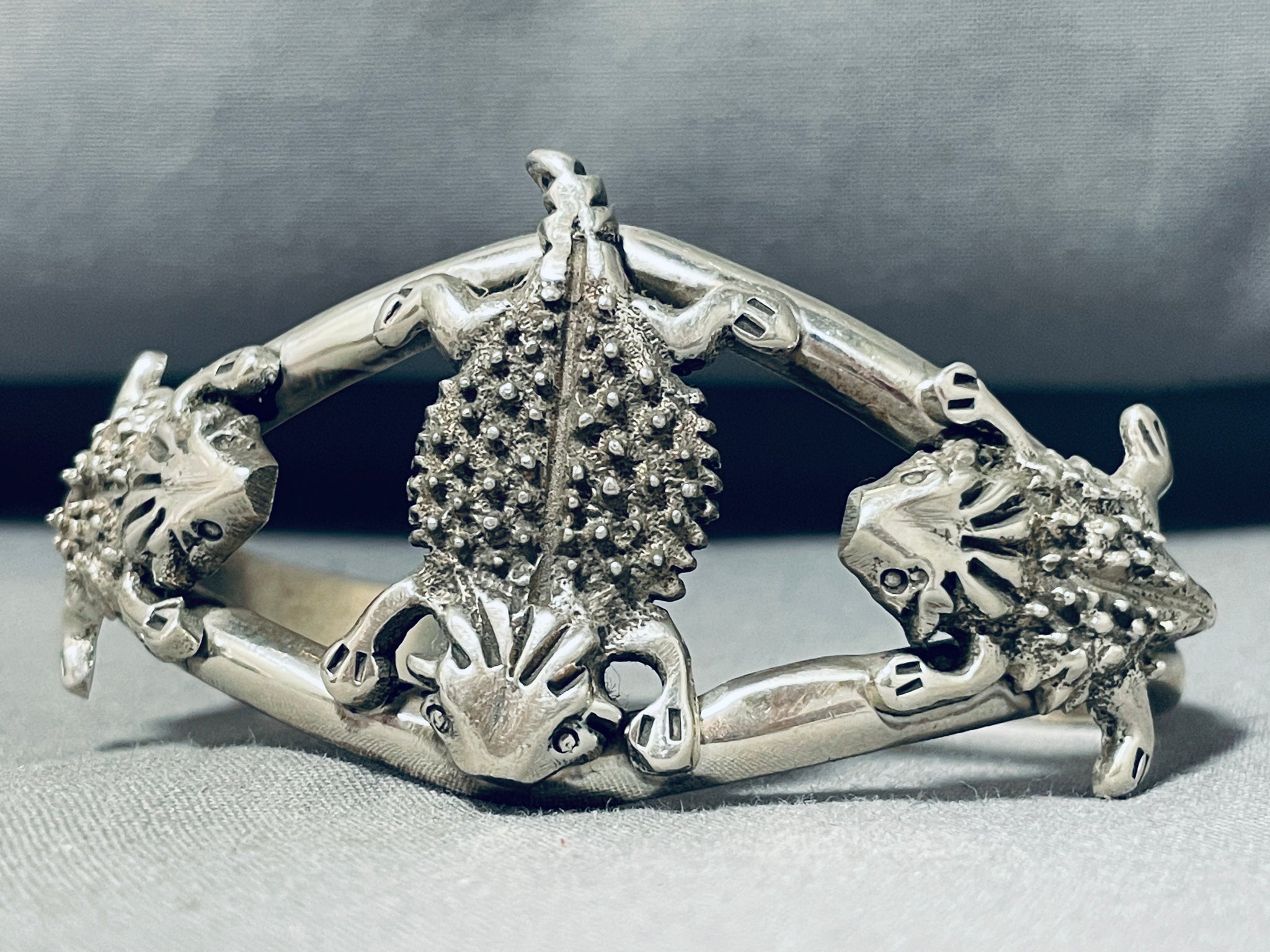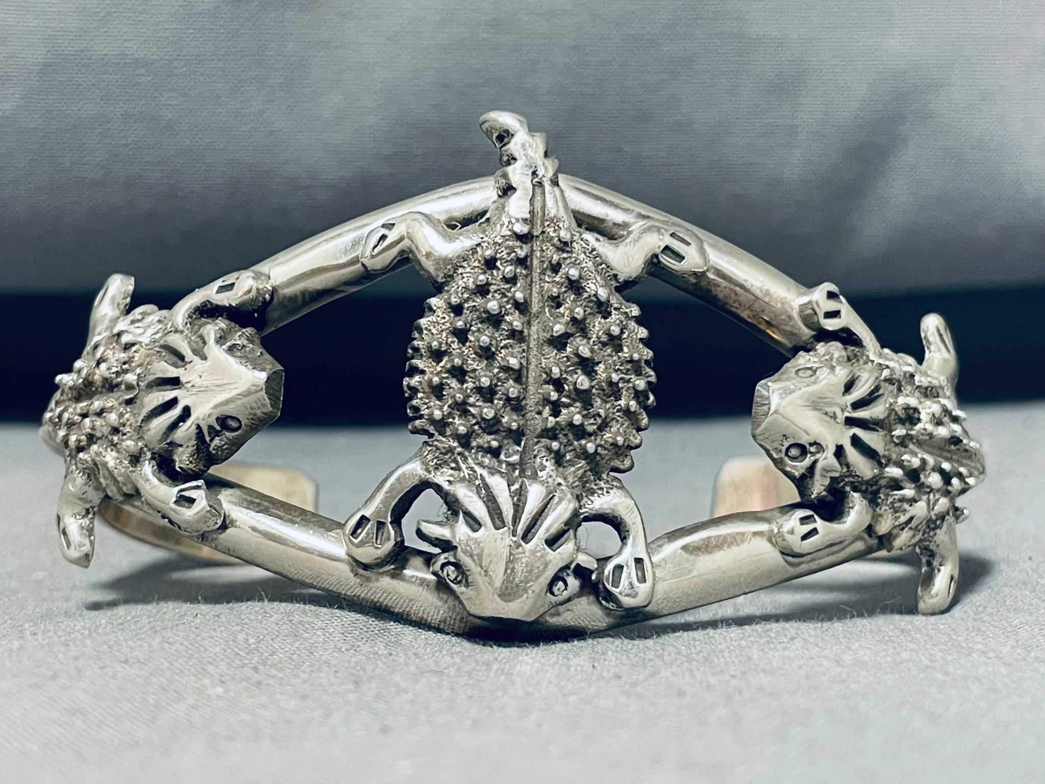 Detailed Native American Navajo Sterling Silver Toad Bracelet