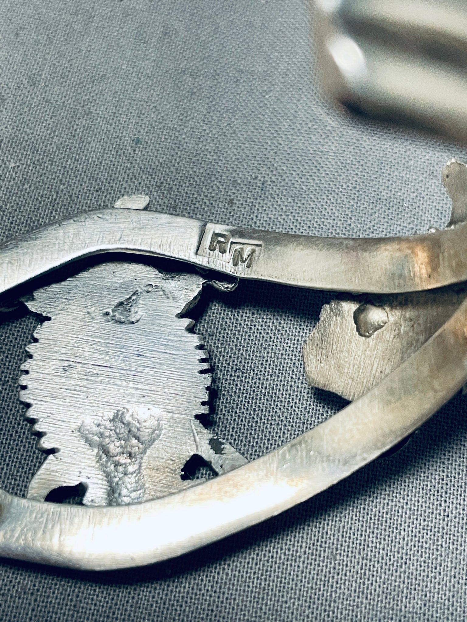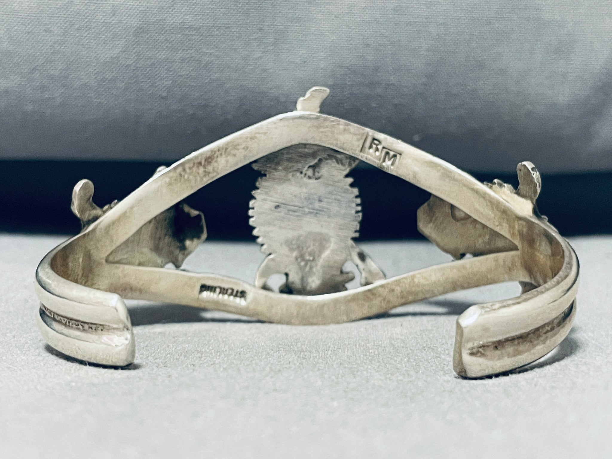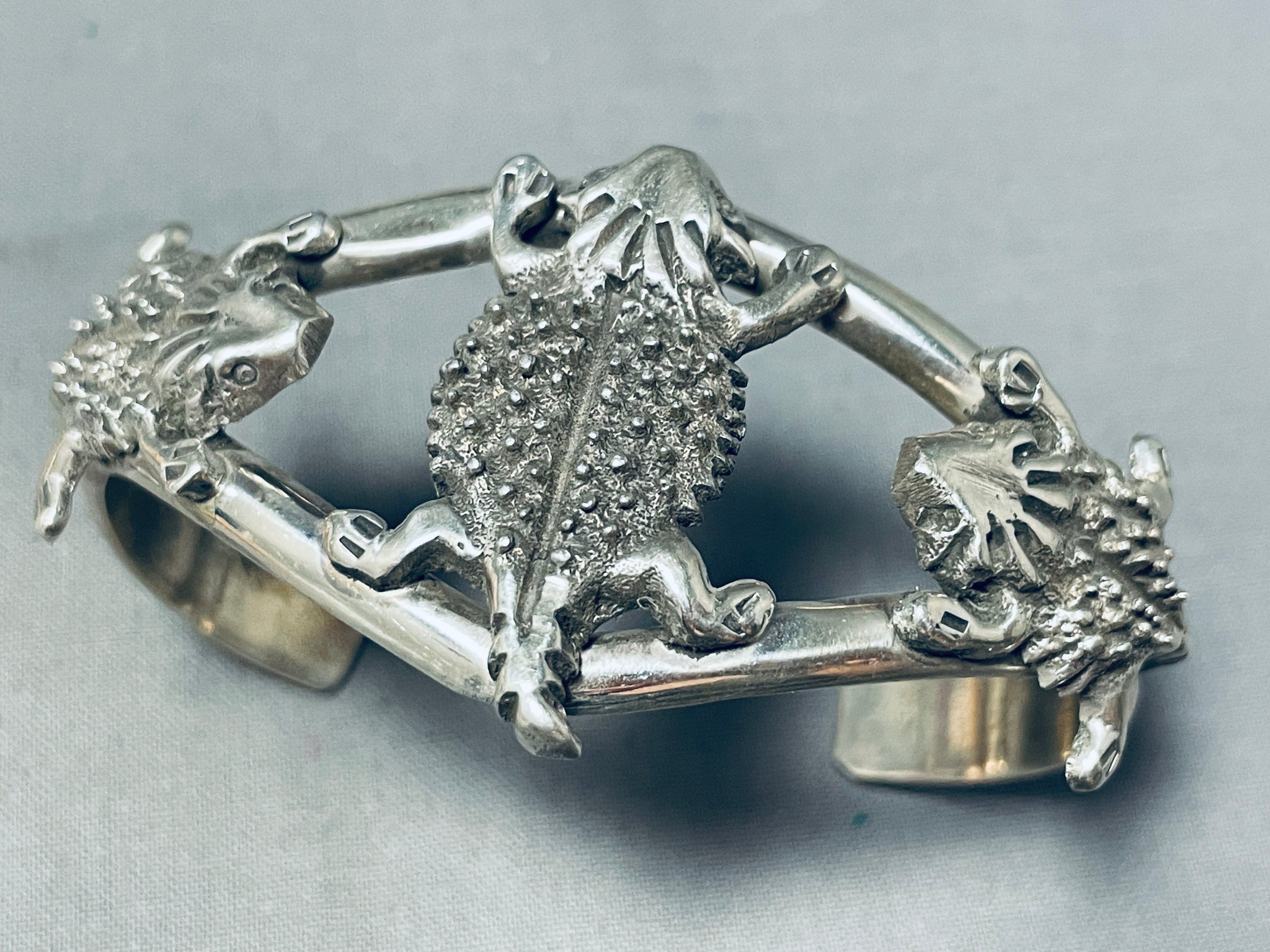Detailed Native American Navajo Sterling Silver Toad Bracelet