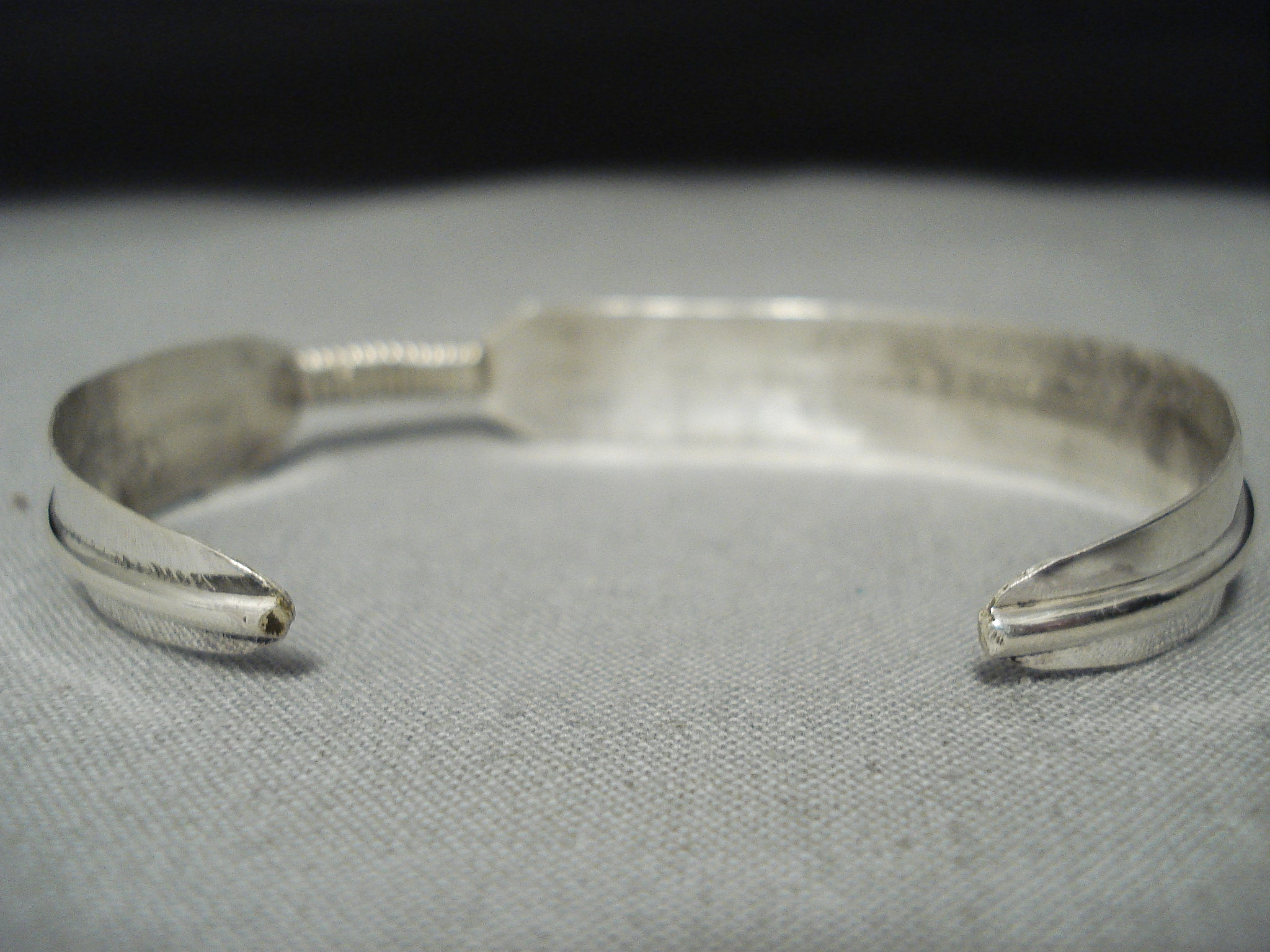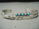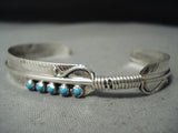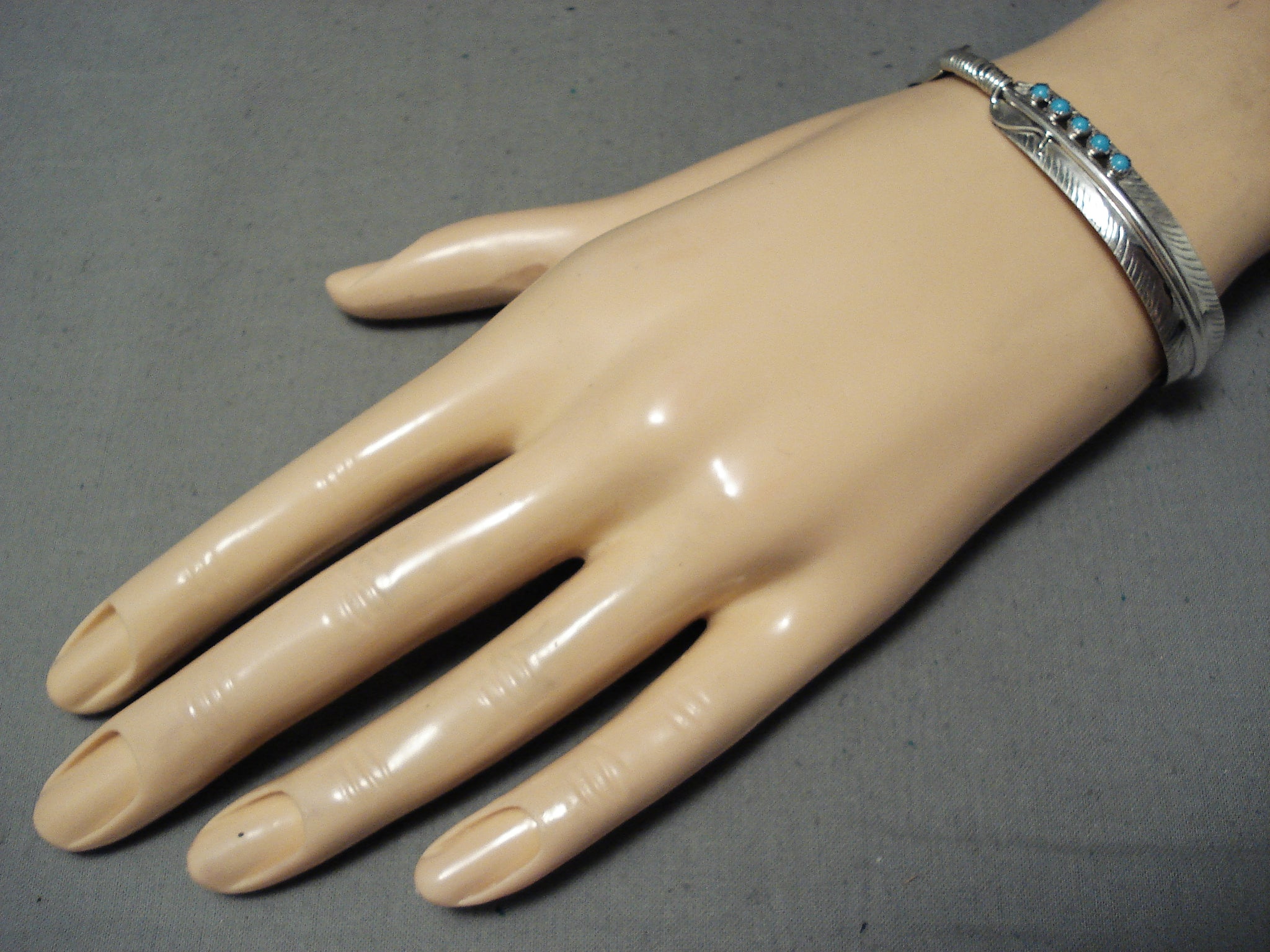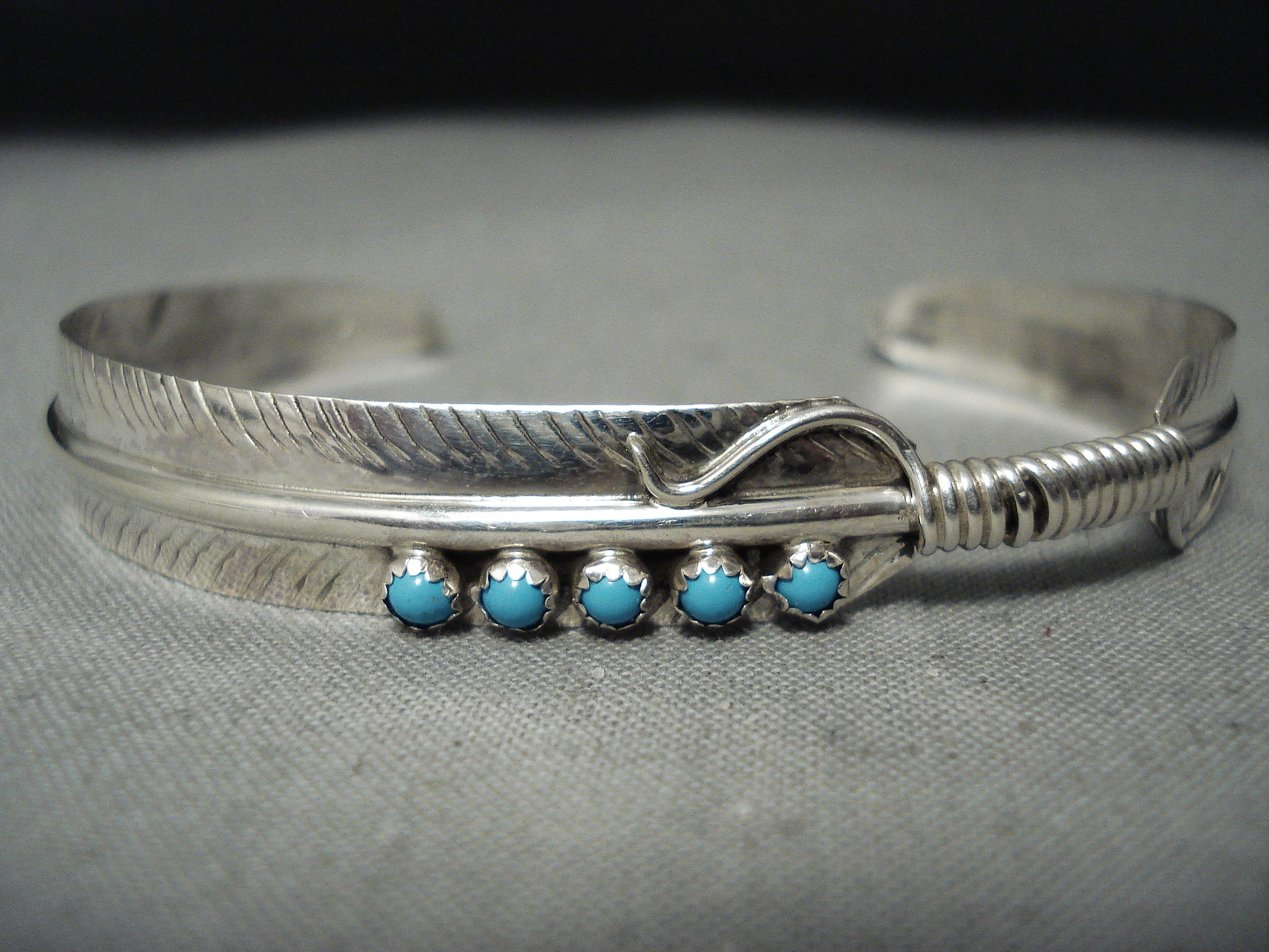 Detailed Native American Navajo Turquoise Snake Eyes Feather Sterling Silver Bracelet