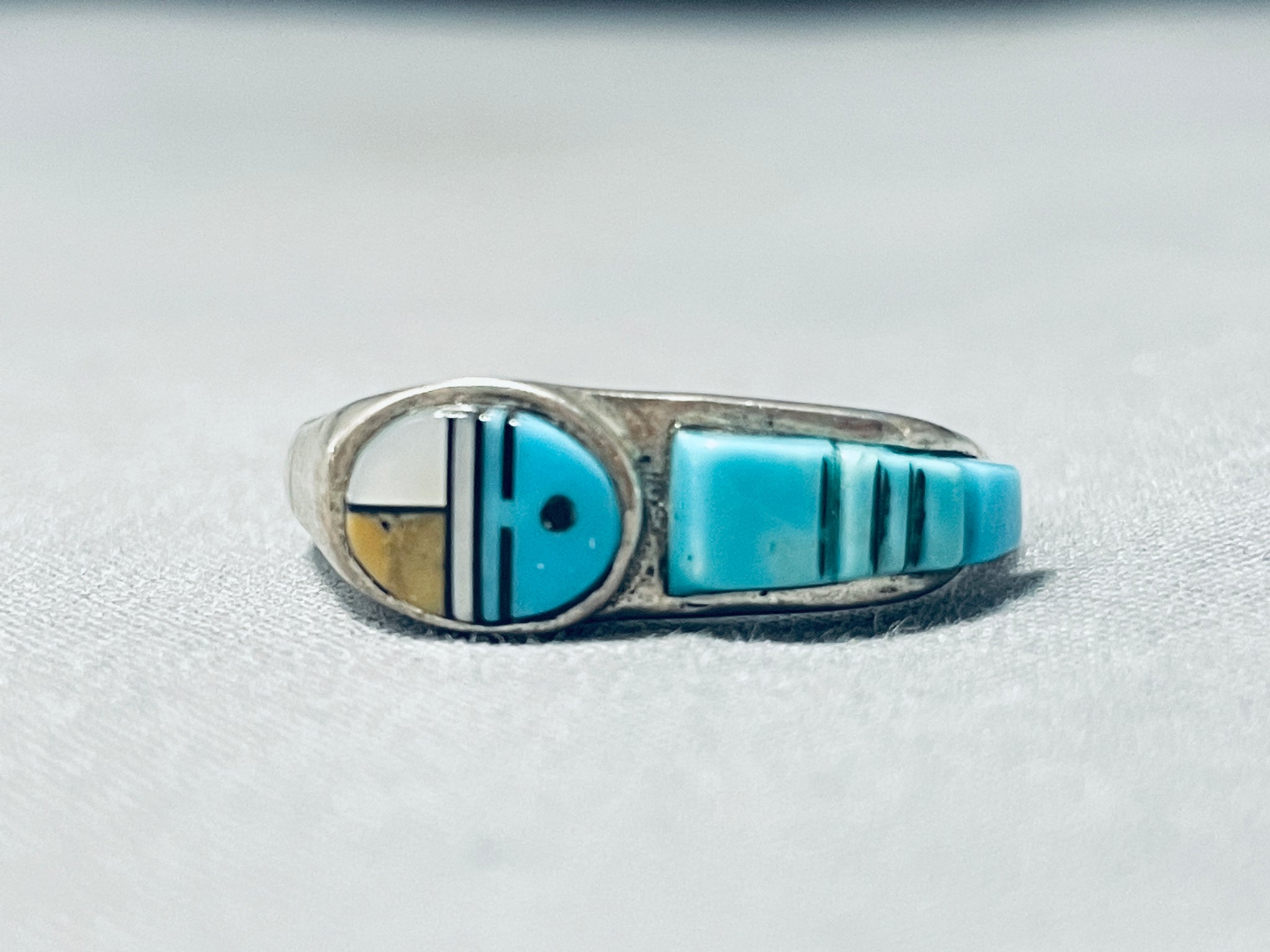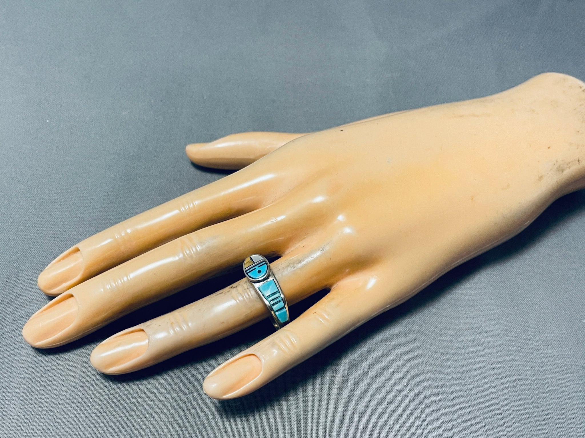Detailed Native American Navajo Turquoise Sterling Silver Sunface Ring