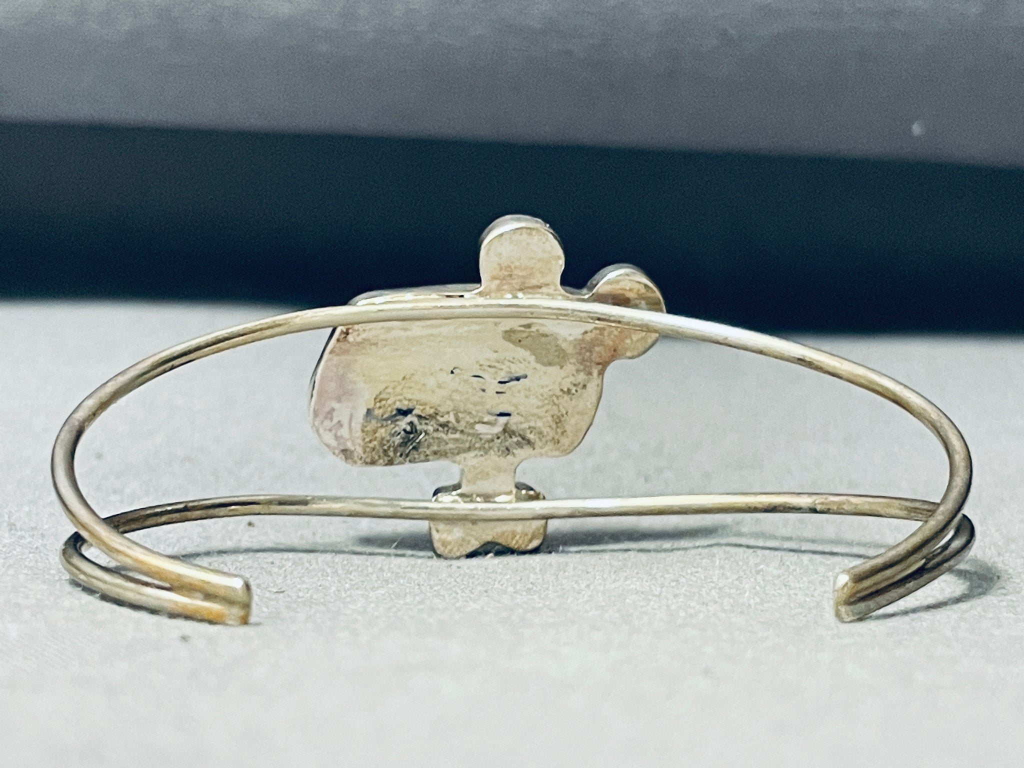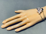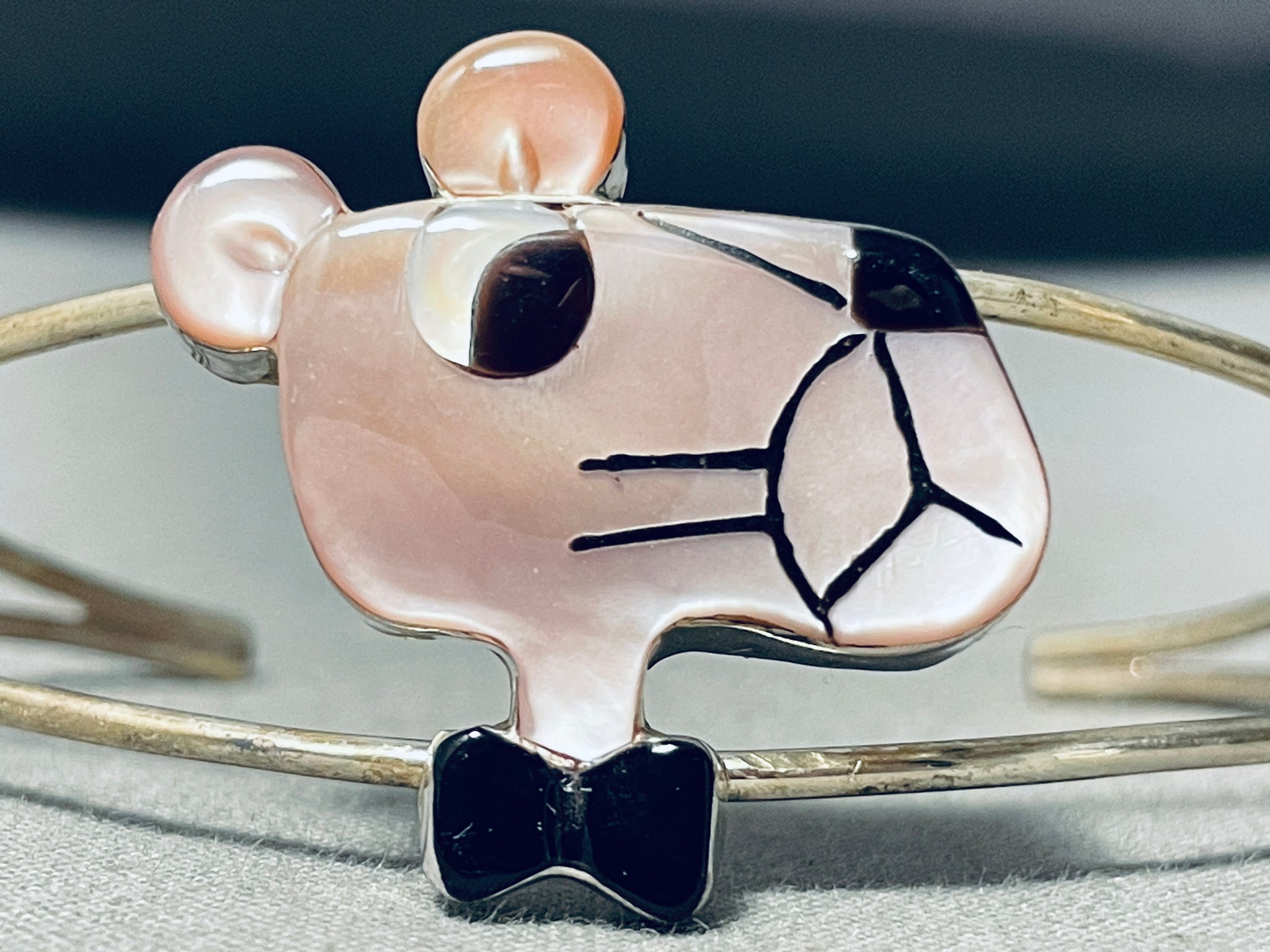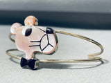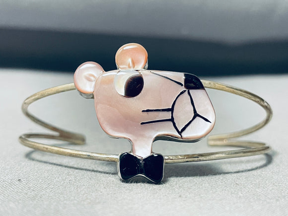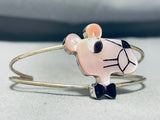 Detailed Pink Panther Vintage Native American Zuni Pink Shell Sterling Silver Inlay Bracelet