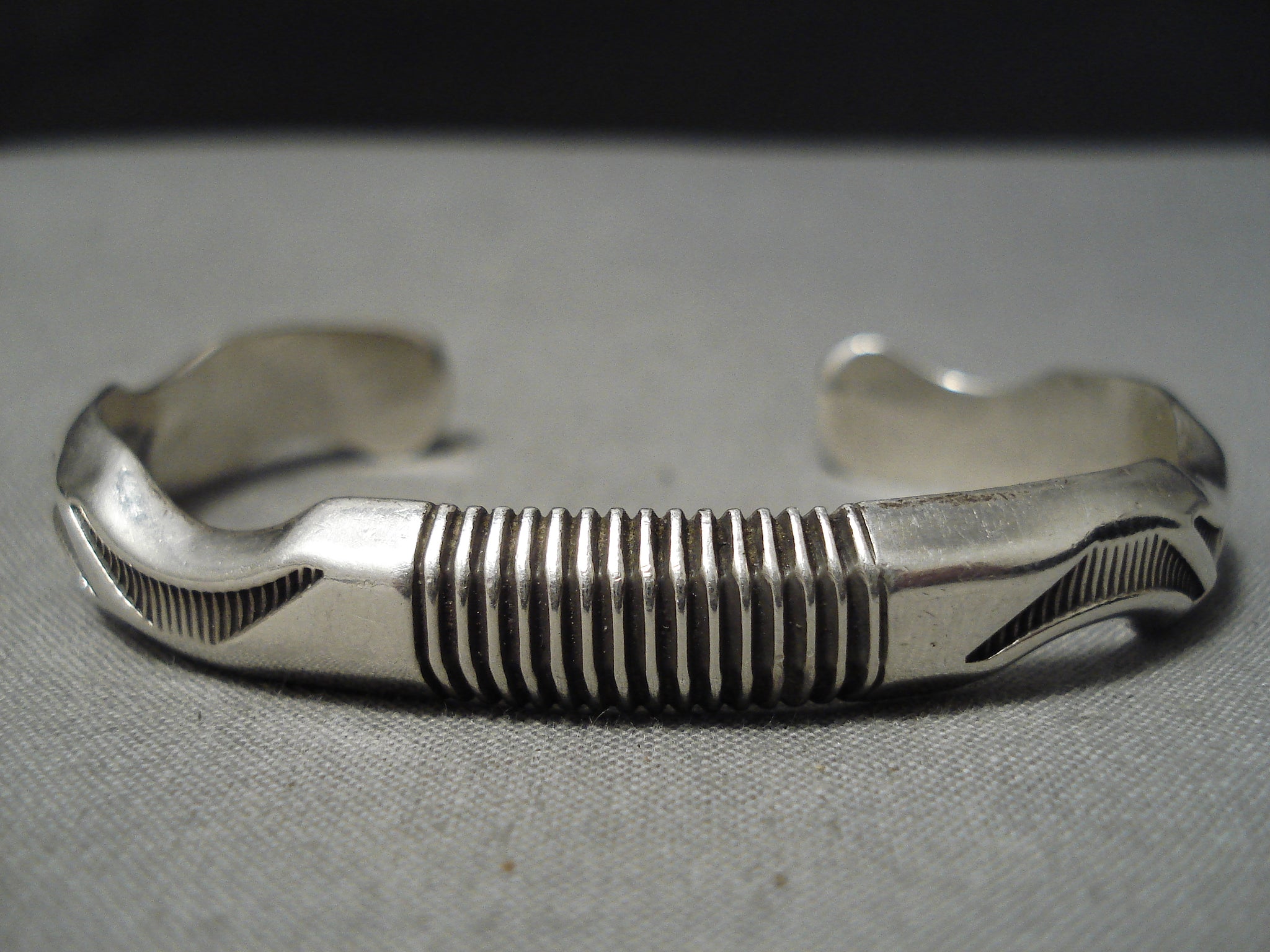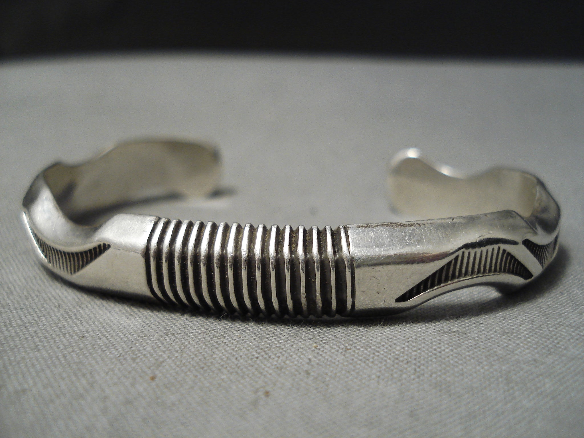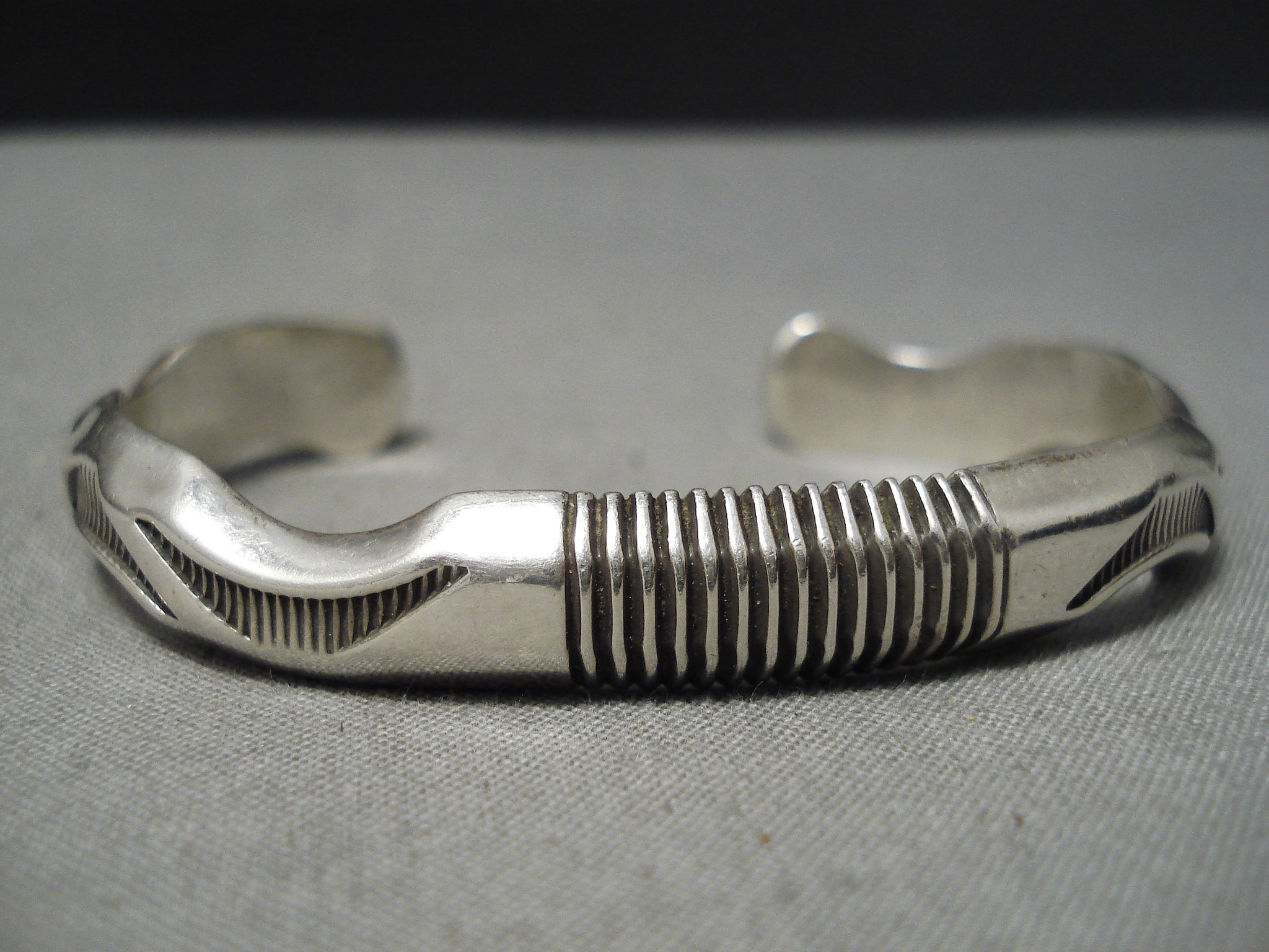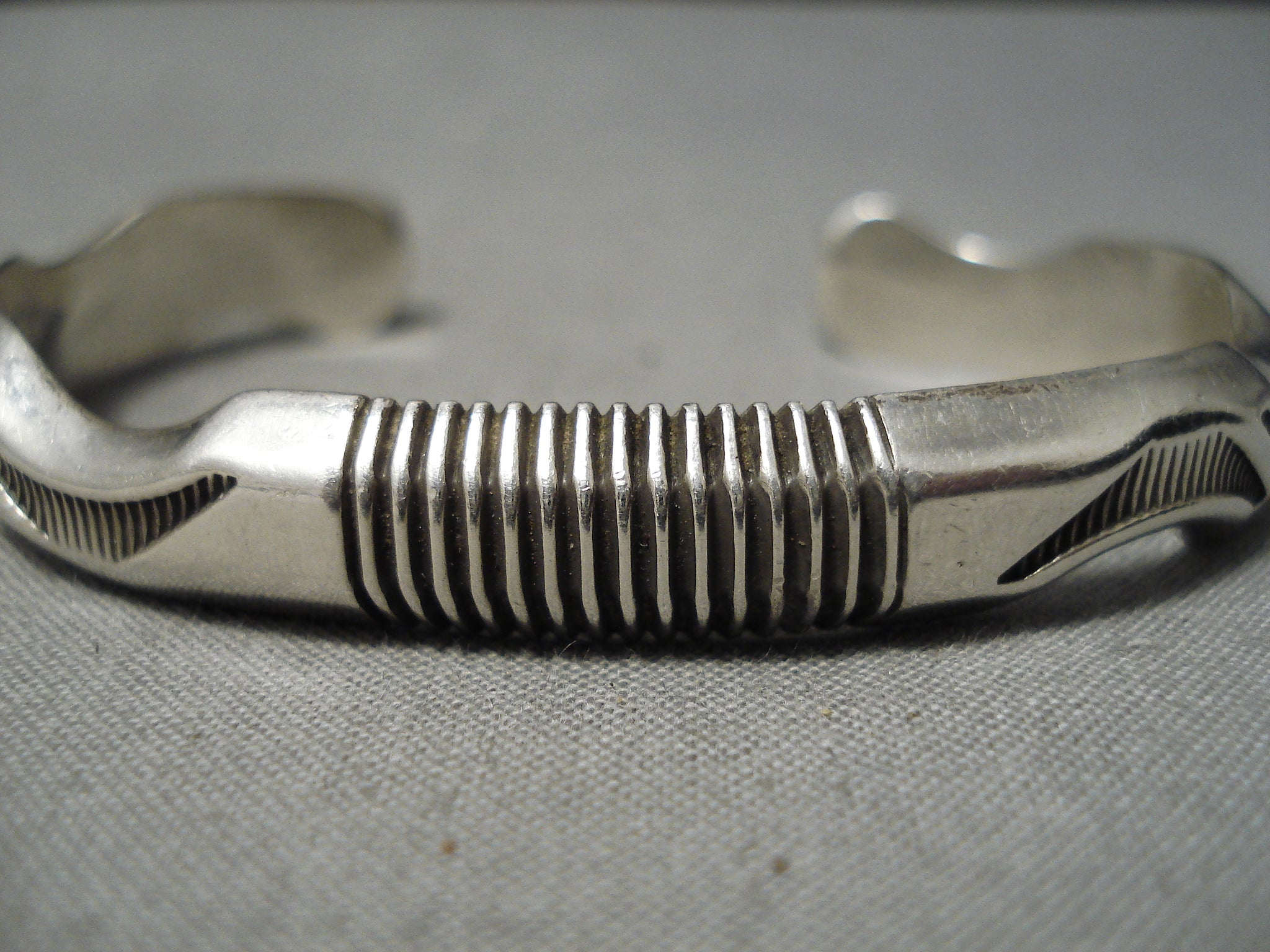 Detailed Thick Intricate Native American Navajo Sterling Silver Channel Bracelet