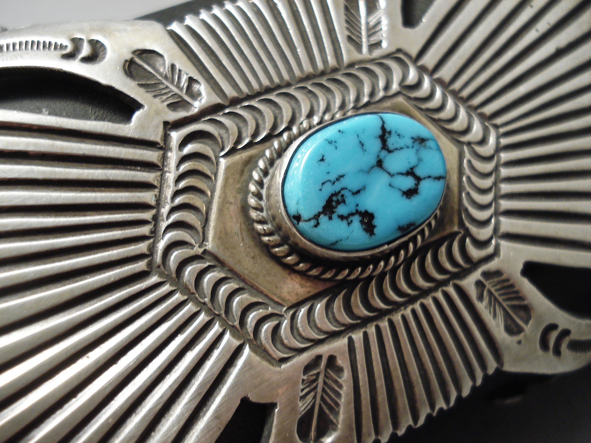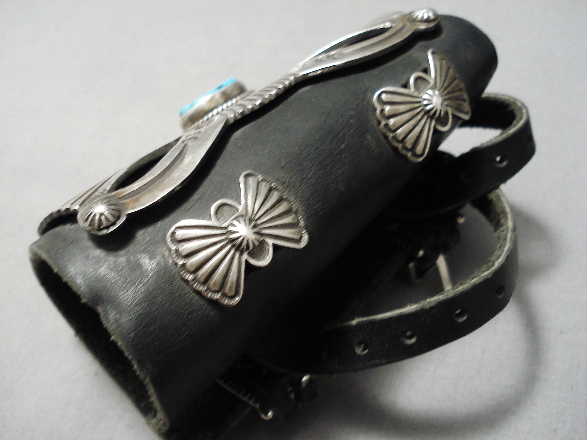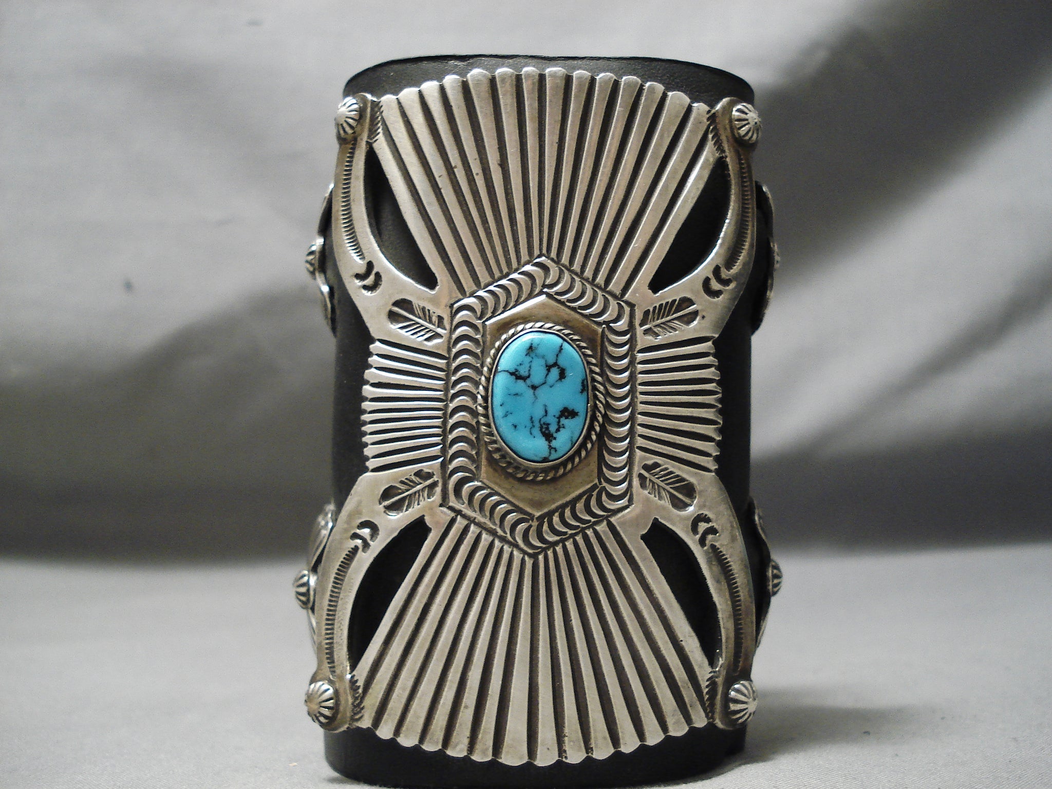 Detailed Towering Vintage Native American Navajo Blue Turquoise Sterling Silver Ketoh Bracelet