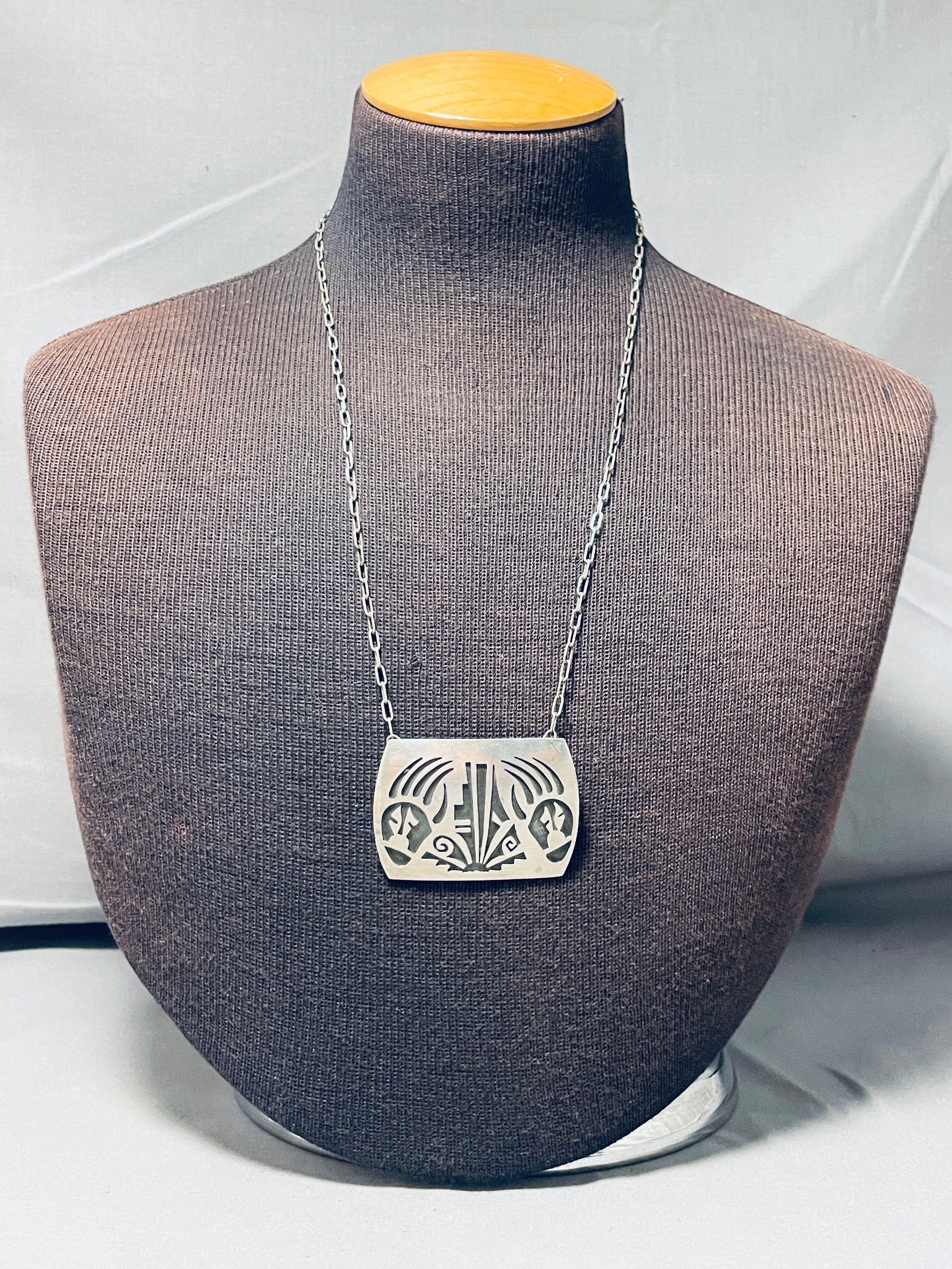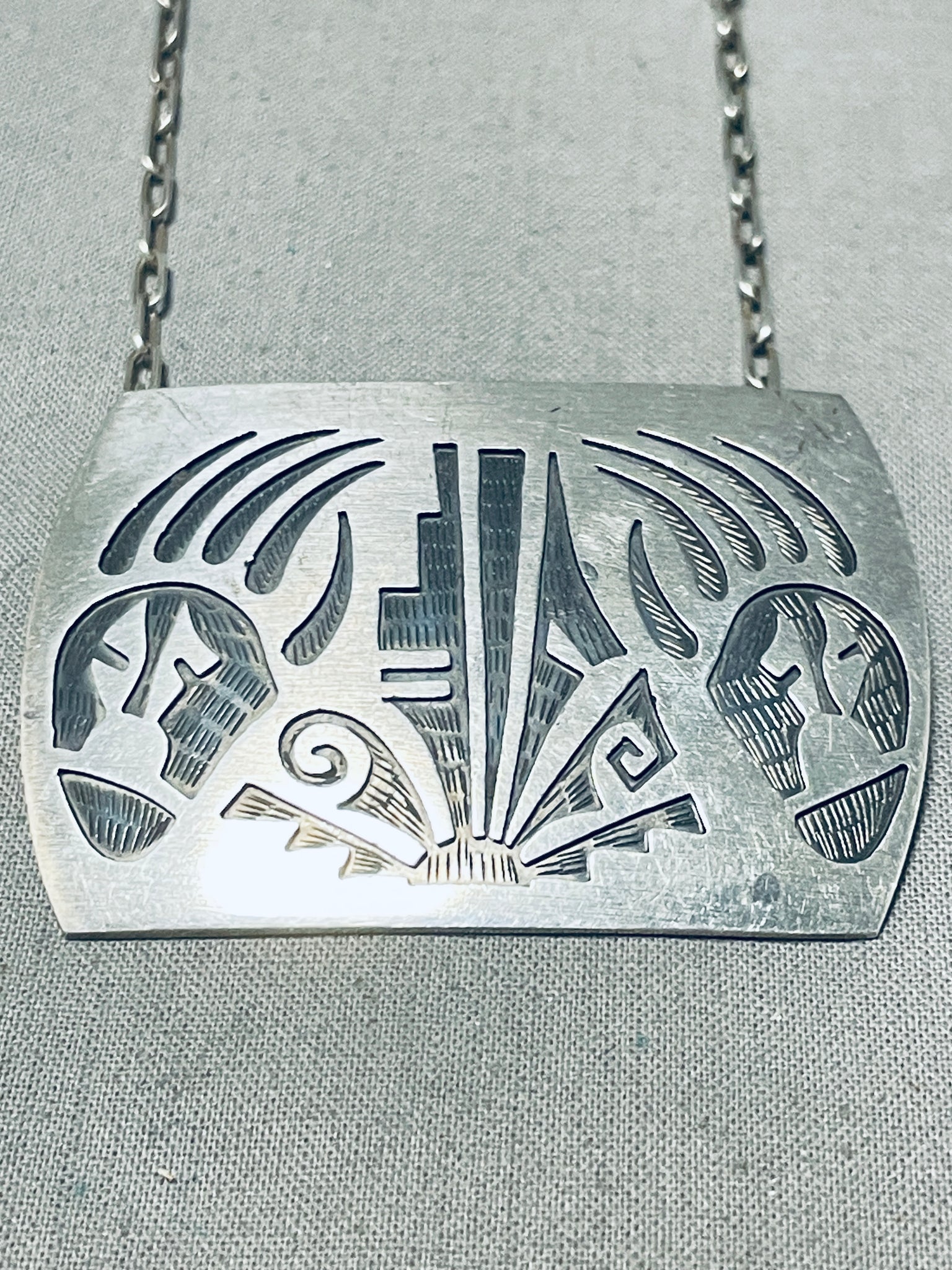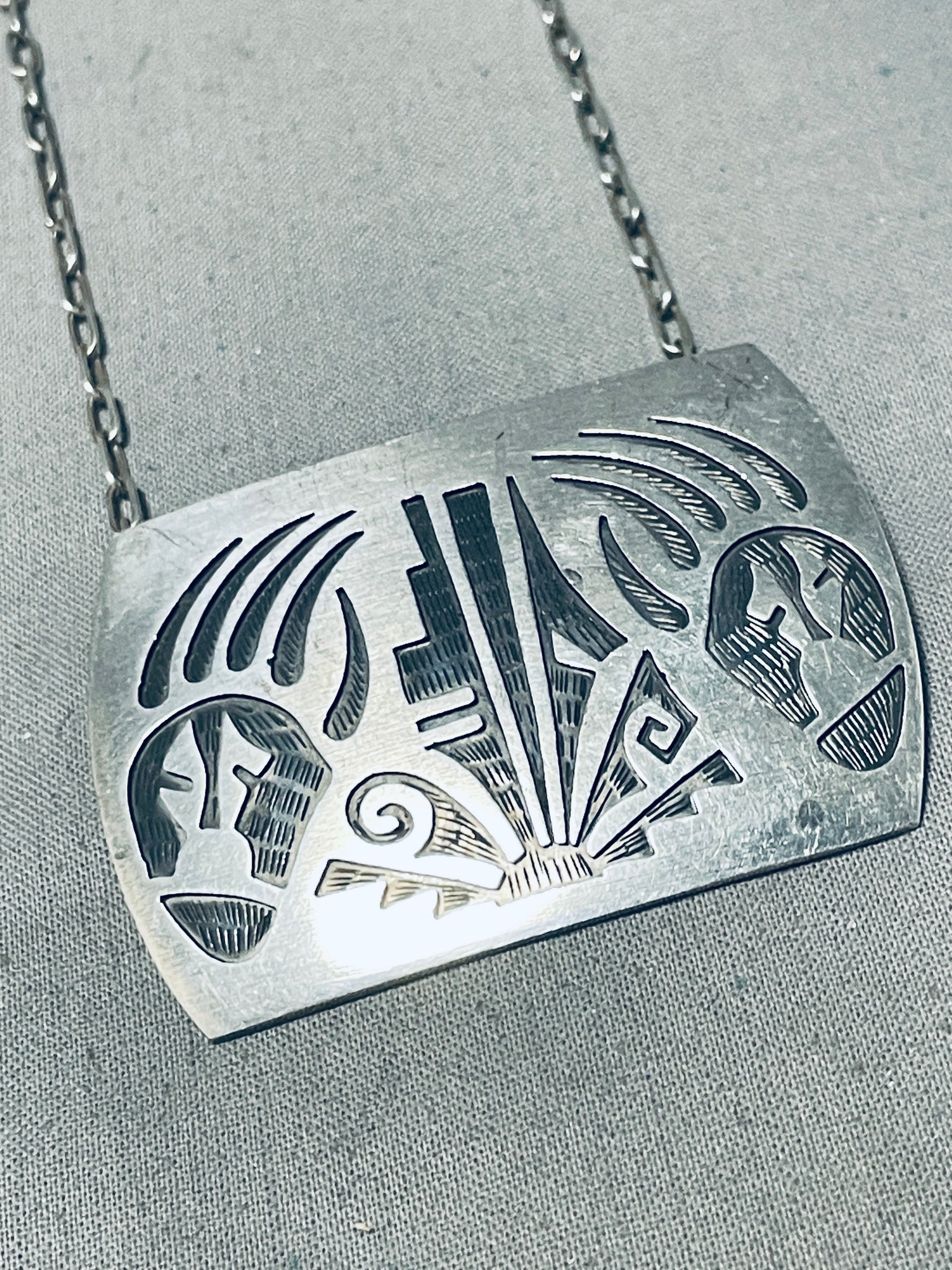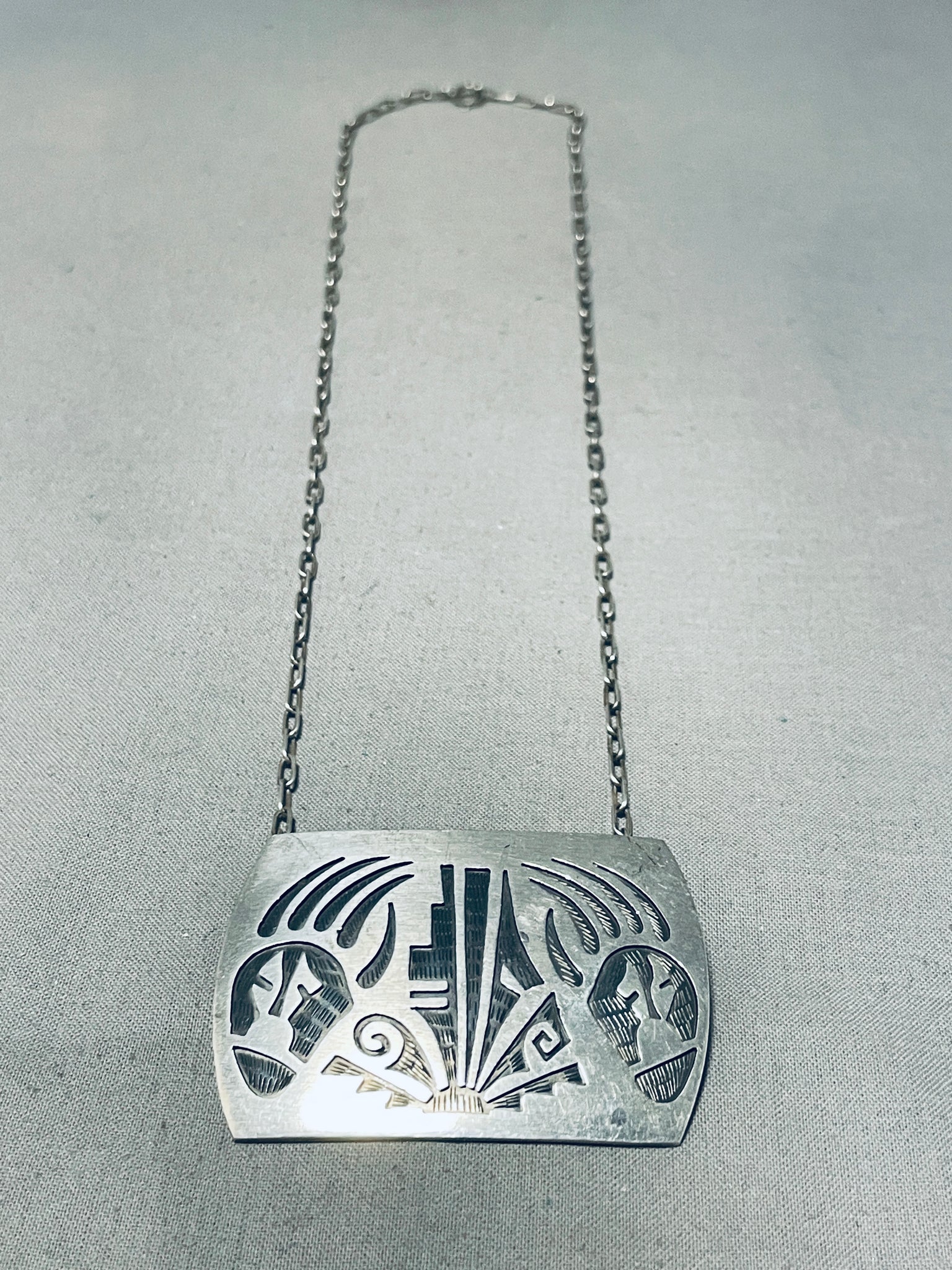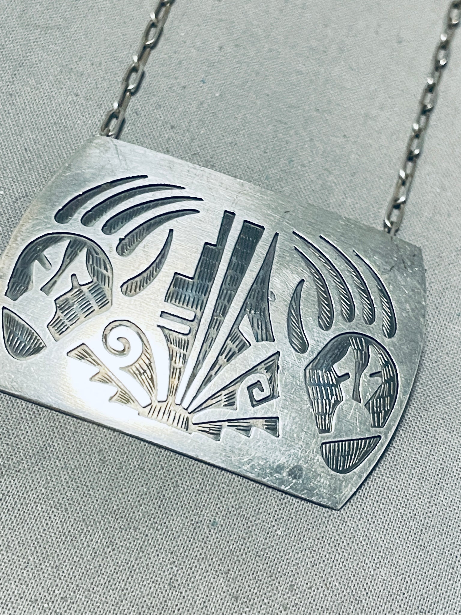 Detailed Vintage Native American Hopi Sterling Silver Bear Paw Necklace
