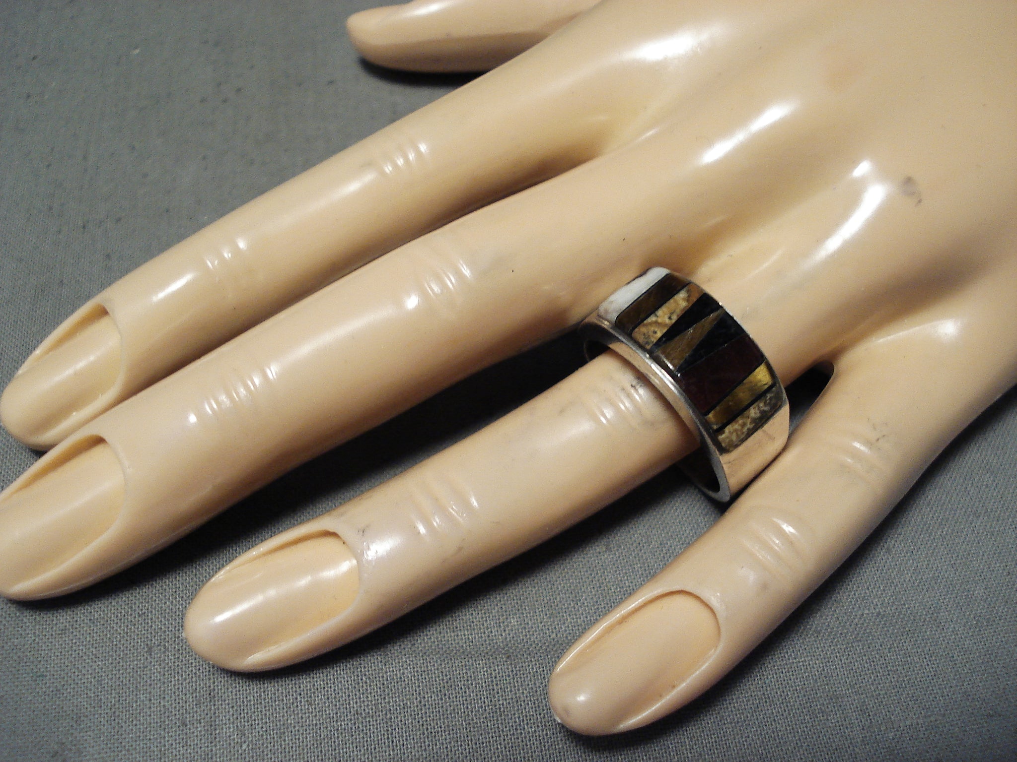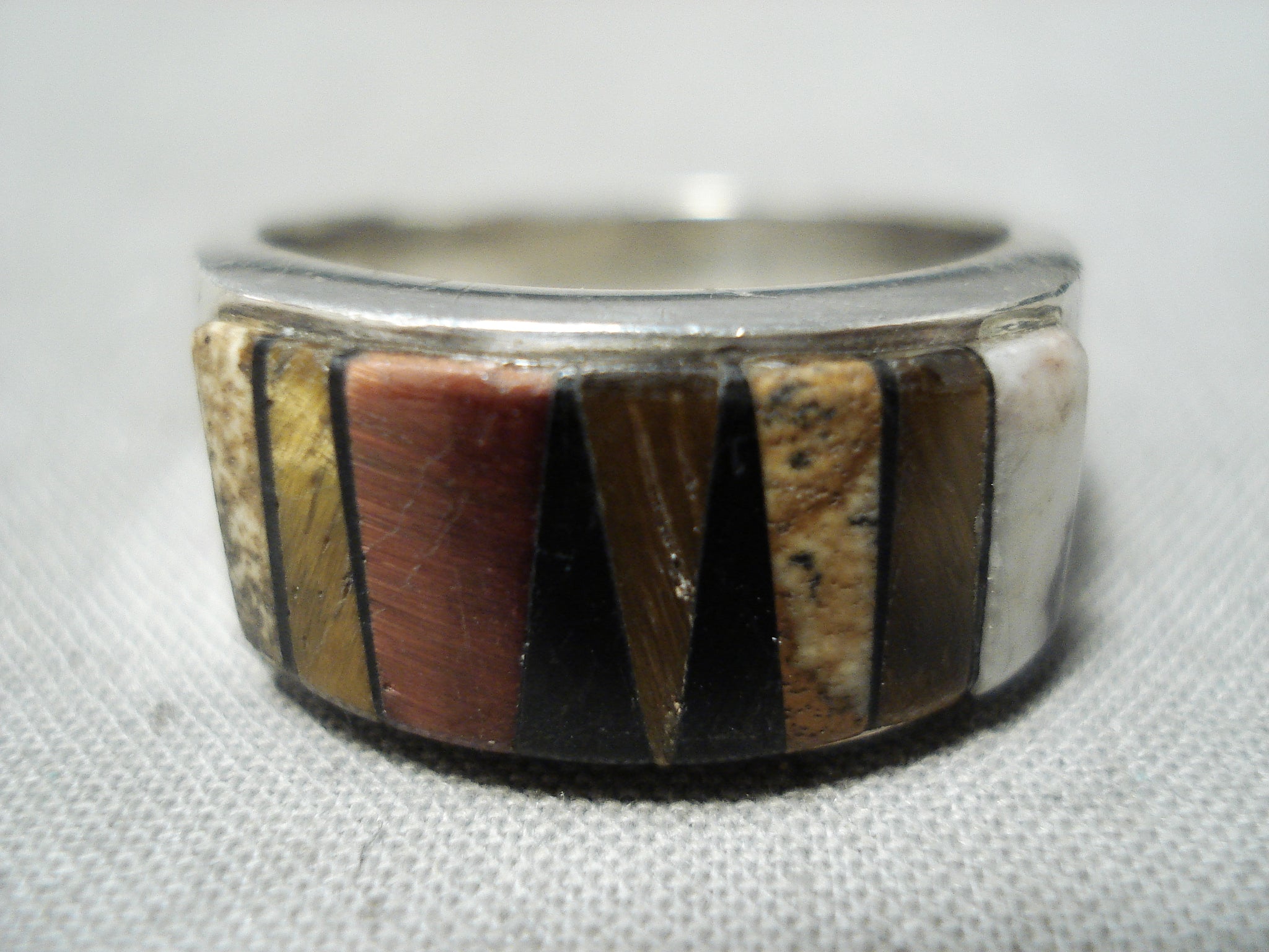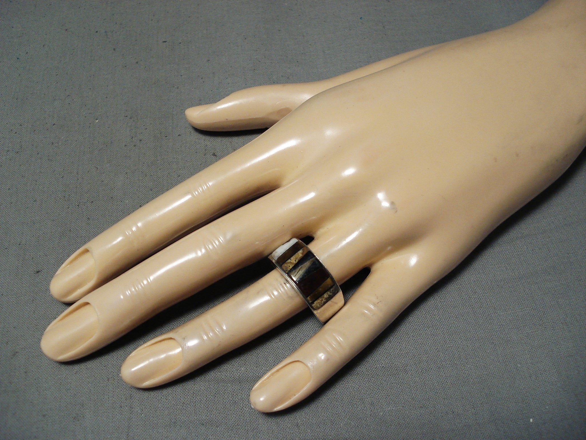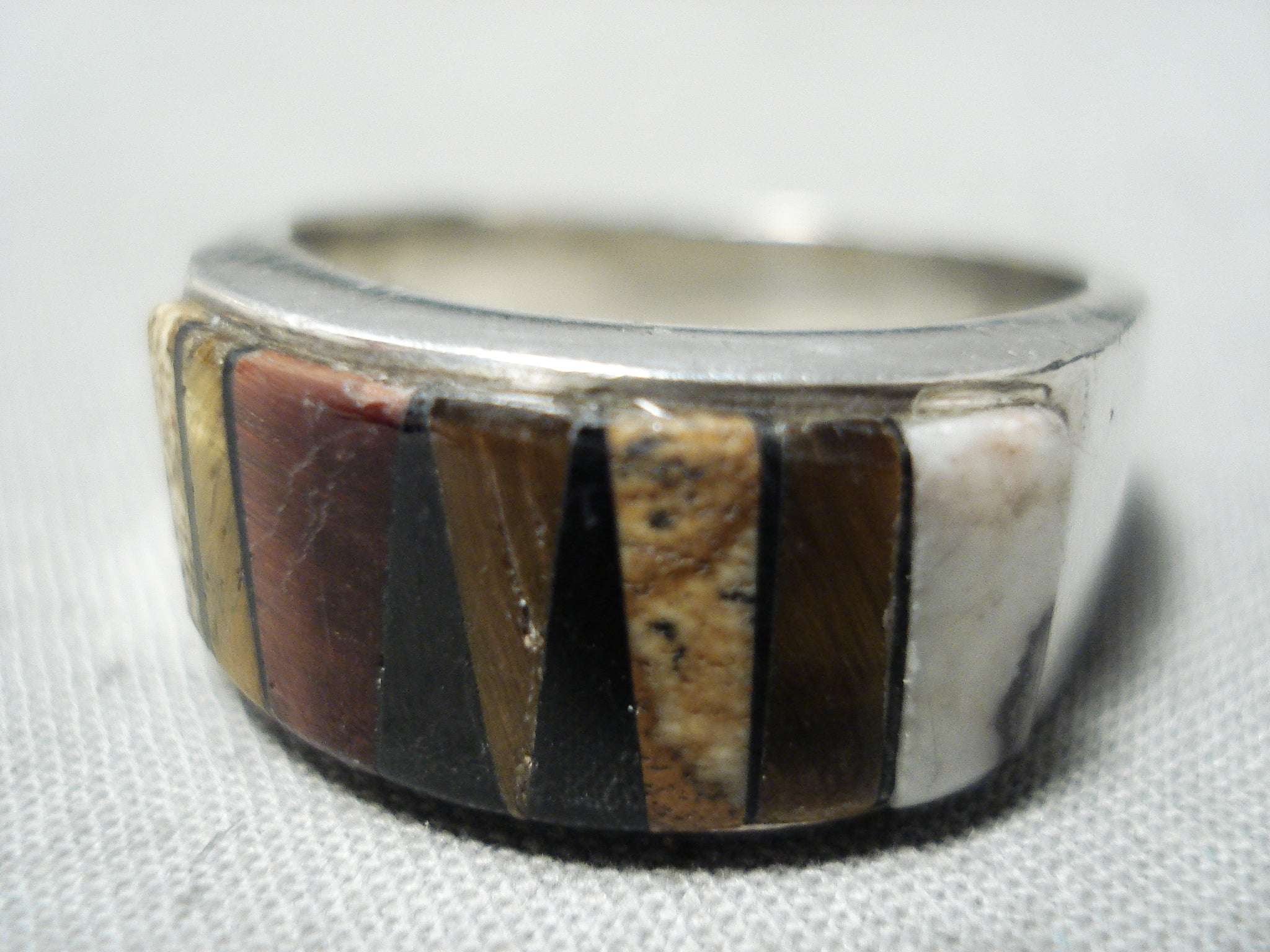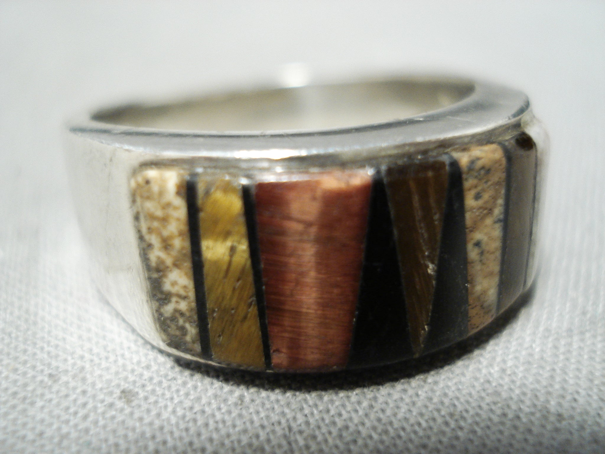 Detailed Vintage Native American Navajo Brown Stone Sterling Silver Ring