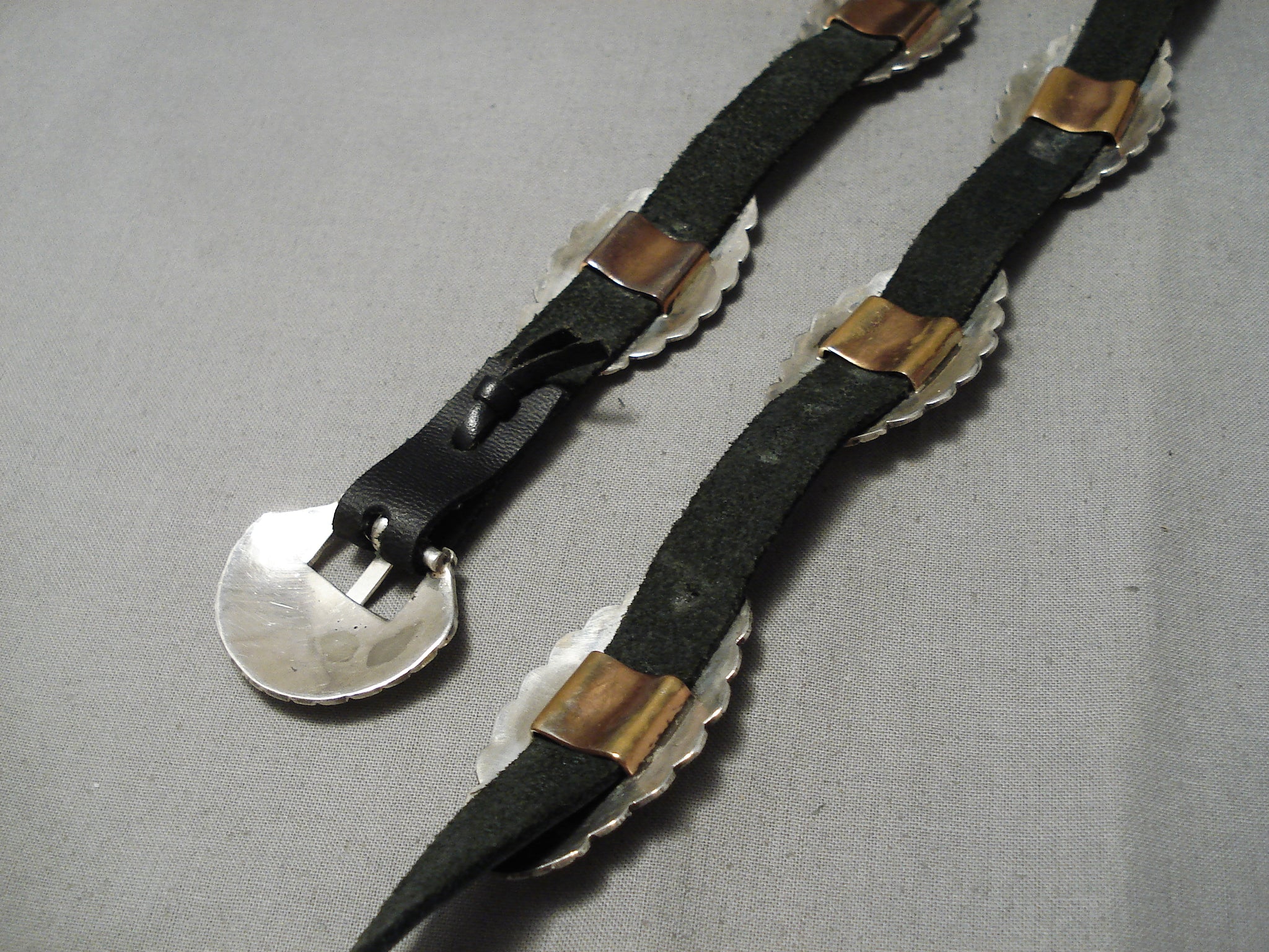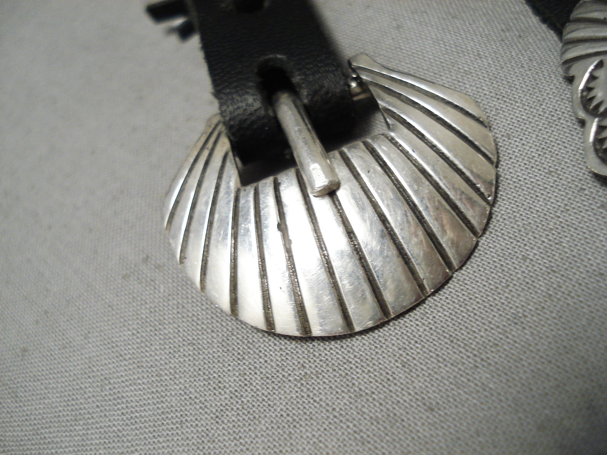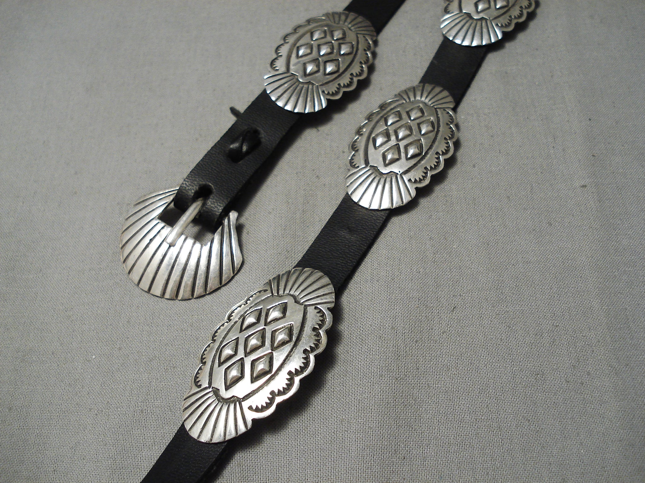 Detailed!! Vintage Native American Navajo Hand Tooled Sterling Silver Concho Belt