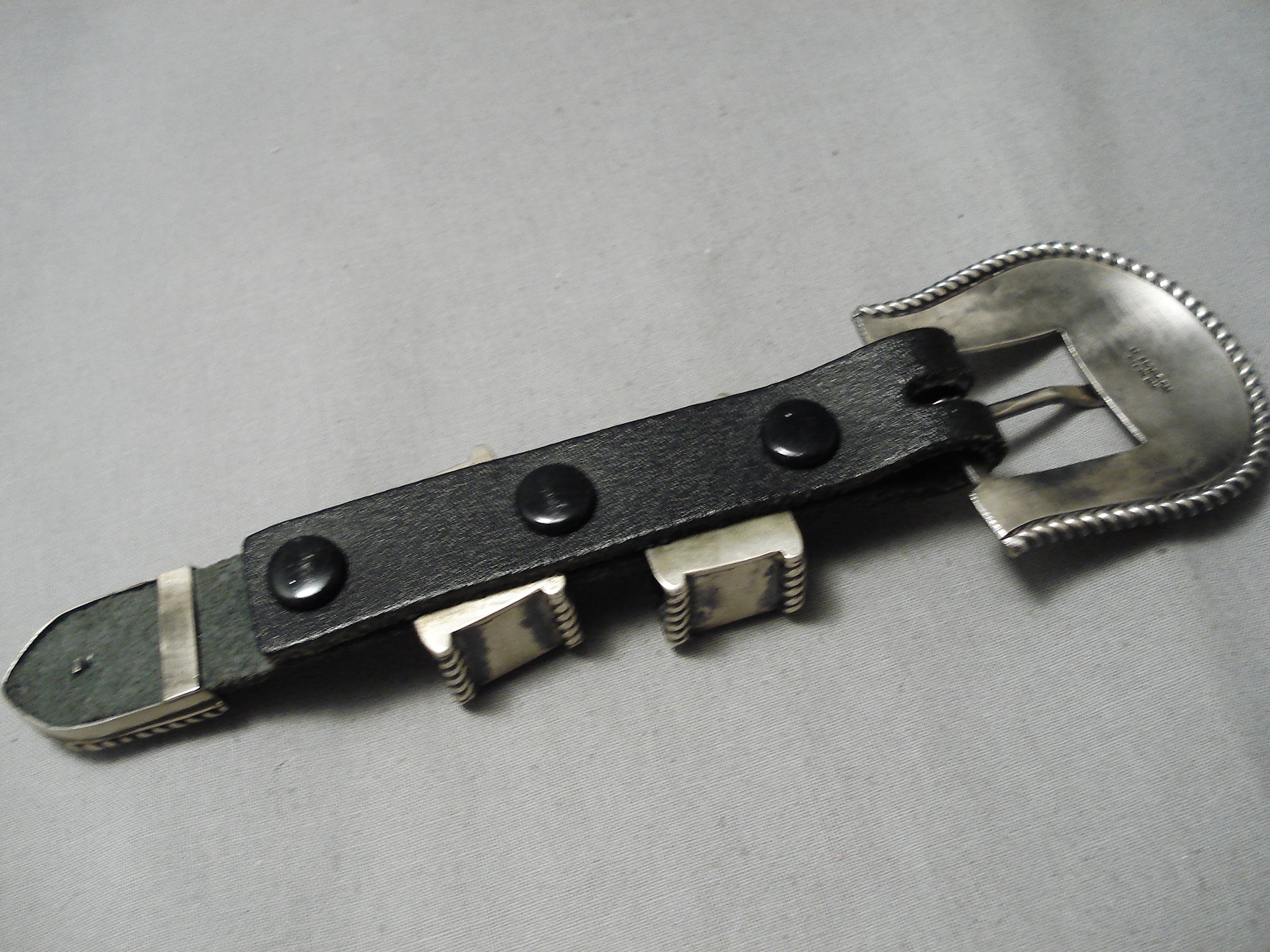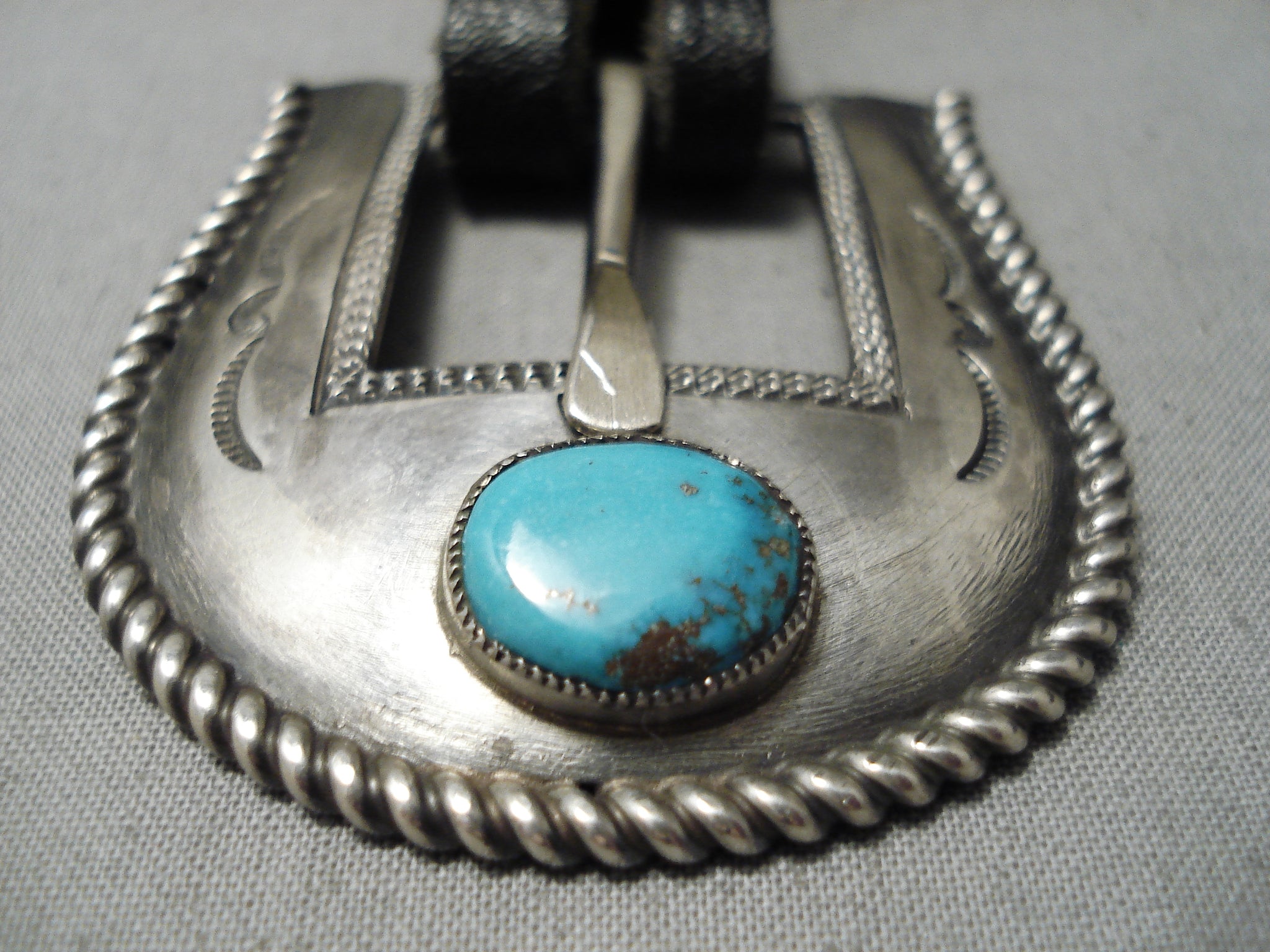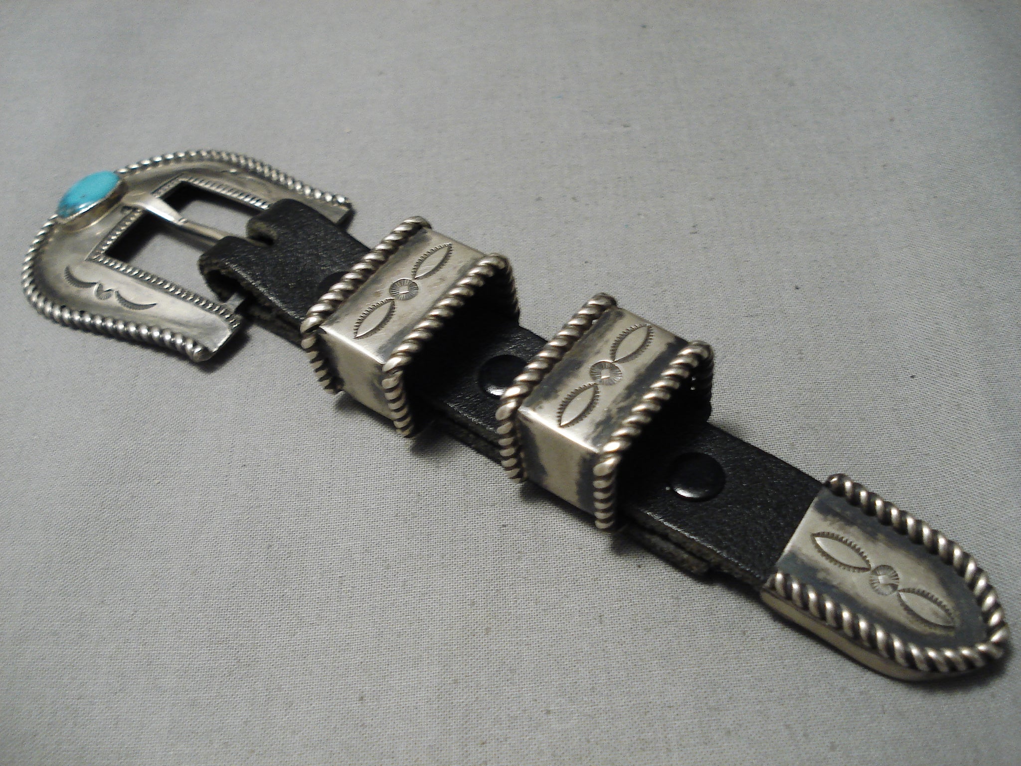 Detailed Vintage Native American Navajo Red Mountain Turquoise Sterling Silver Buckle Set