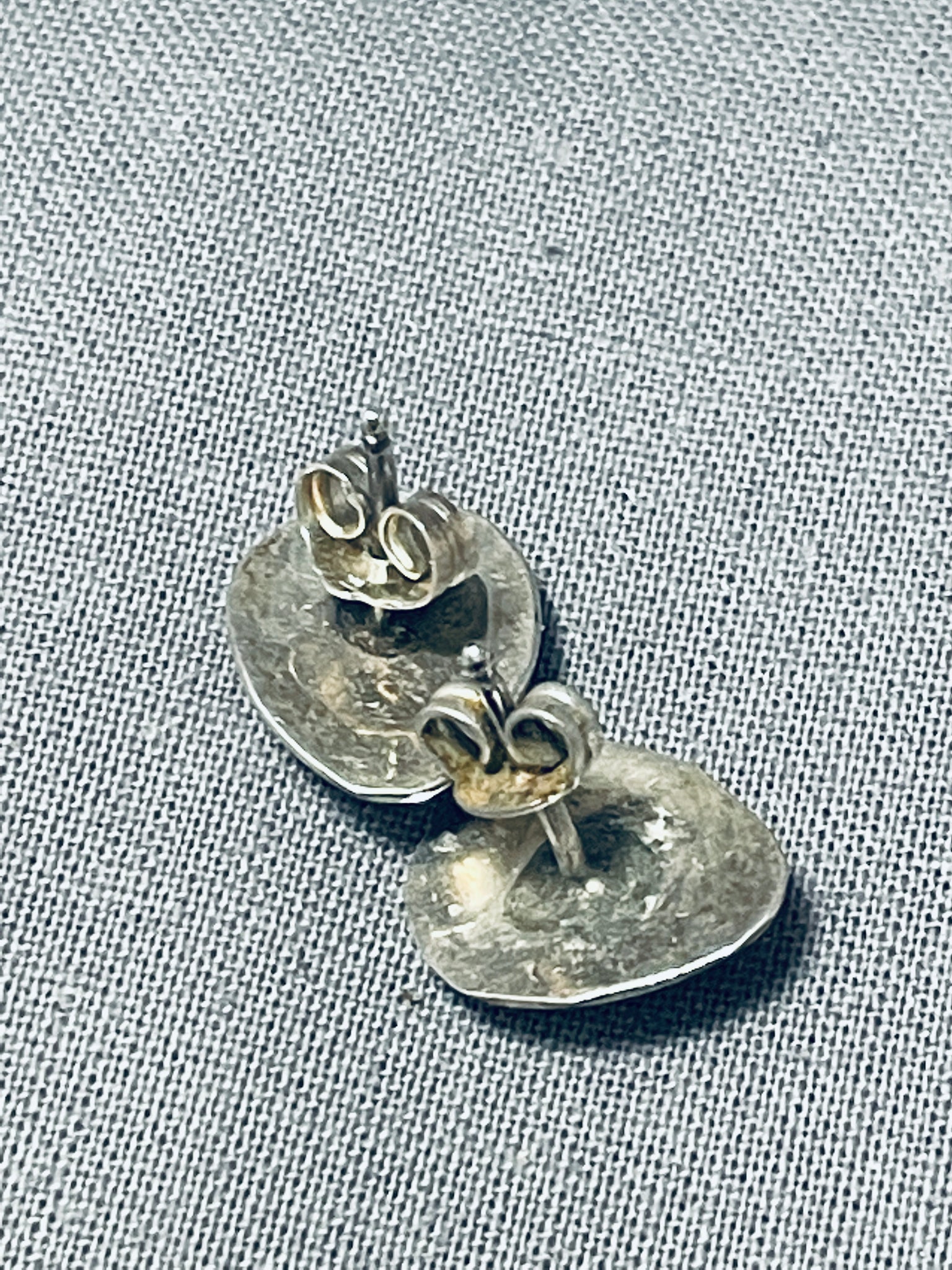 Detailed Vintage Native American Navajo Turquoise Sterling Silver Earrings
