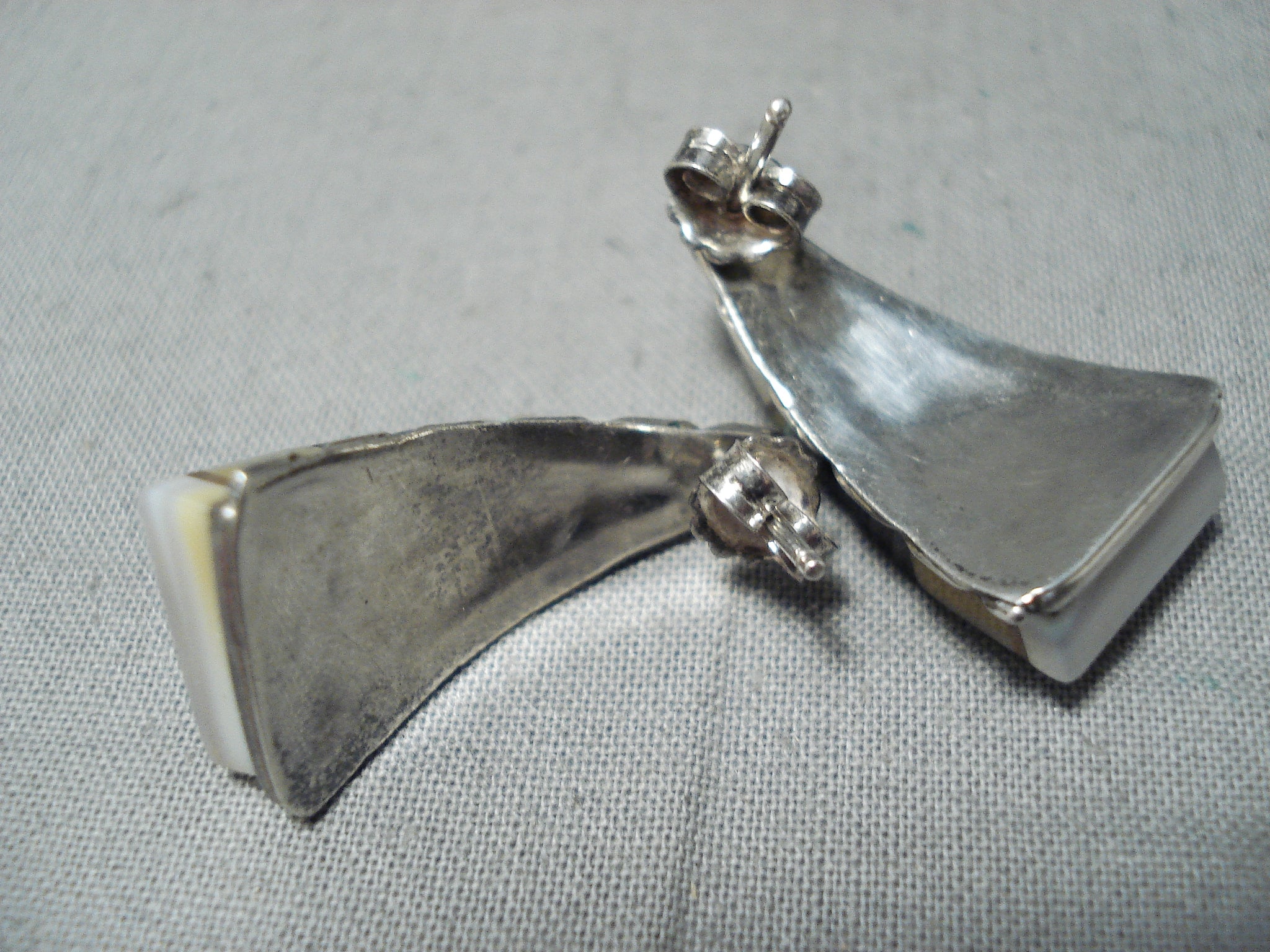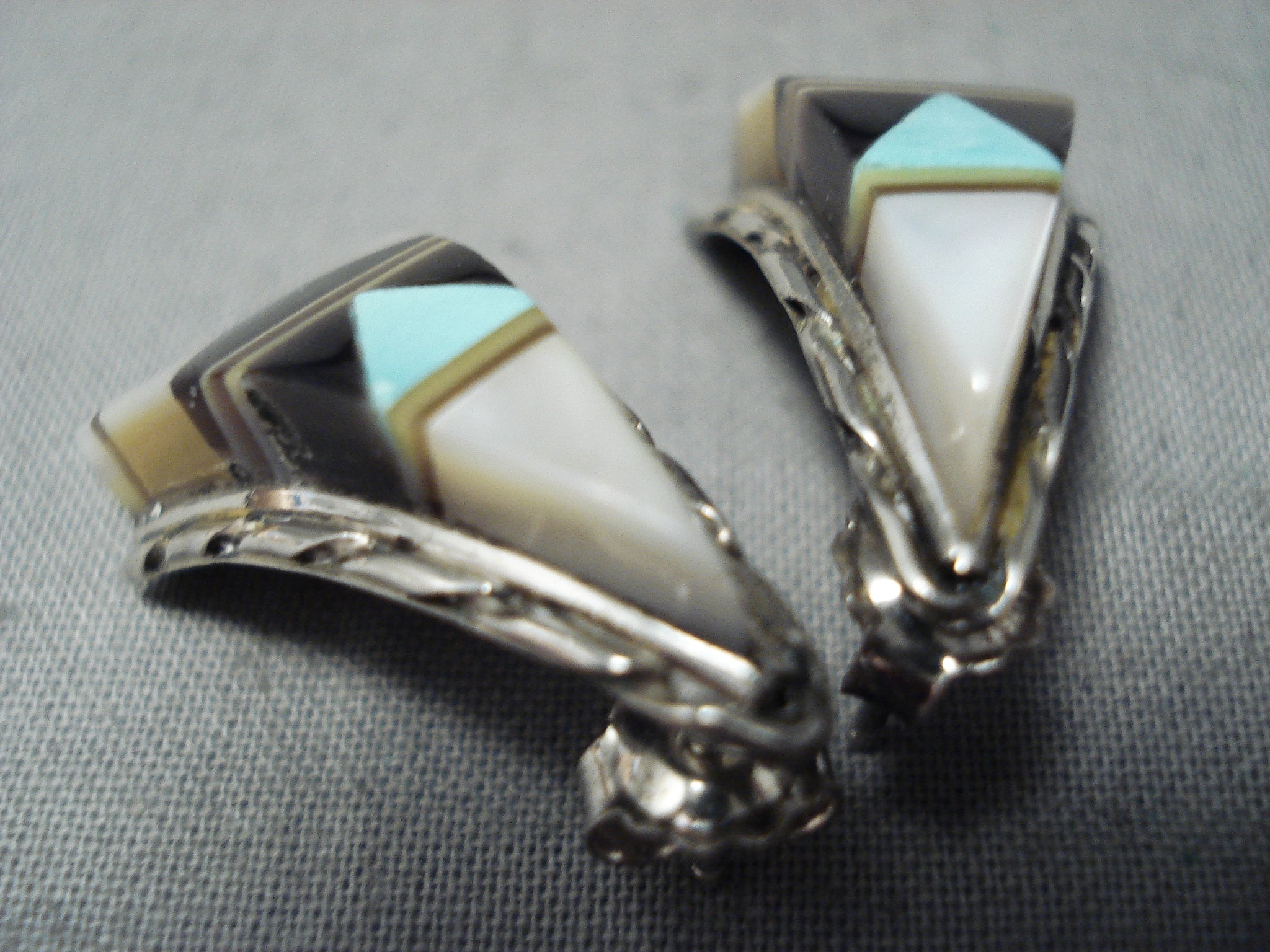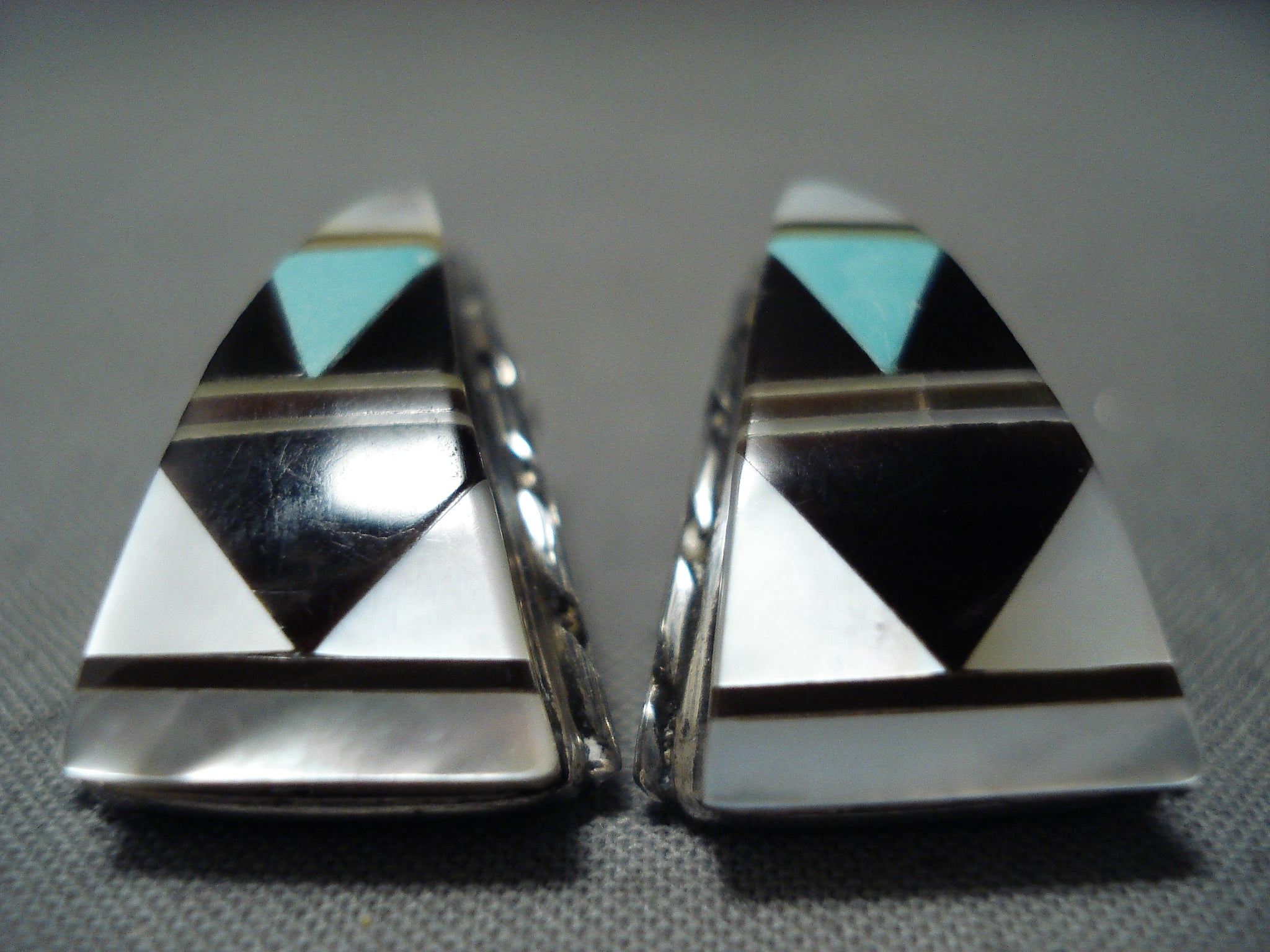 Detailed Vintage Native American Zuni Turquoise Sterling Silver Earrings