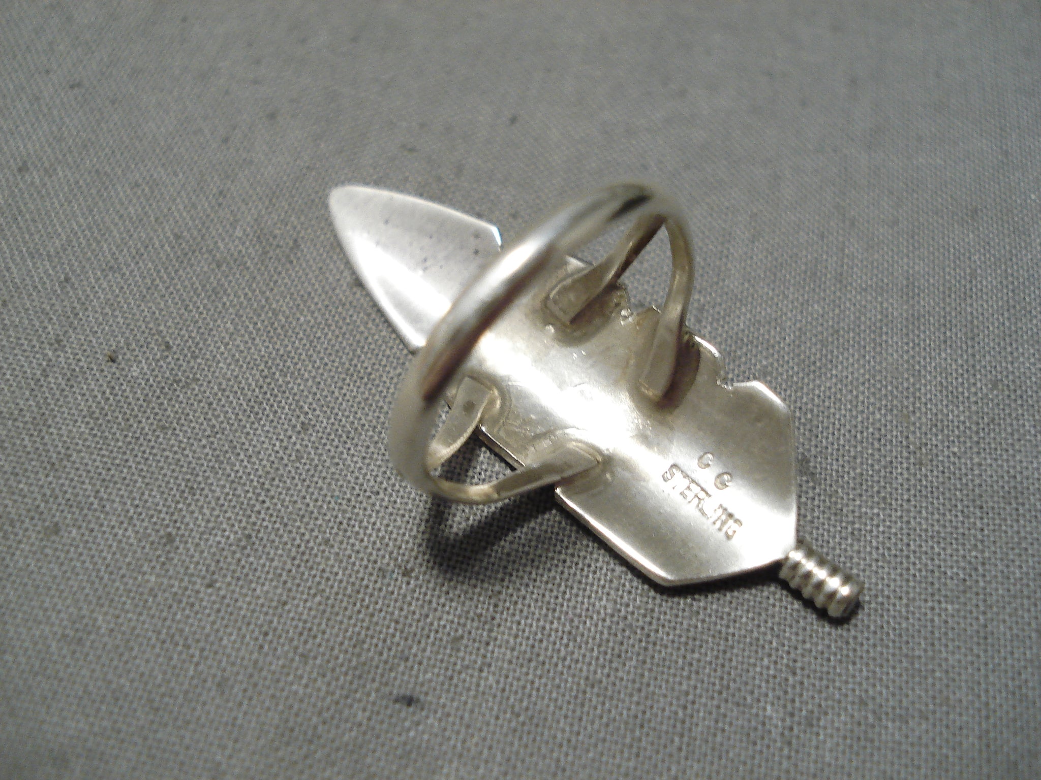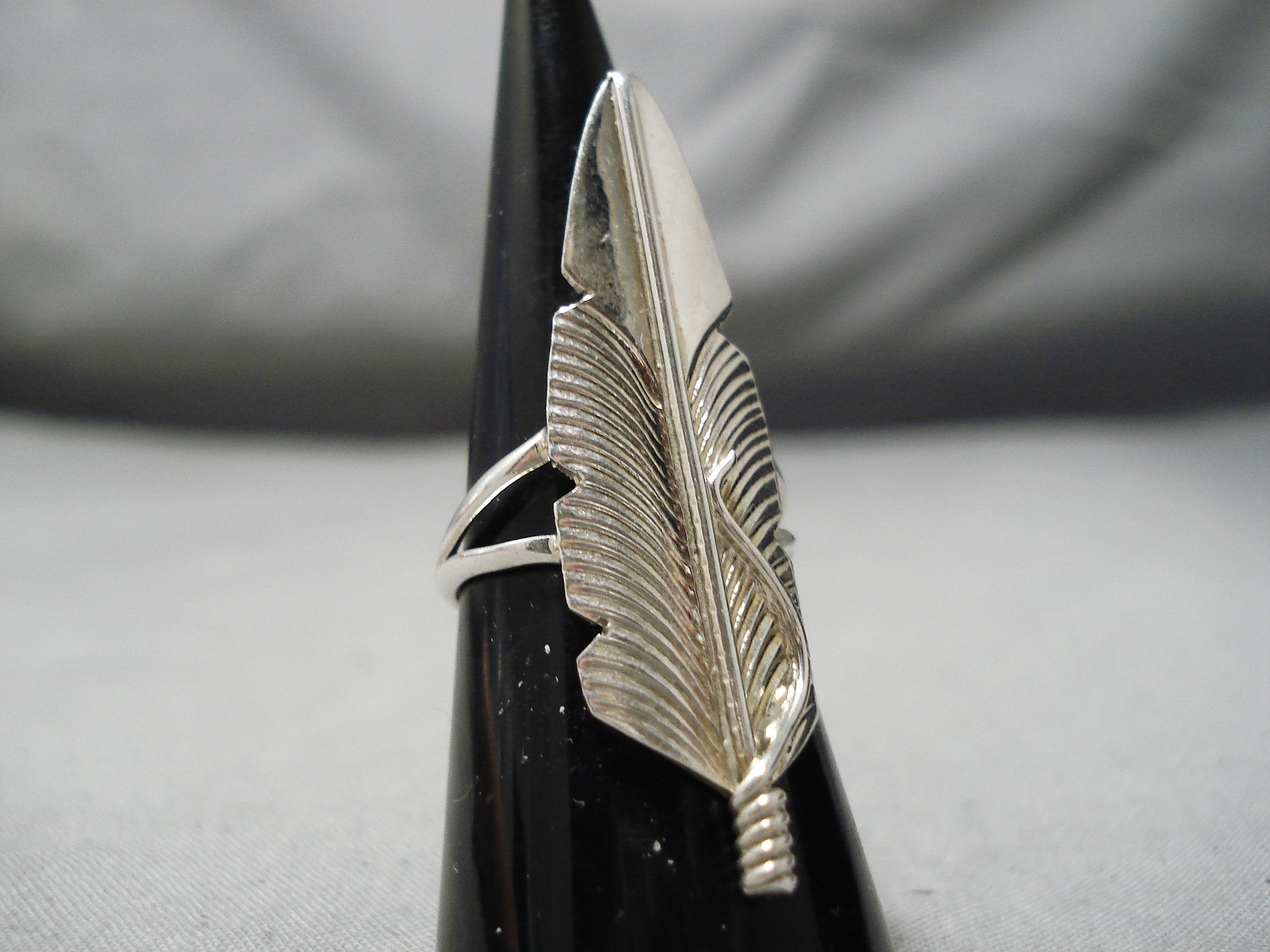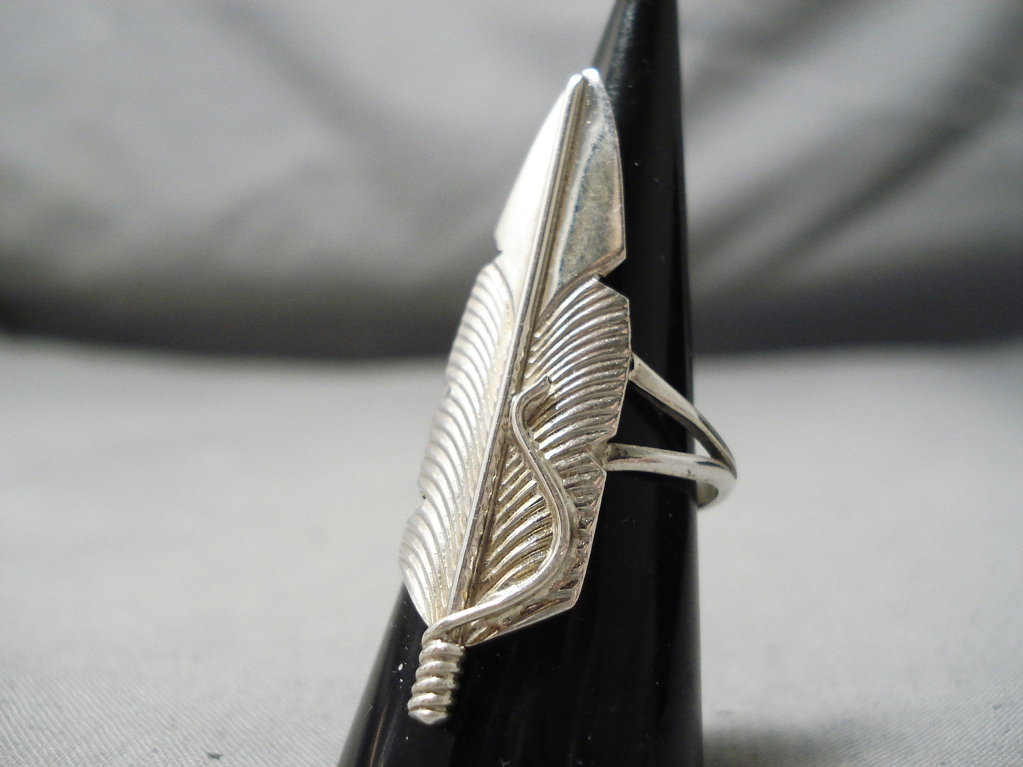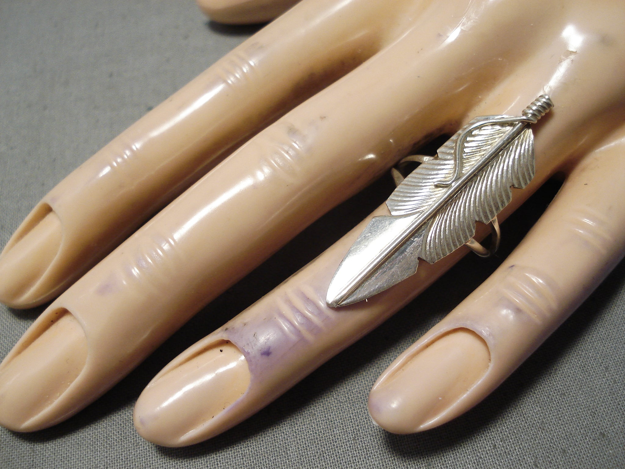 Detailed Vintage Navajo Sterling Silver Feather Ring Native American
