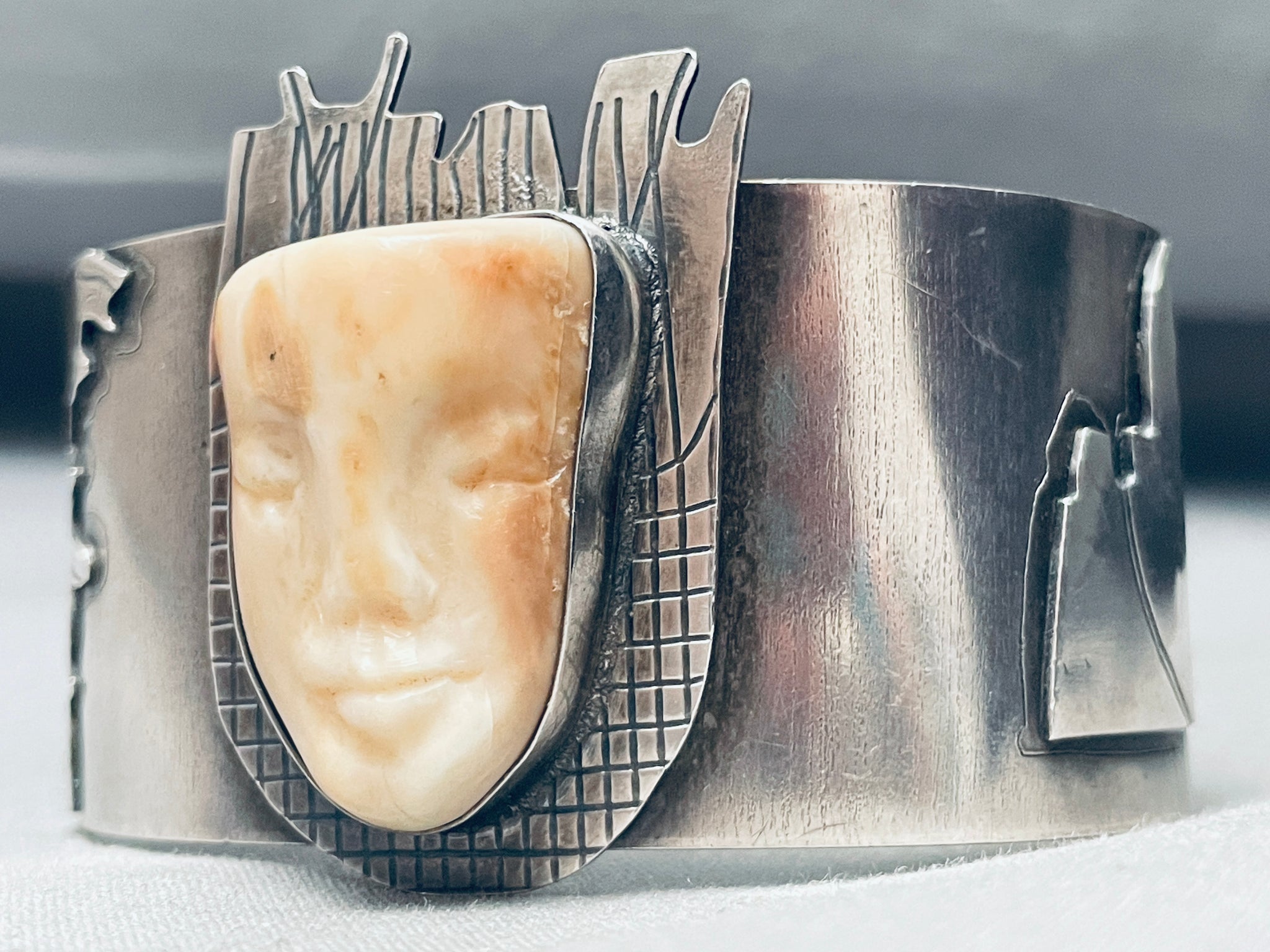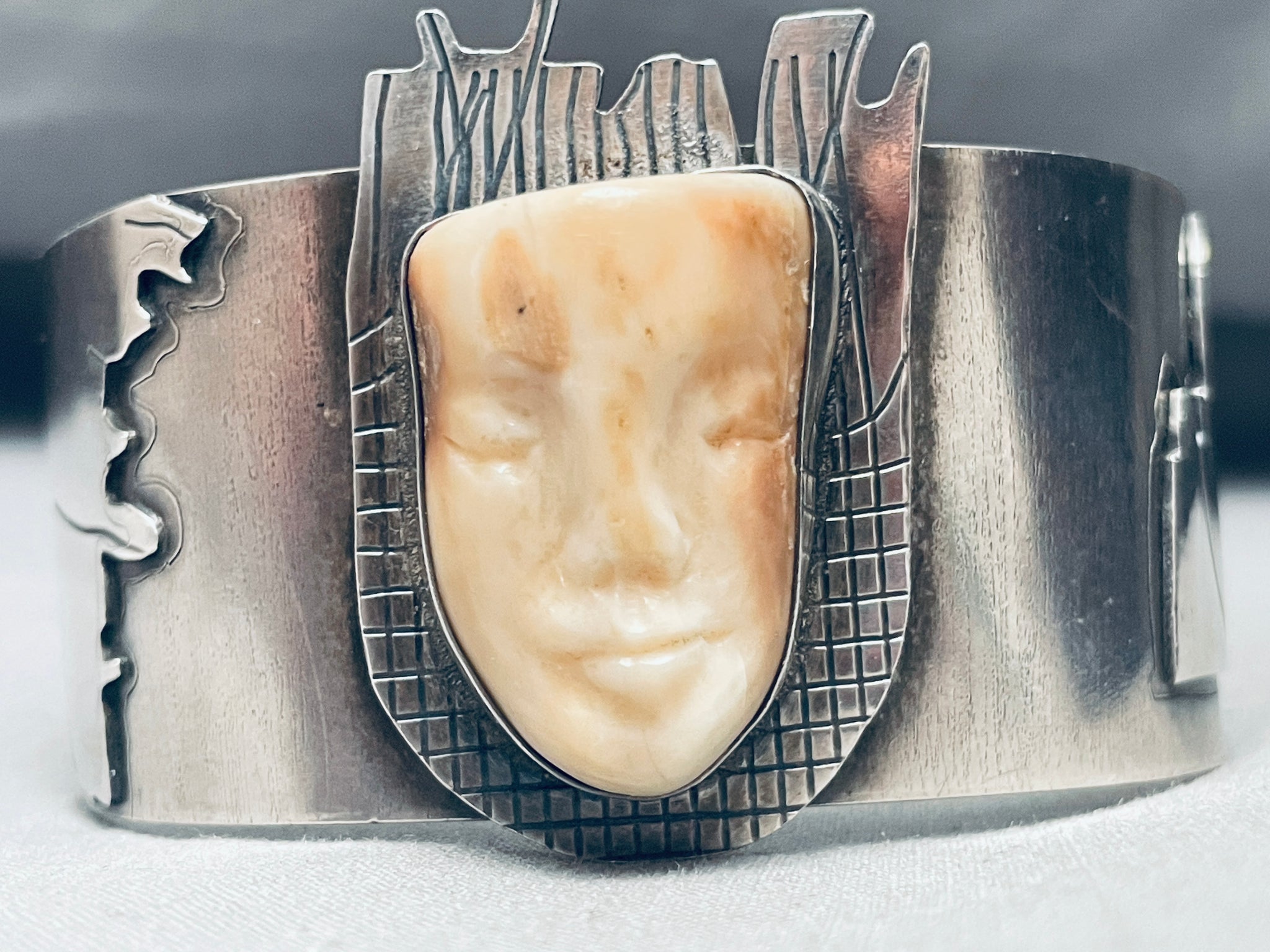 Detailed Vintage Southwest Face Sterling Silver Bracelet Cuff