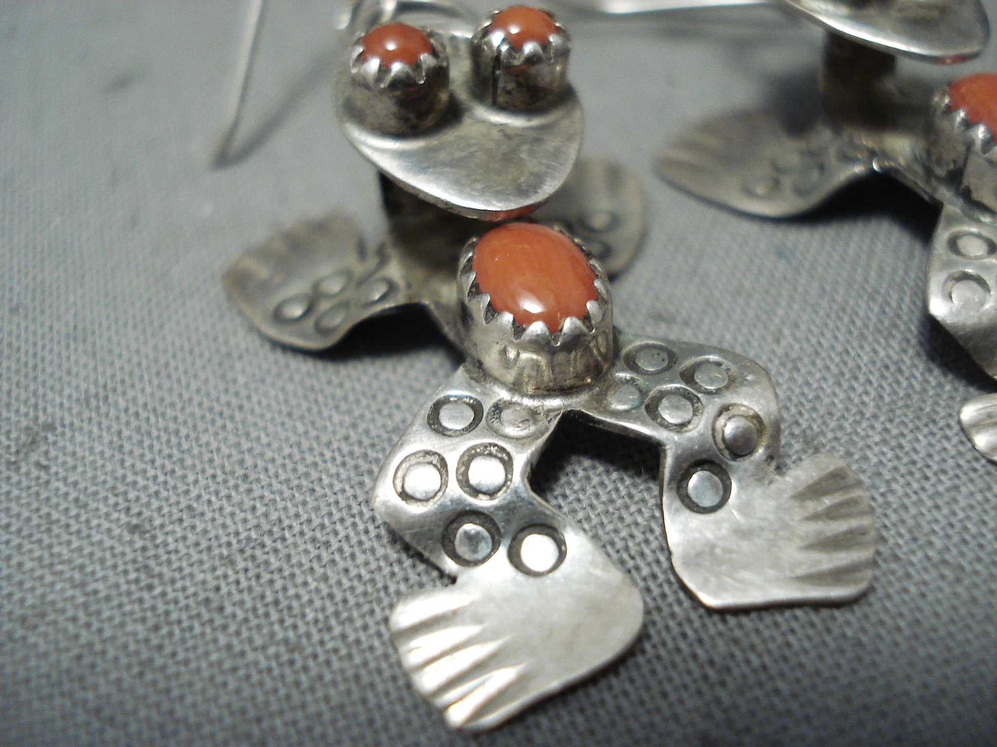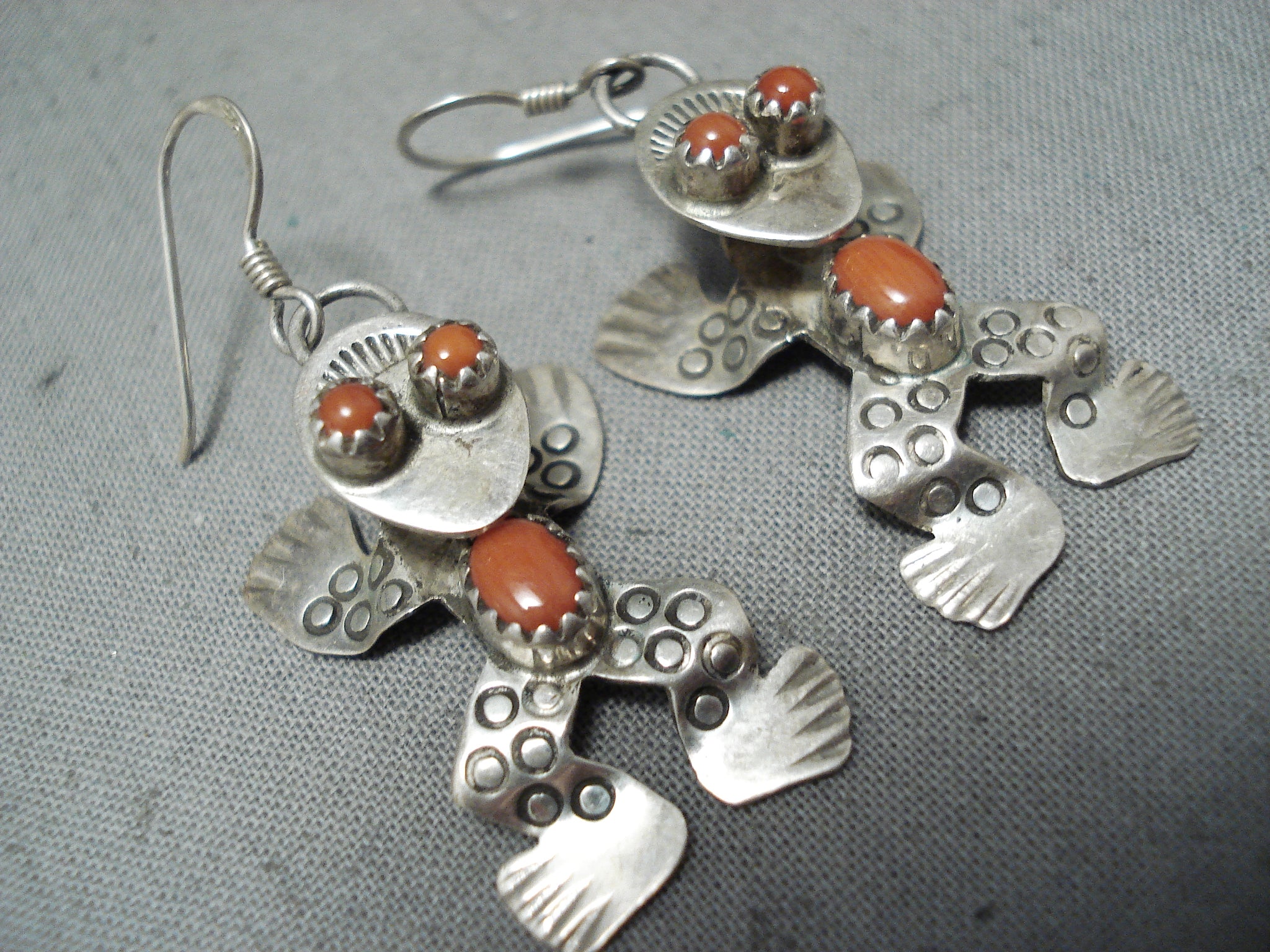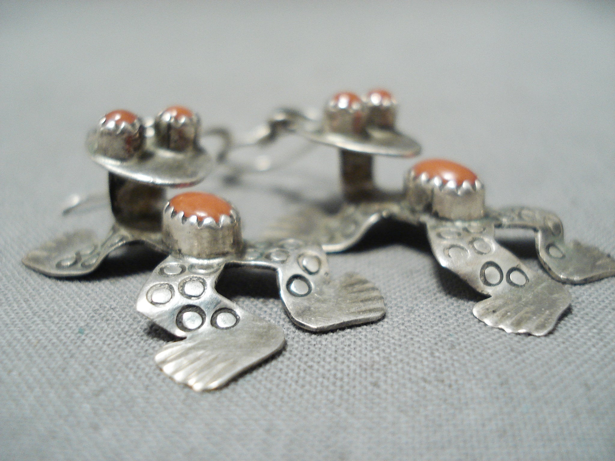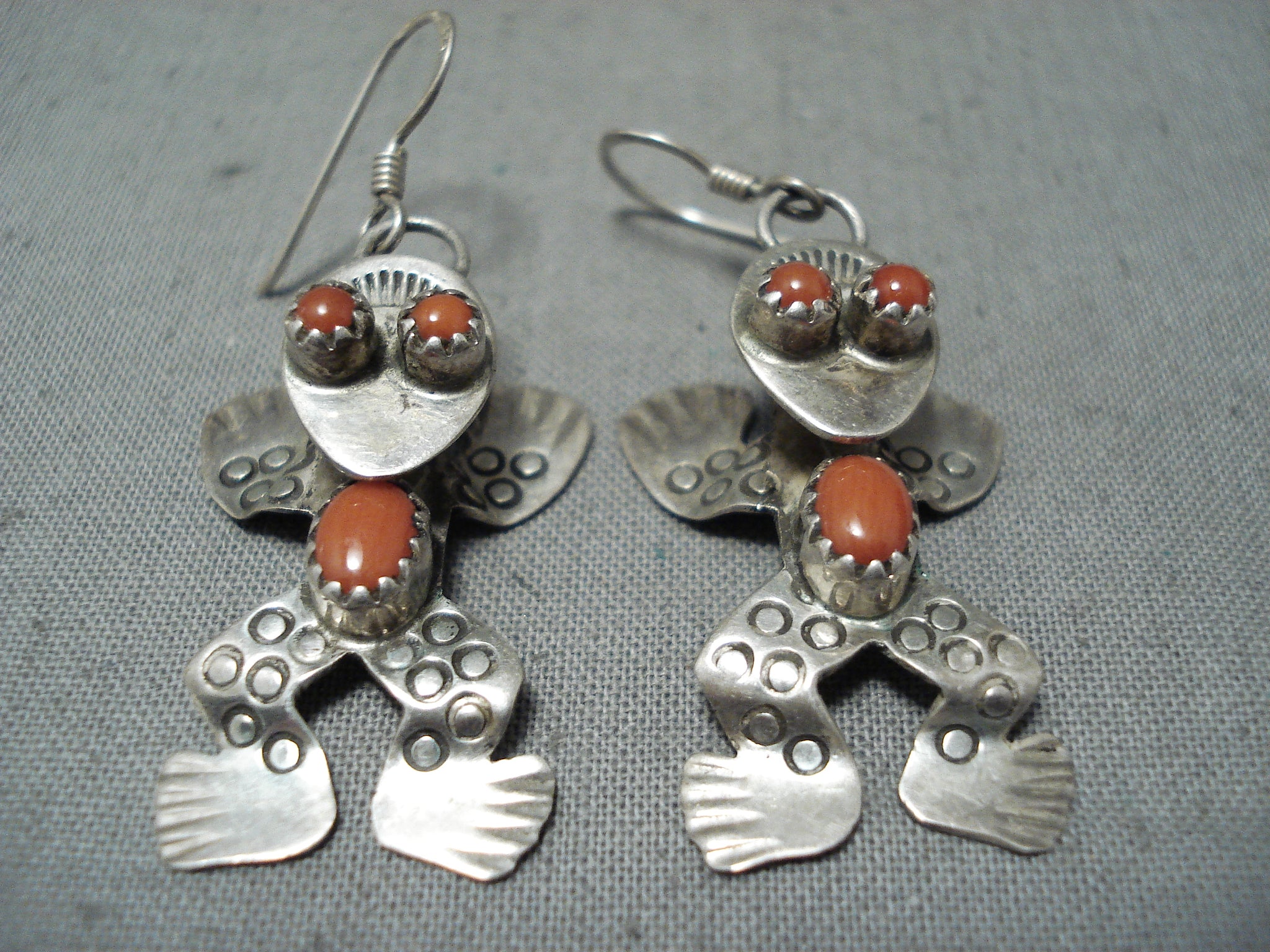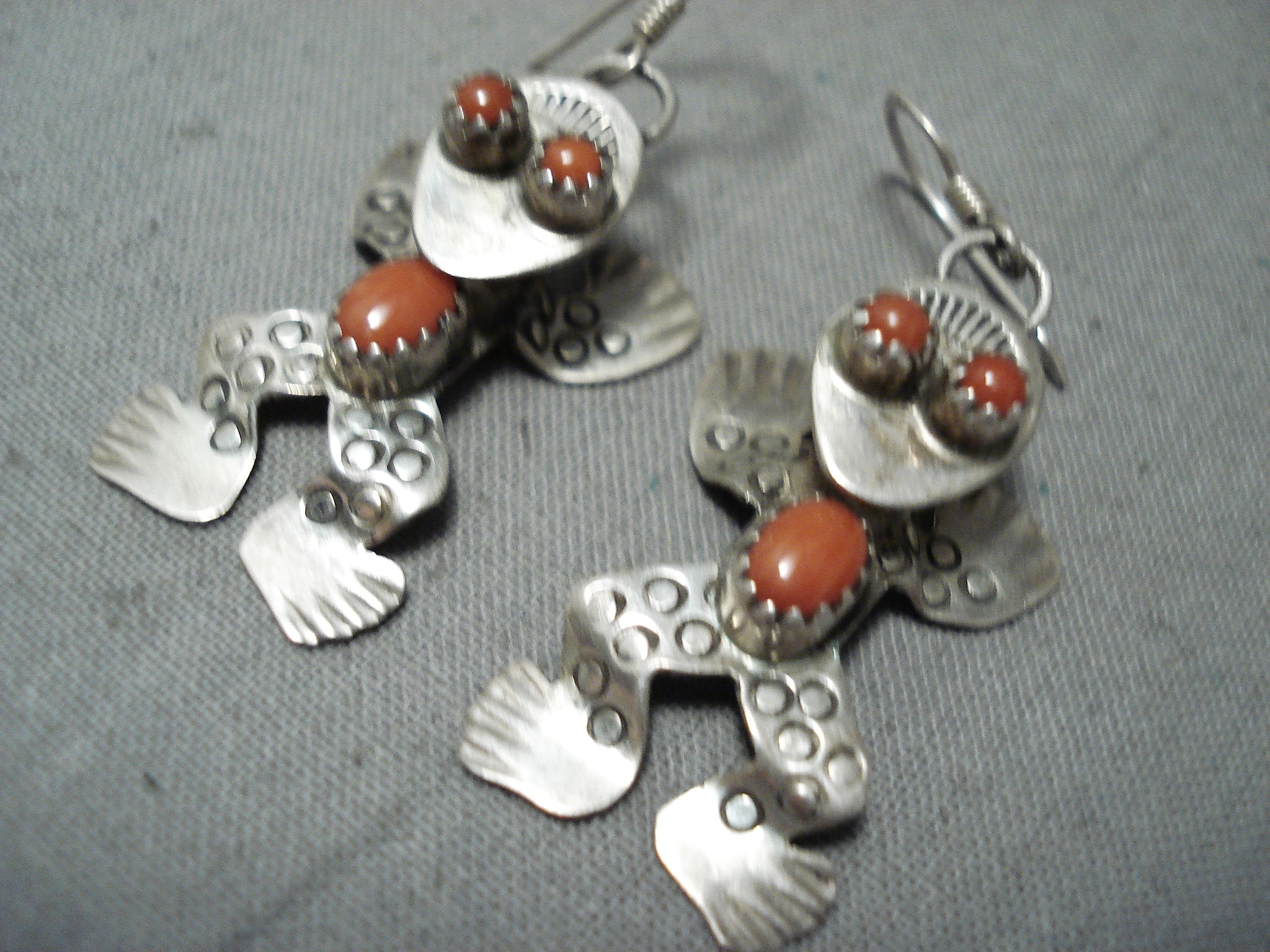 Dimensional Native American Navajo Coral Sterling Silver Frog Earrings