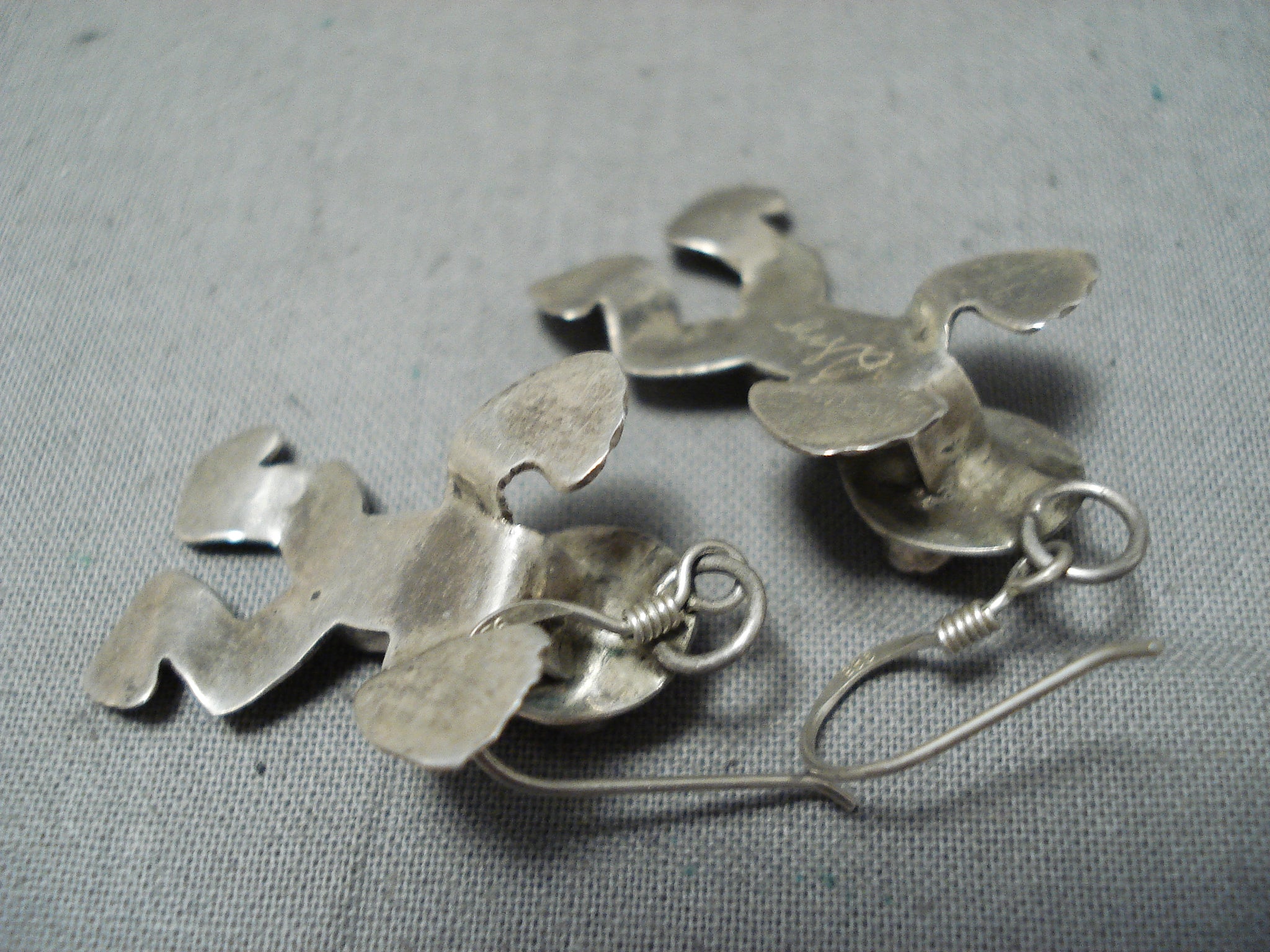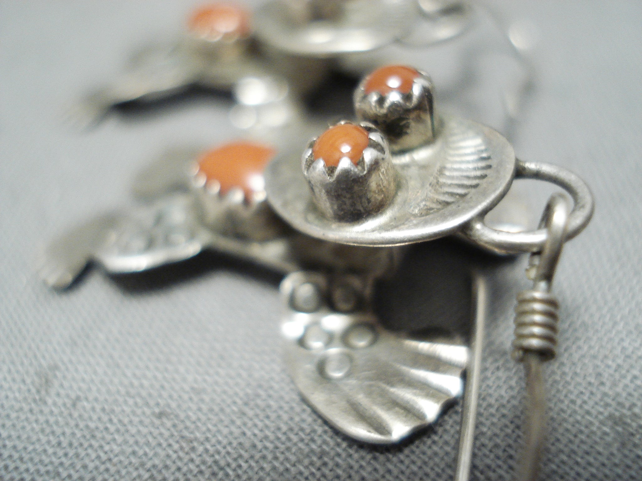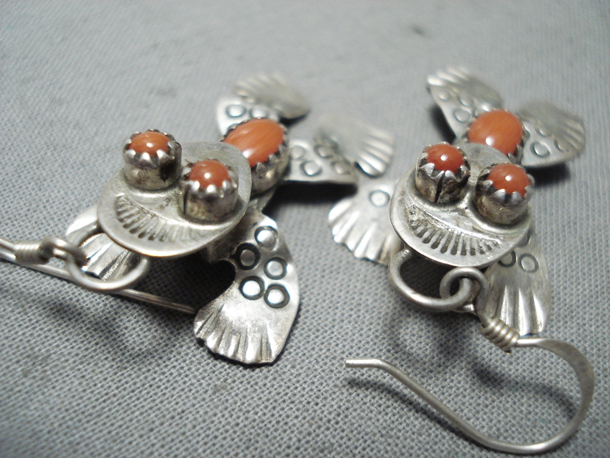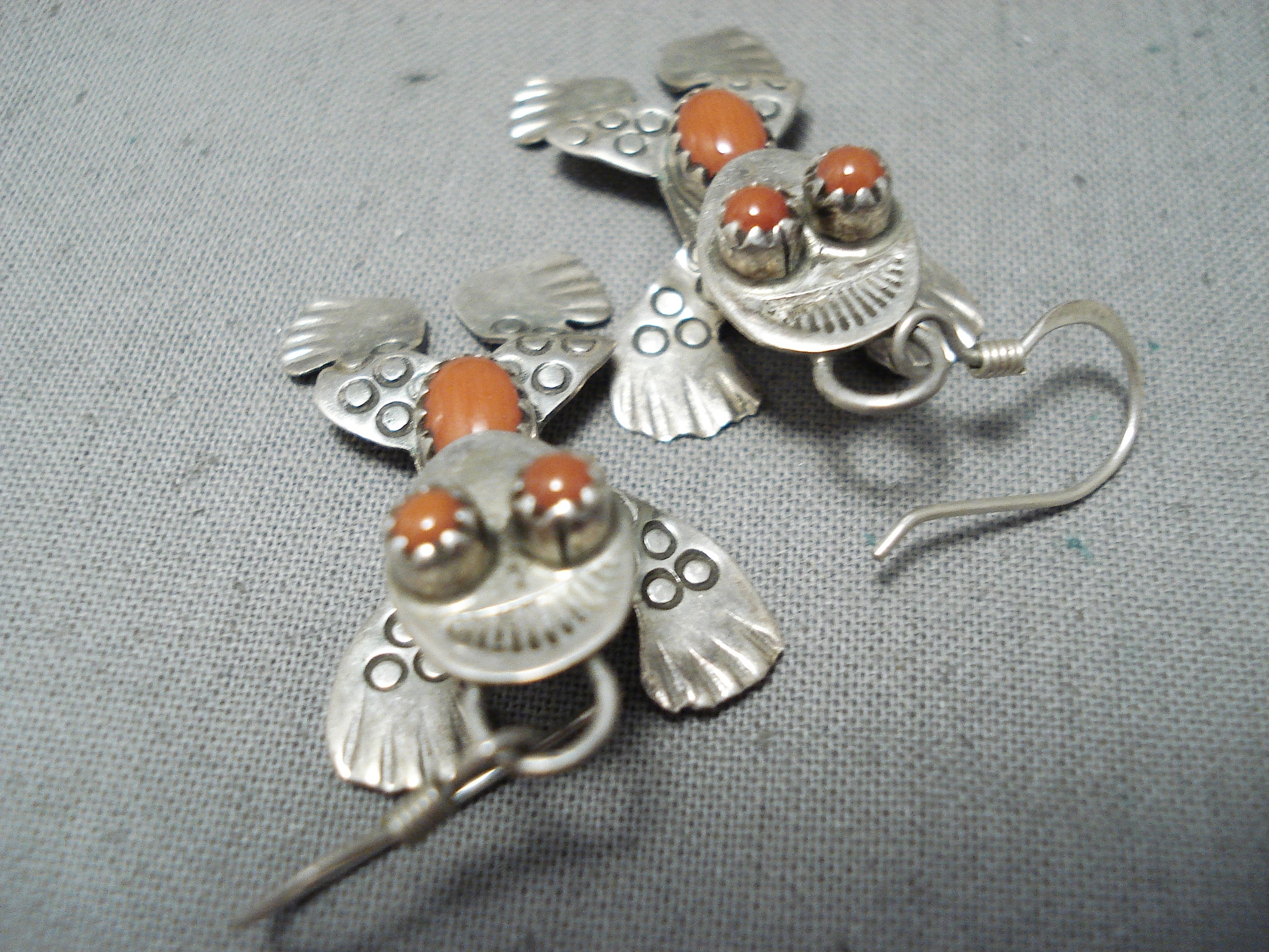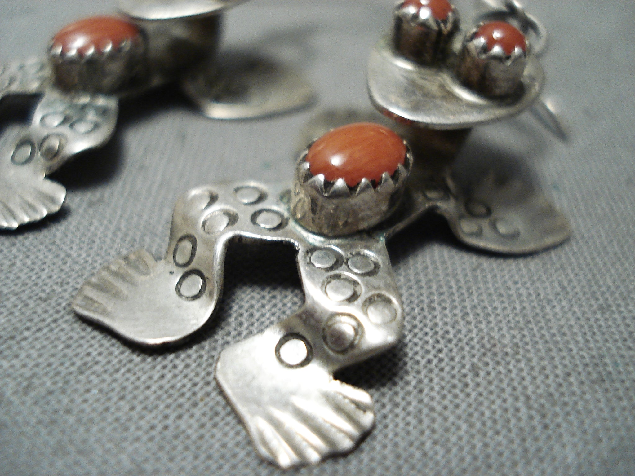 Dimensional Native American Navajo Coral Sterling Silver Frog Earrings