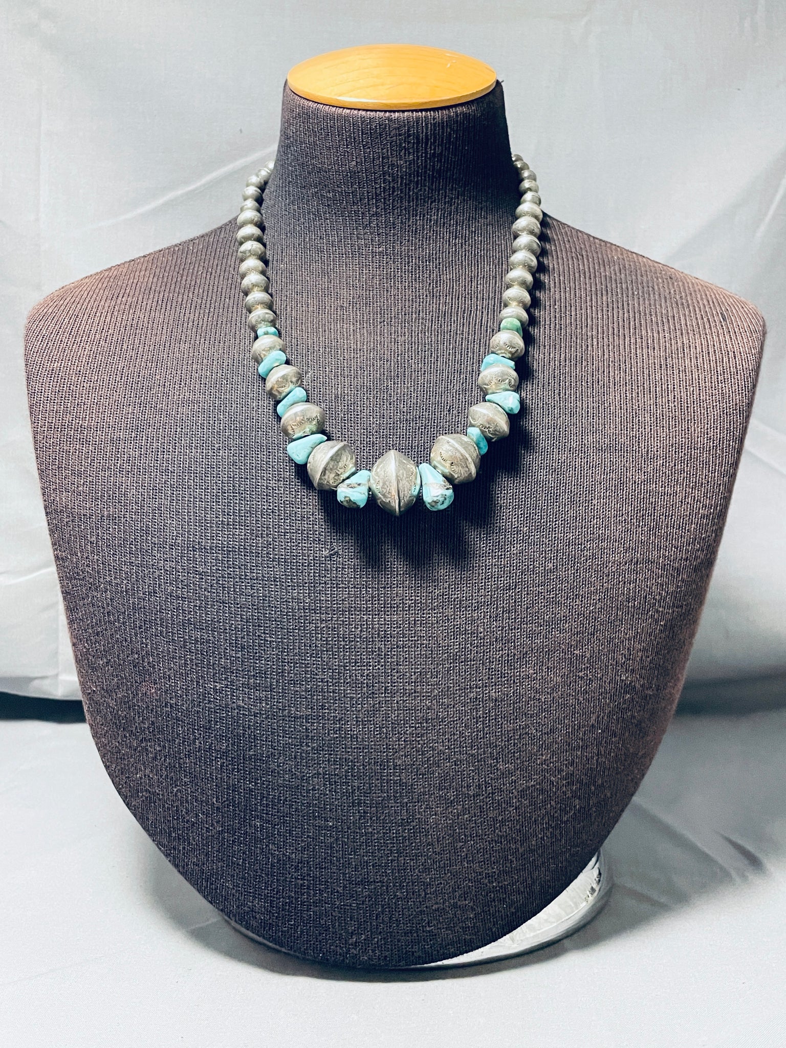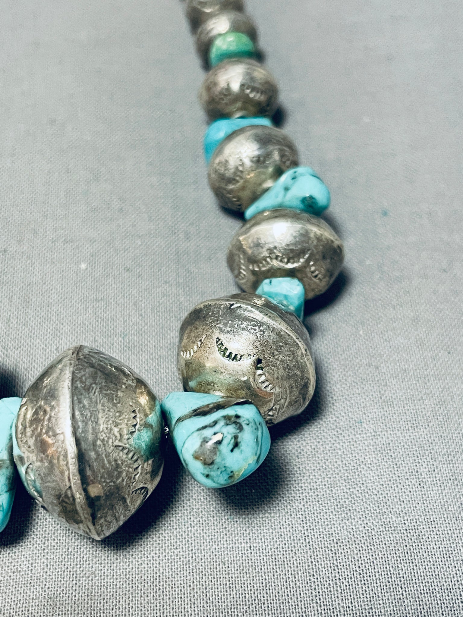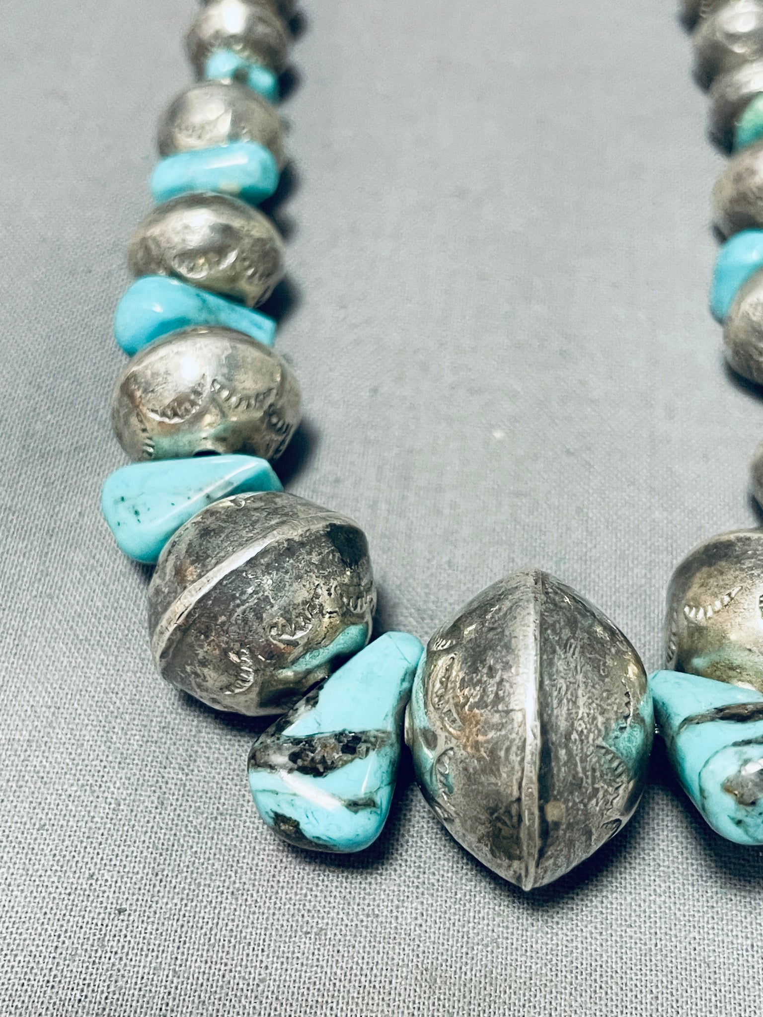 Distinctive Vintage Native American Navajo Kingman Turquoise Sterling Silver Necklace