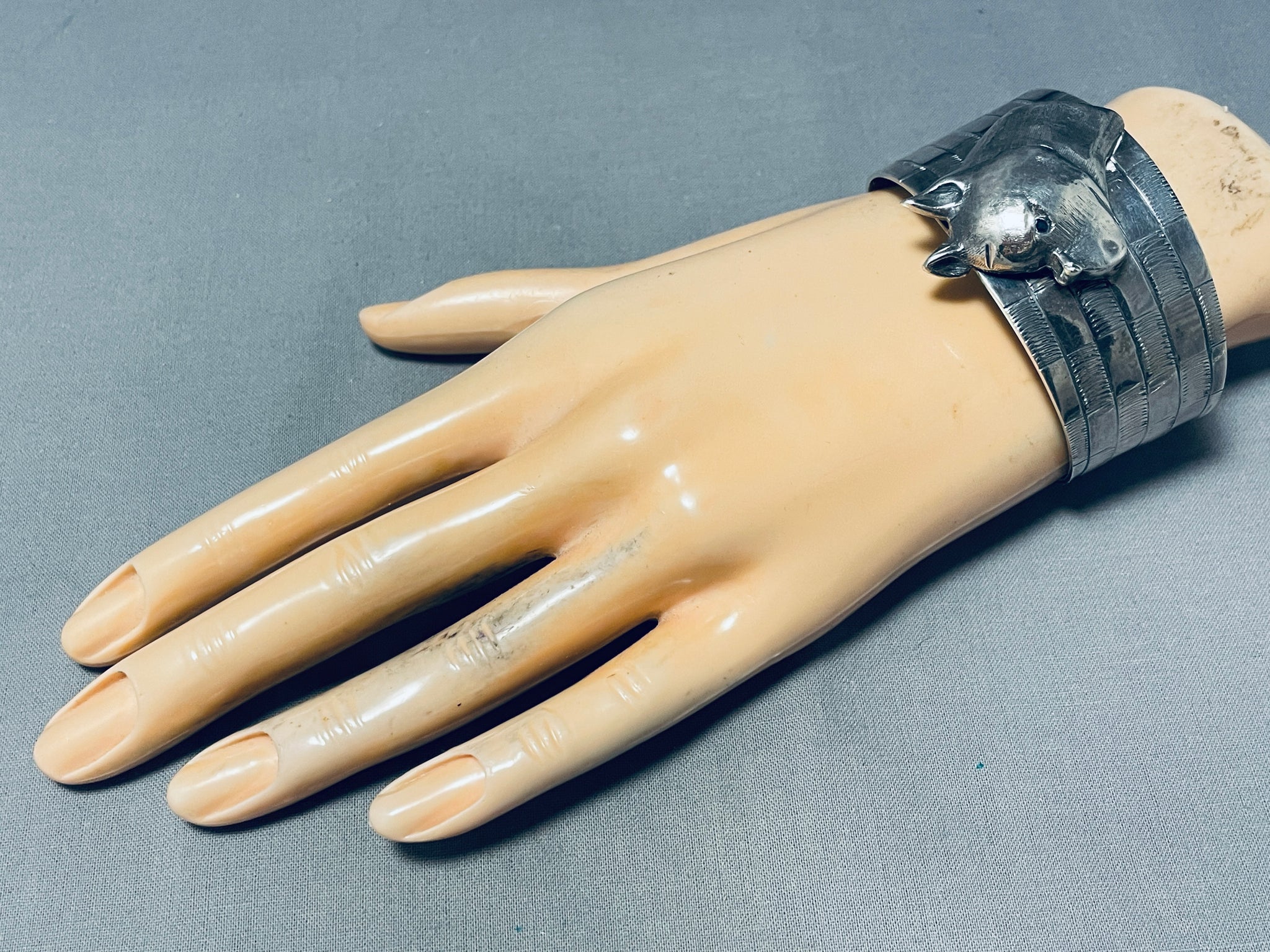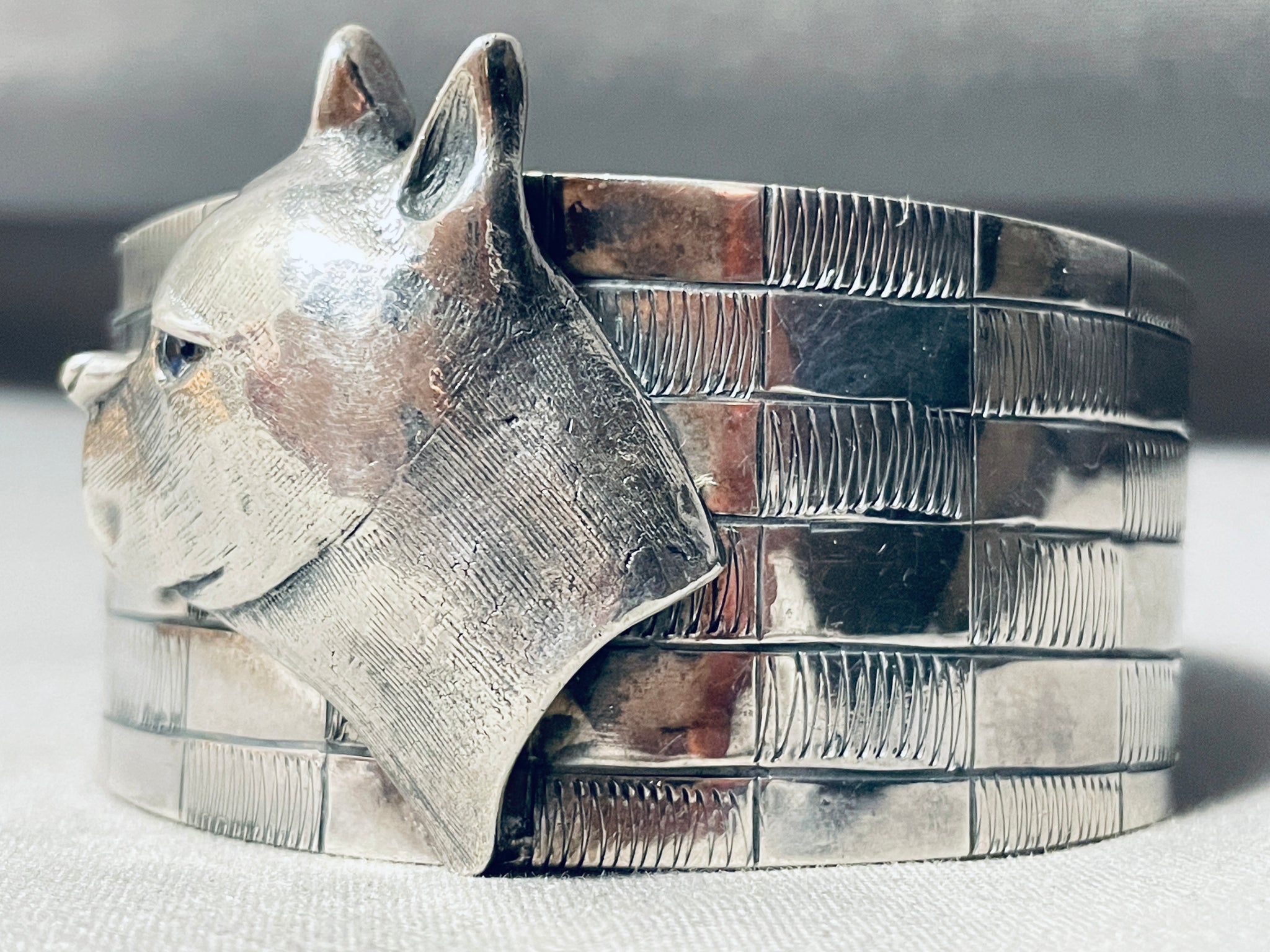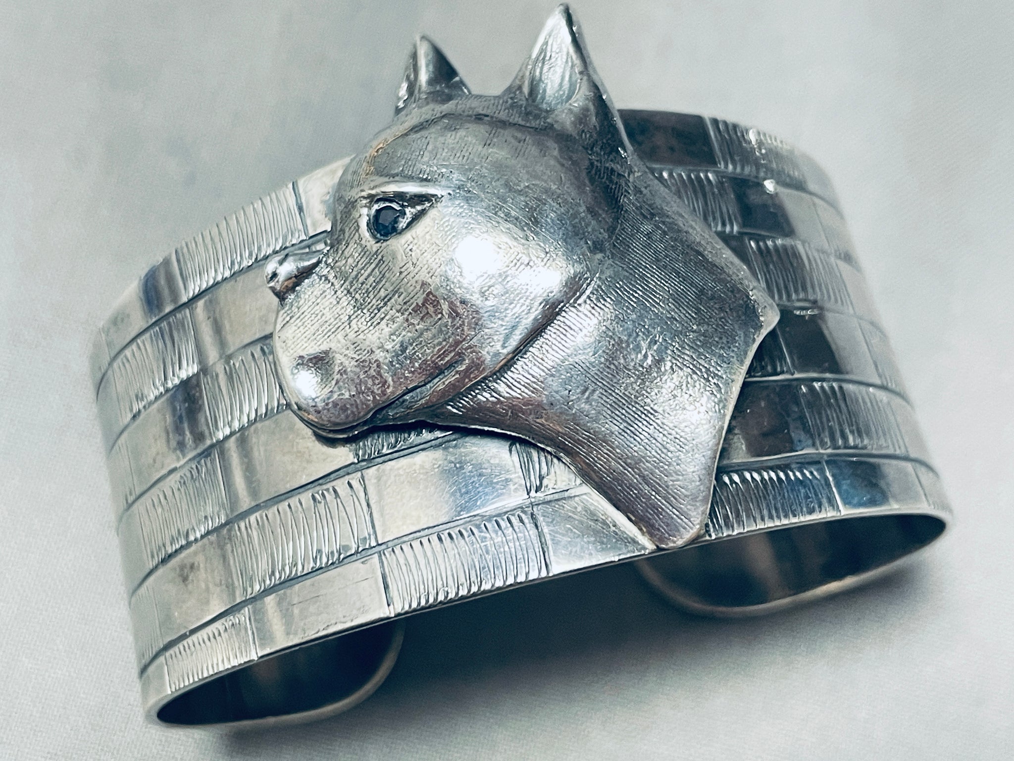 Dog Extremely Detailed Vintage Sterling Silver Bracelet Cuff