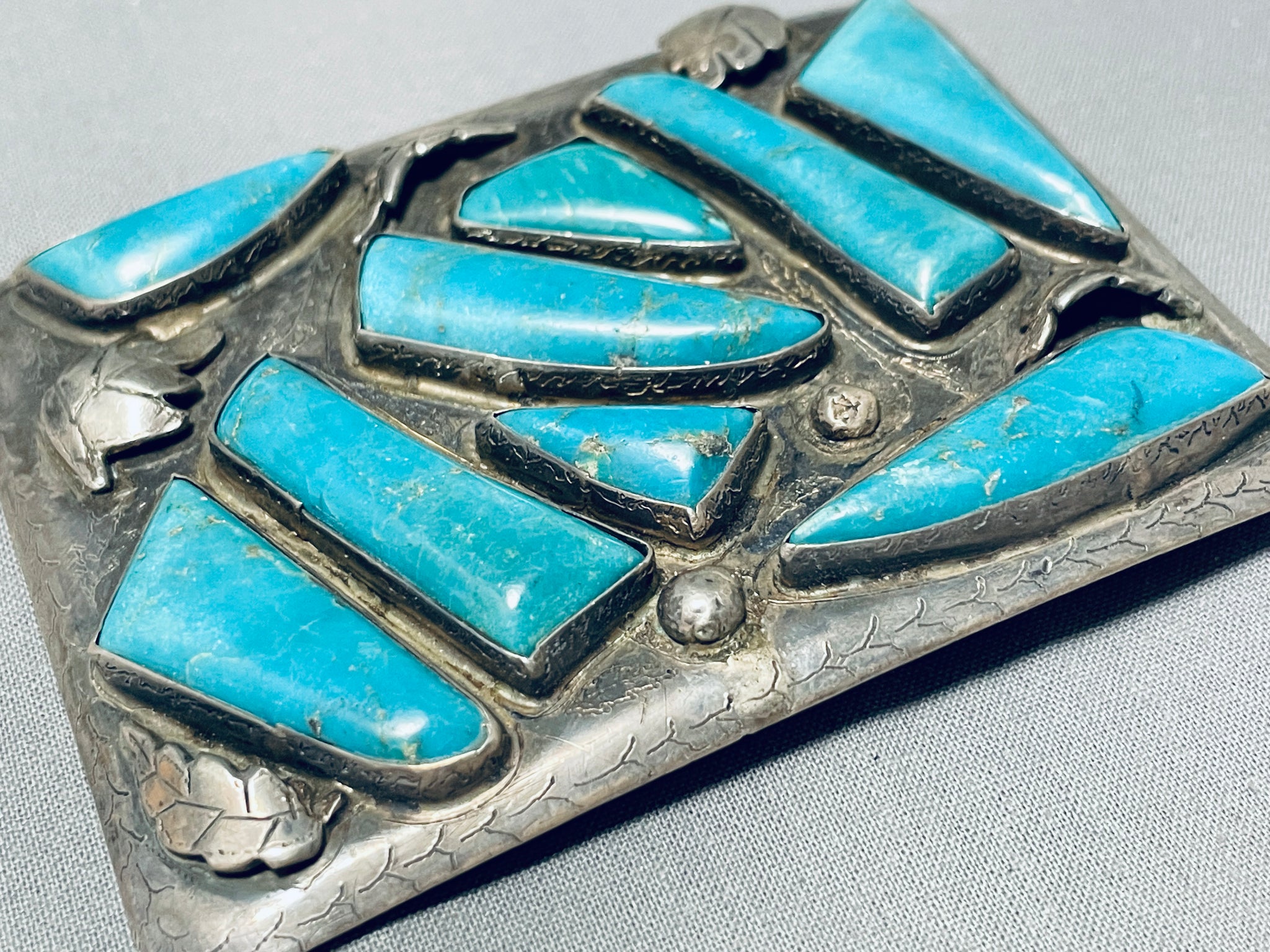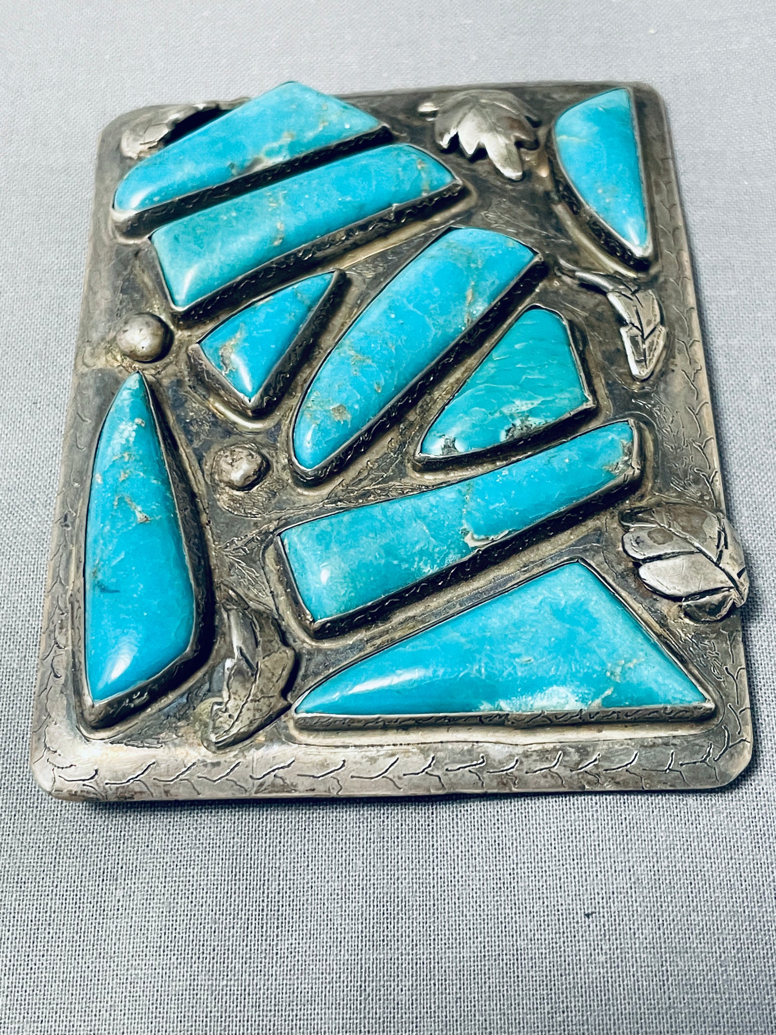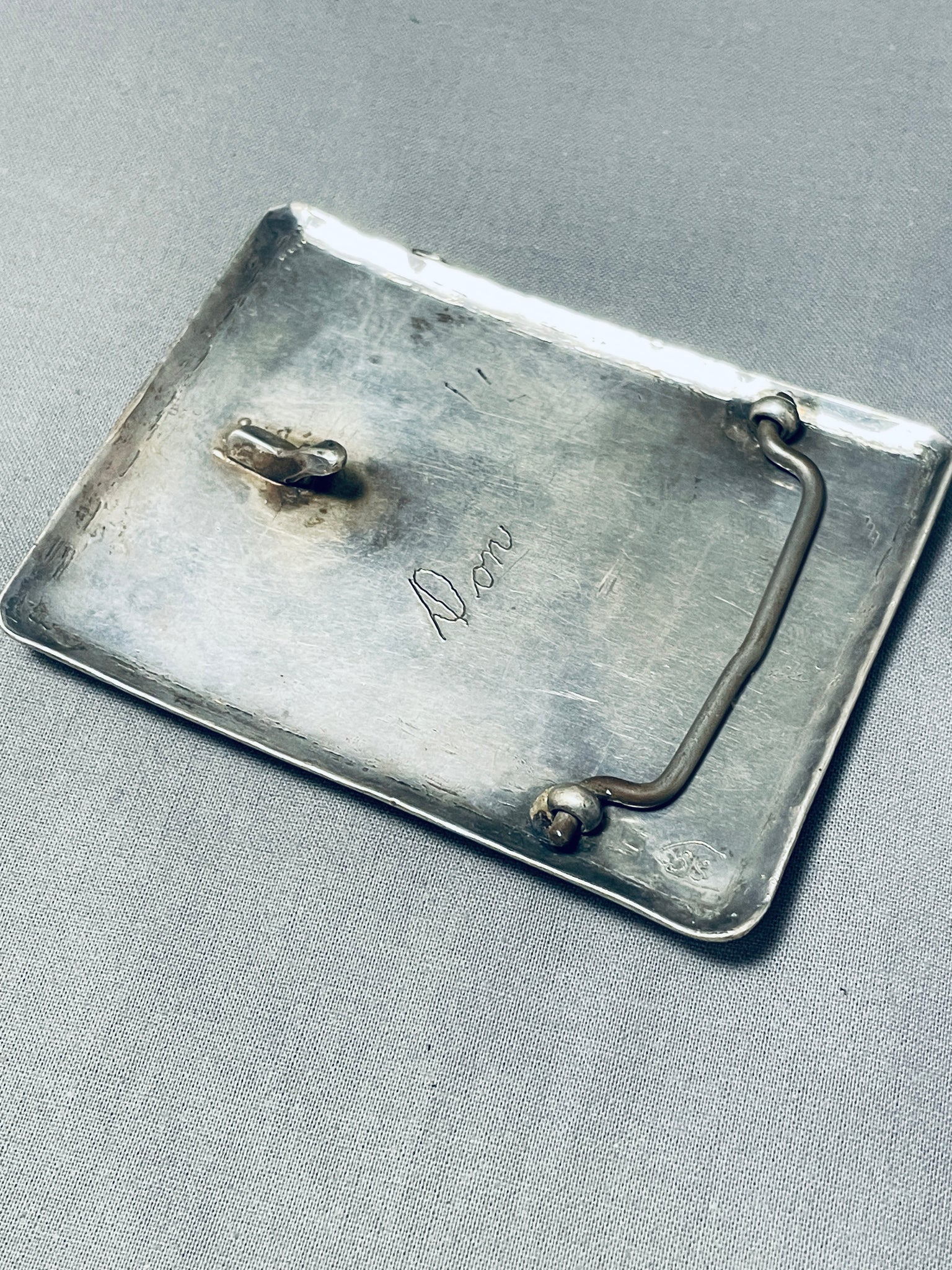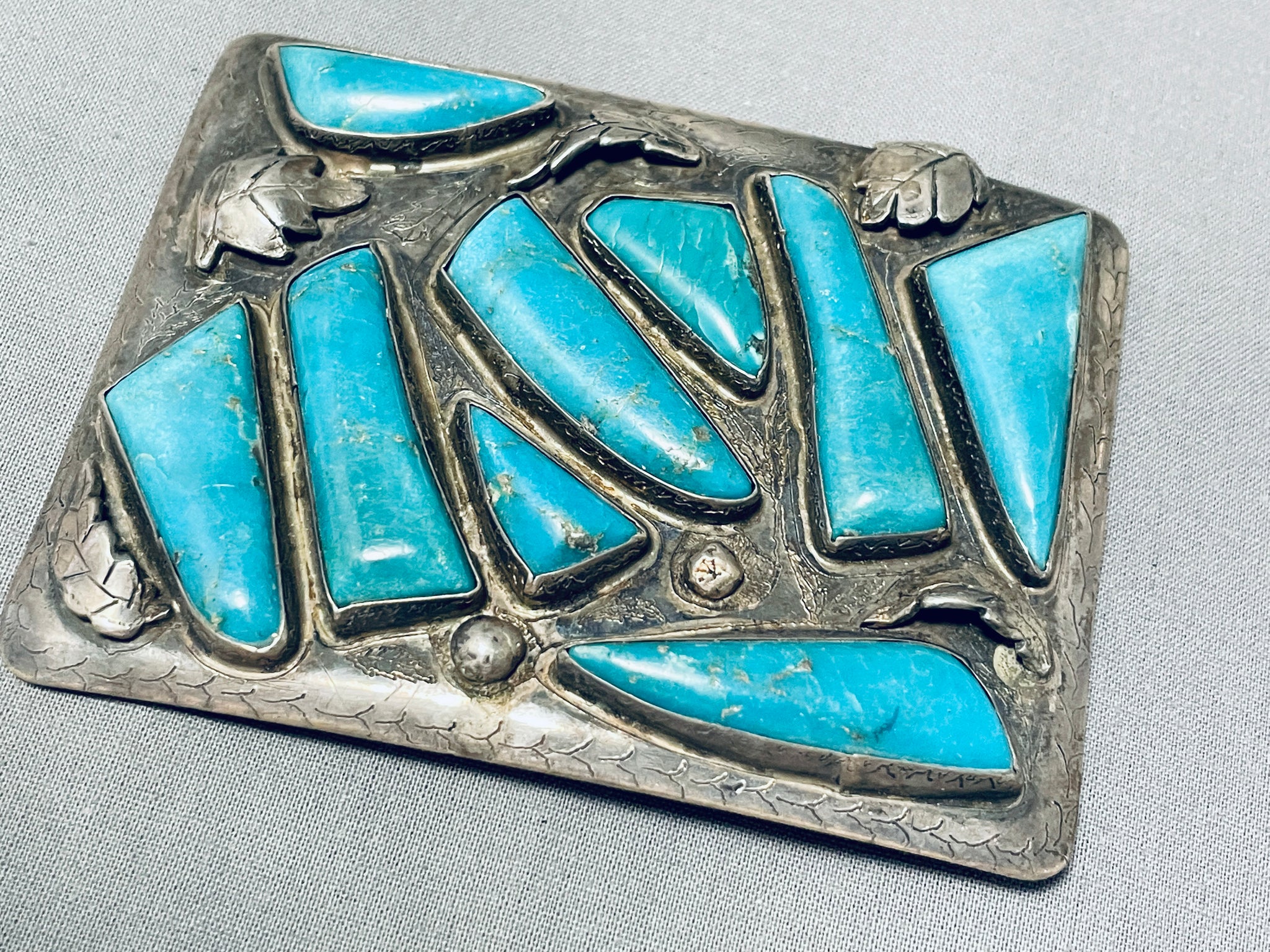 Don Platero Vintage Native American Navajo Blue Gem Turquoise Sterling Silver Buckle
