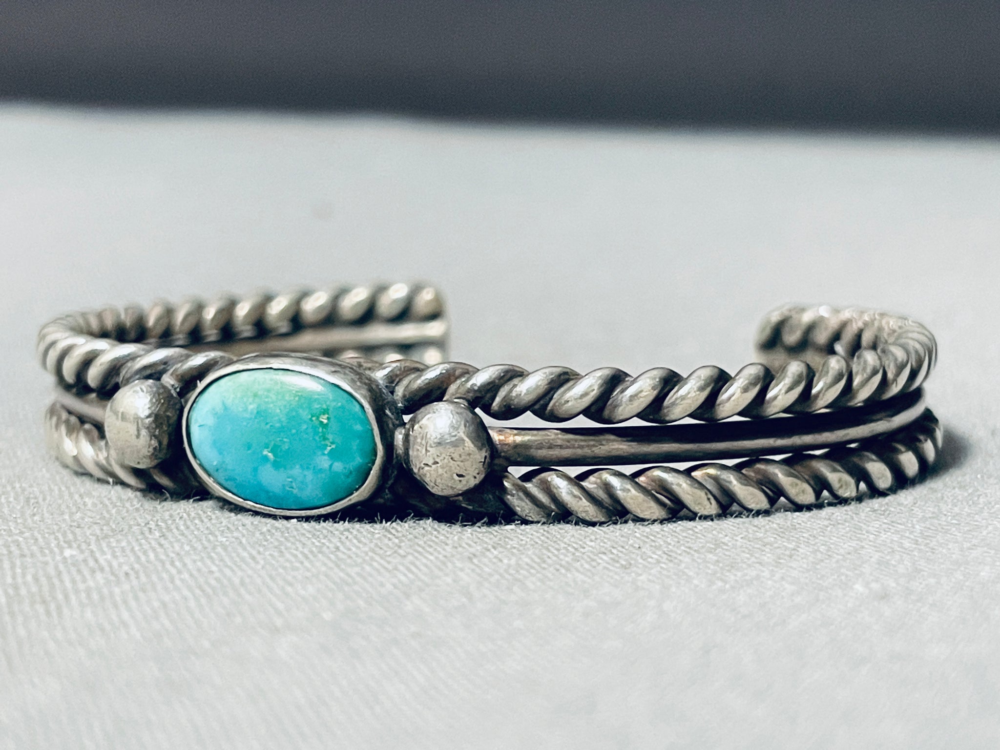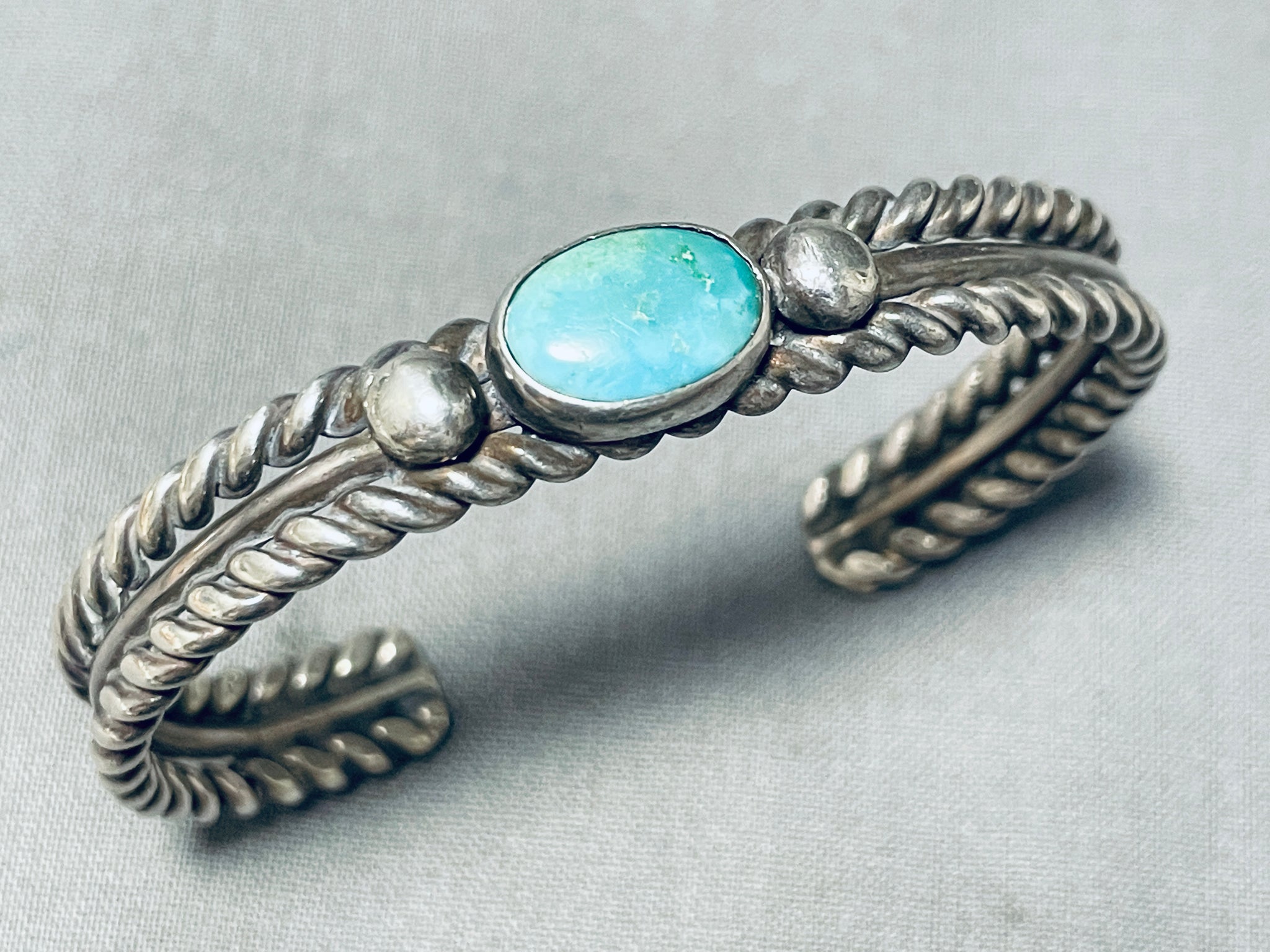 Double Coiled Vintage Native American Navajo Turquoise Sterling Silver Bracelet