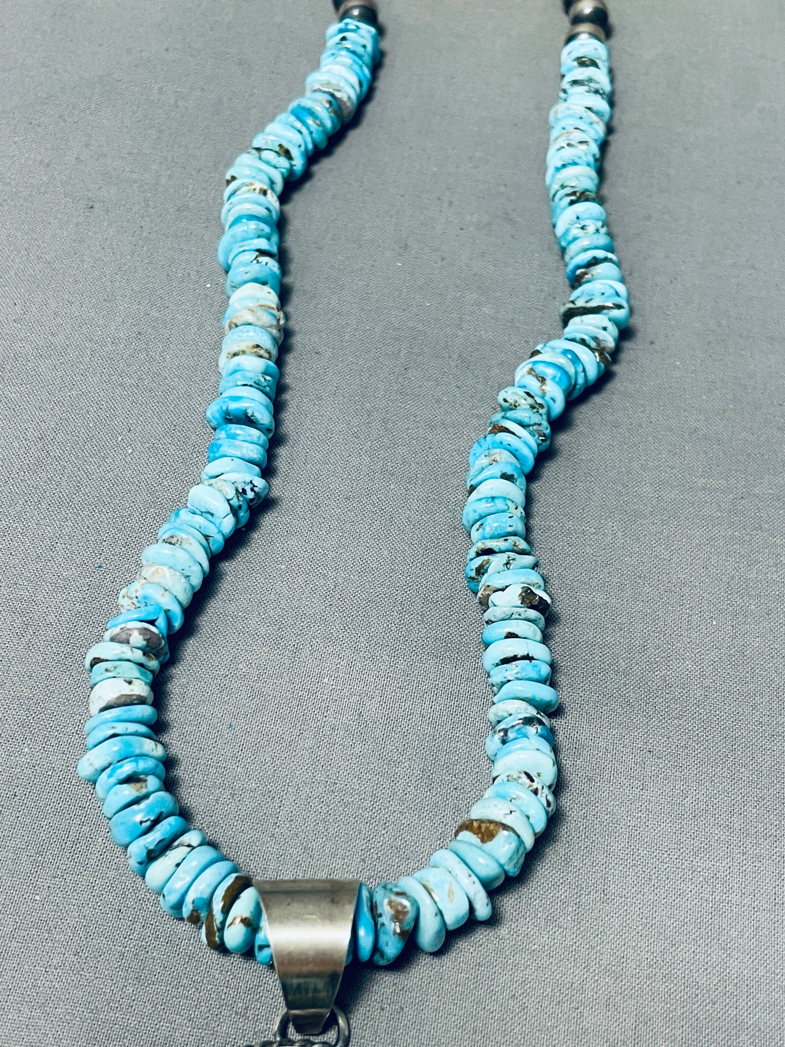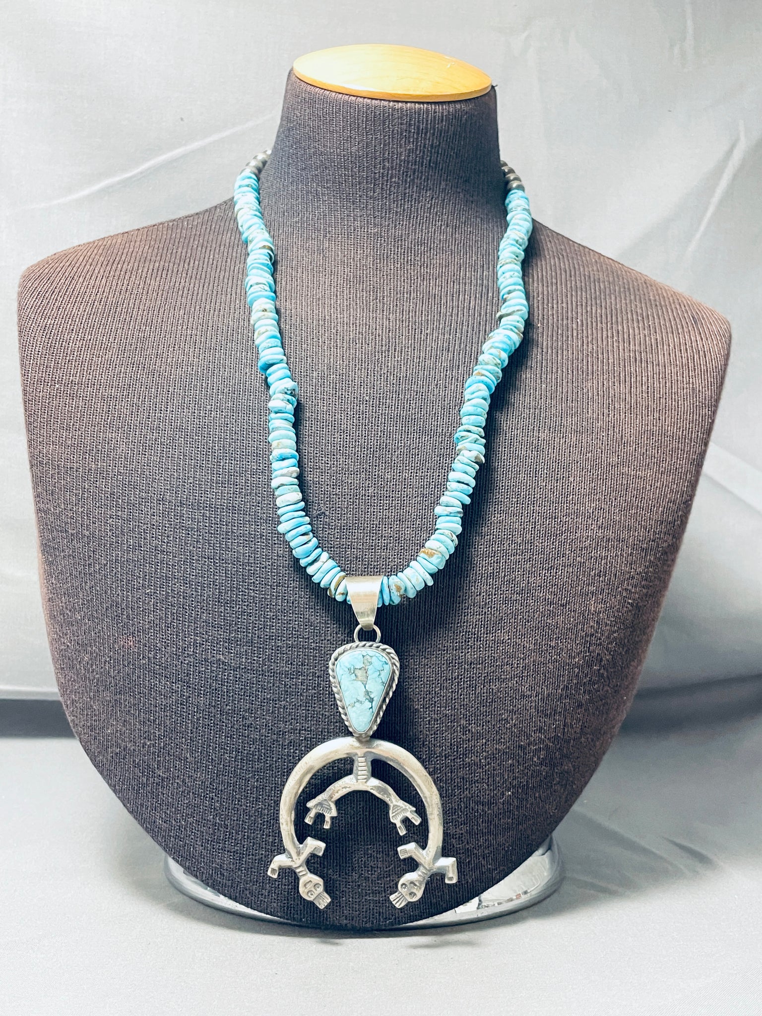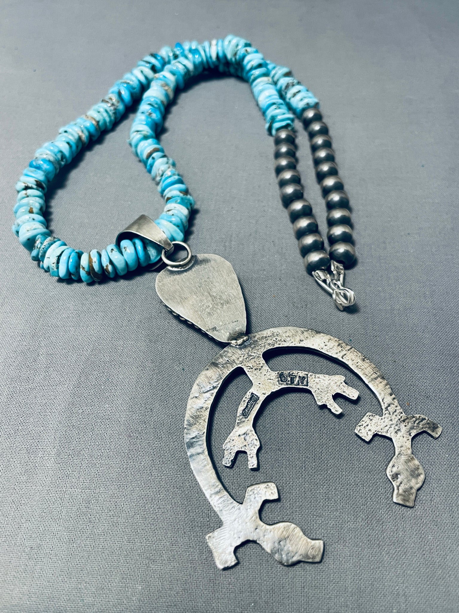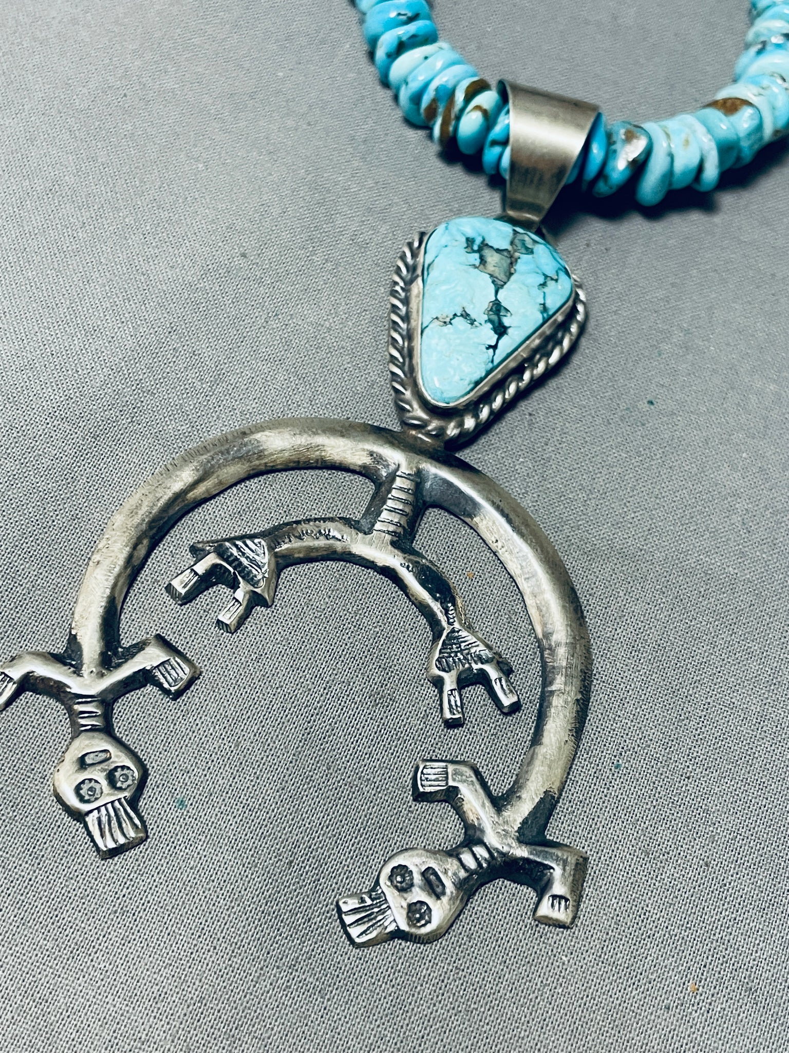 Double Yei Kachina Native American Navajo Turquoise Sterling Silver Naja Necklace