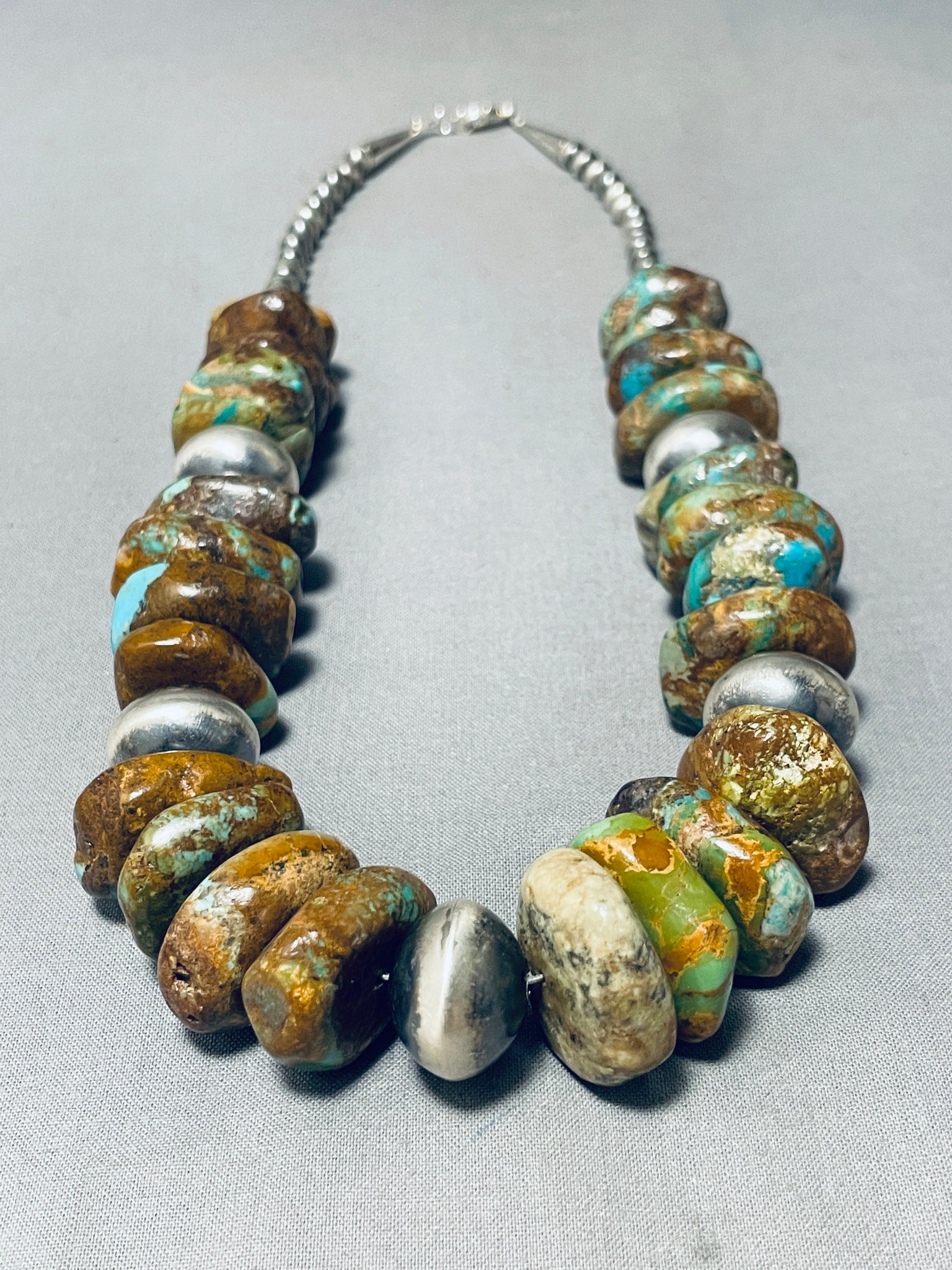 Dramatic Native American Navajo Royston Turquoise Sterling Silver Necklace
