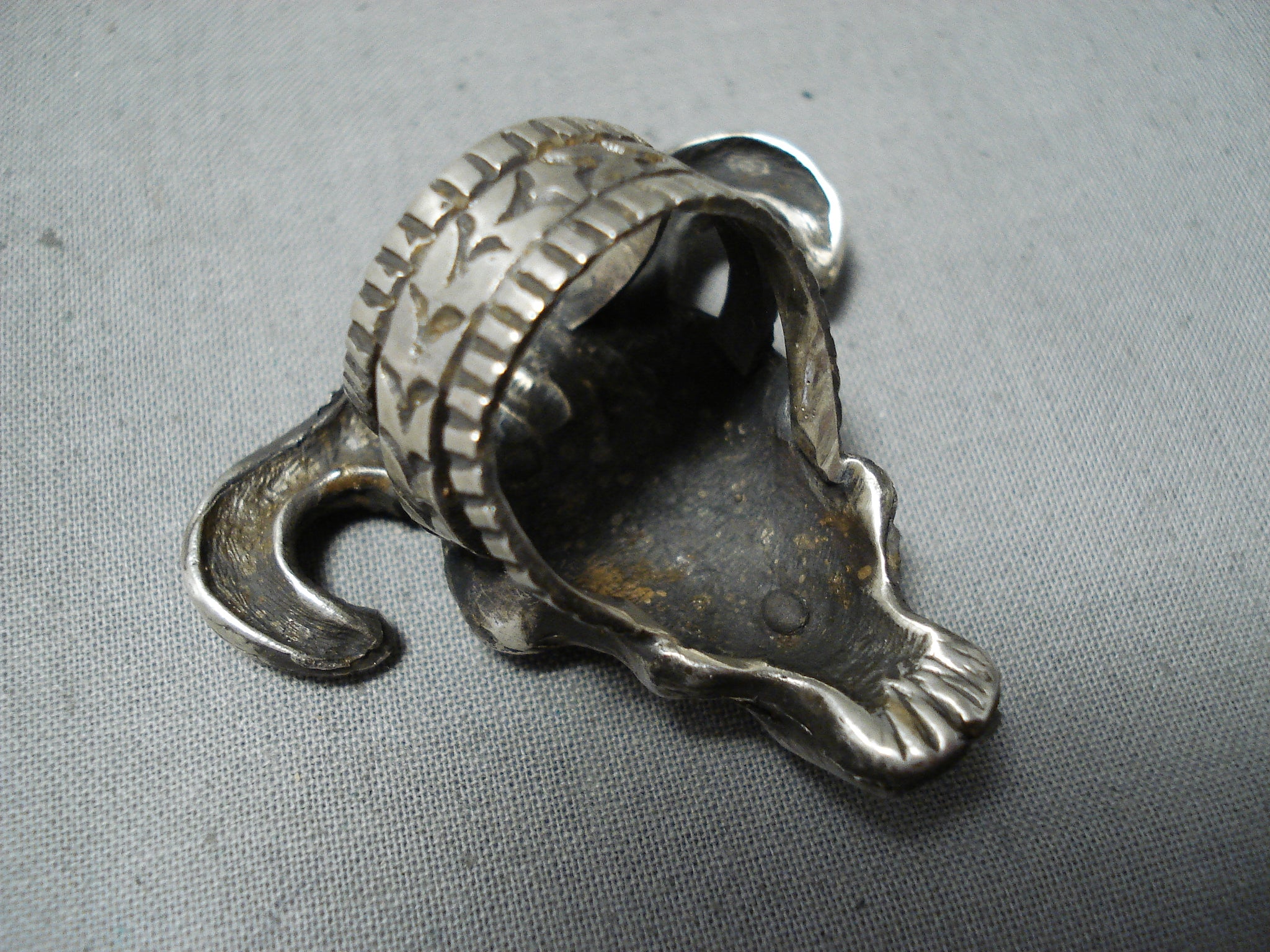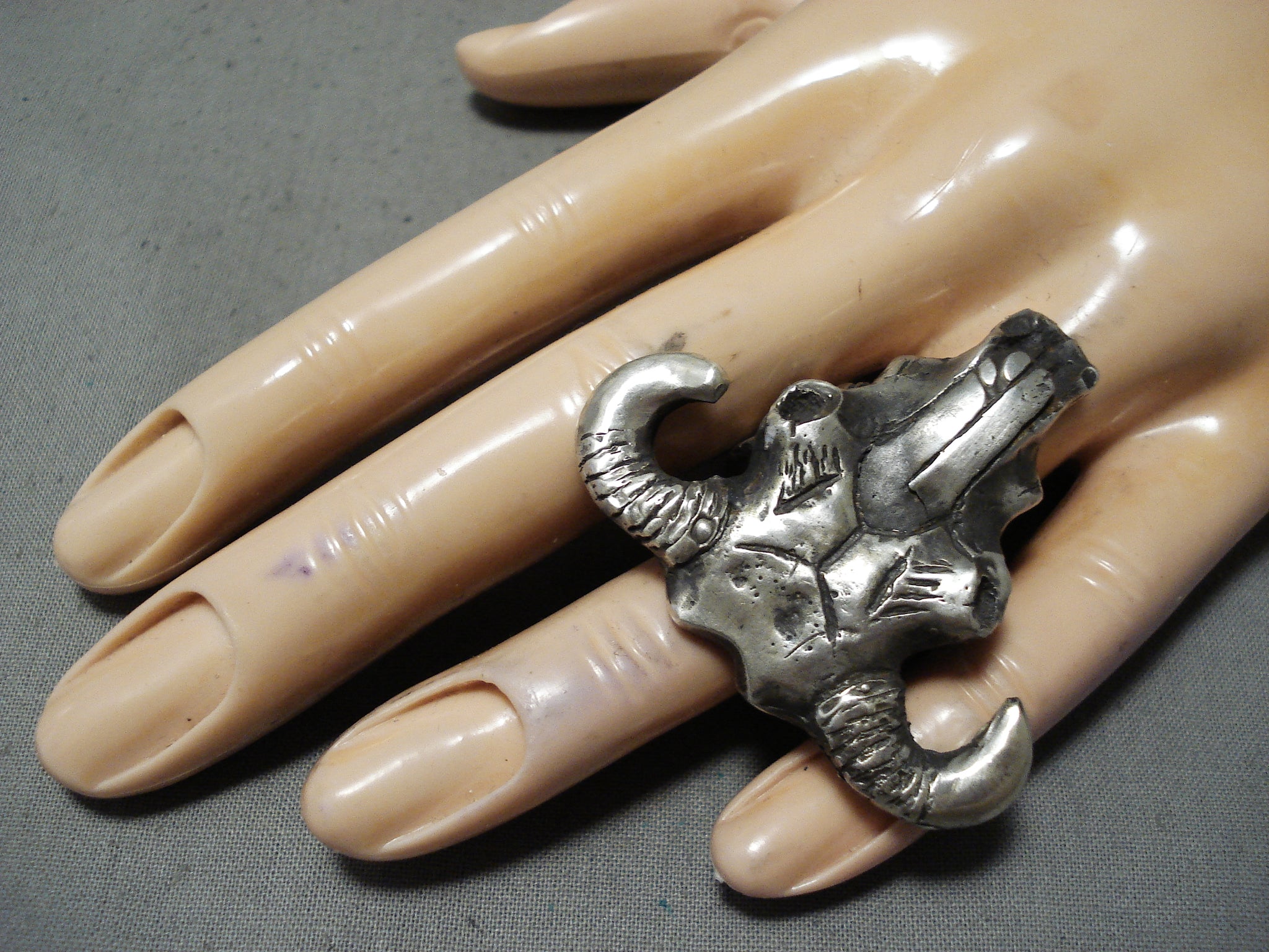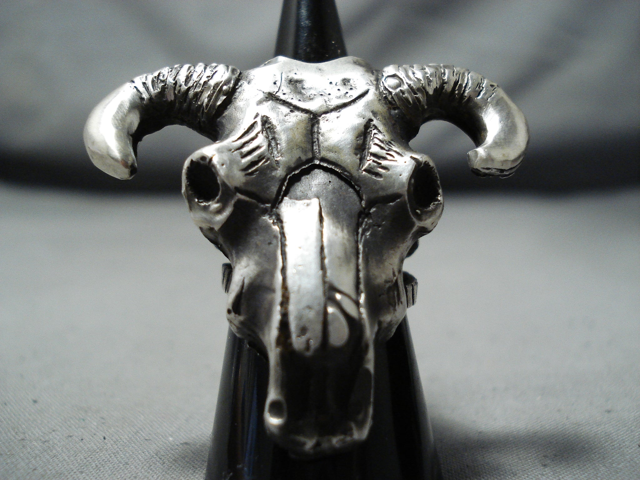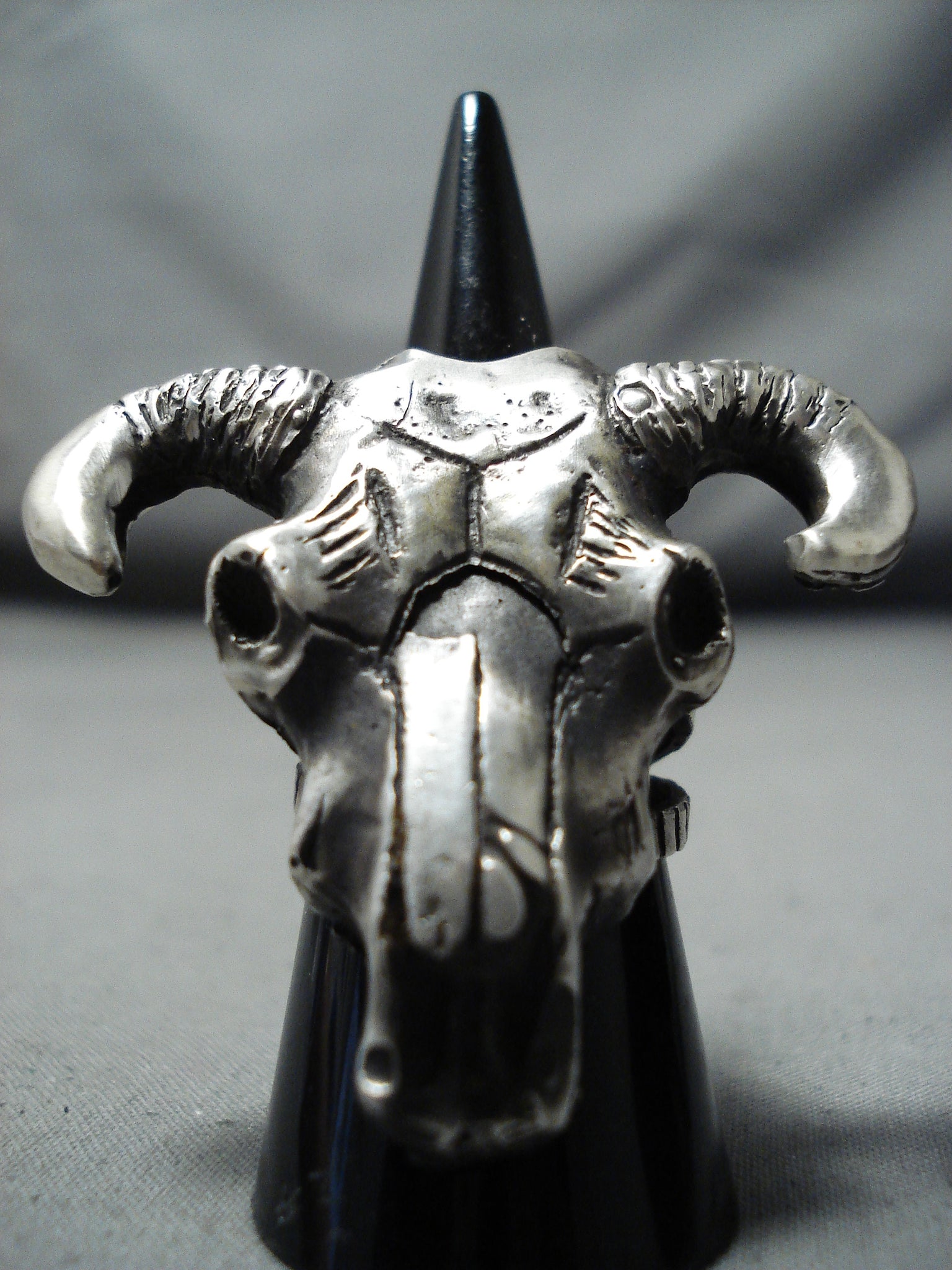 Dramatic Navajo Sterling Silver Skull Ring Native American