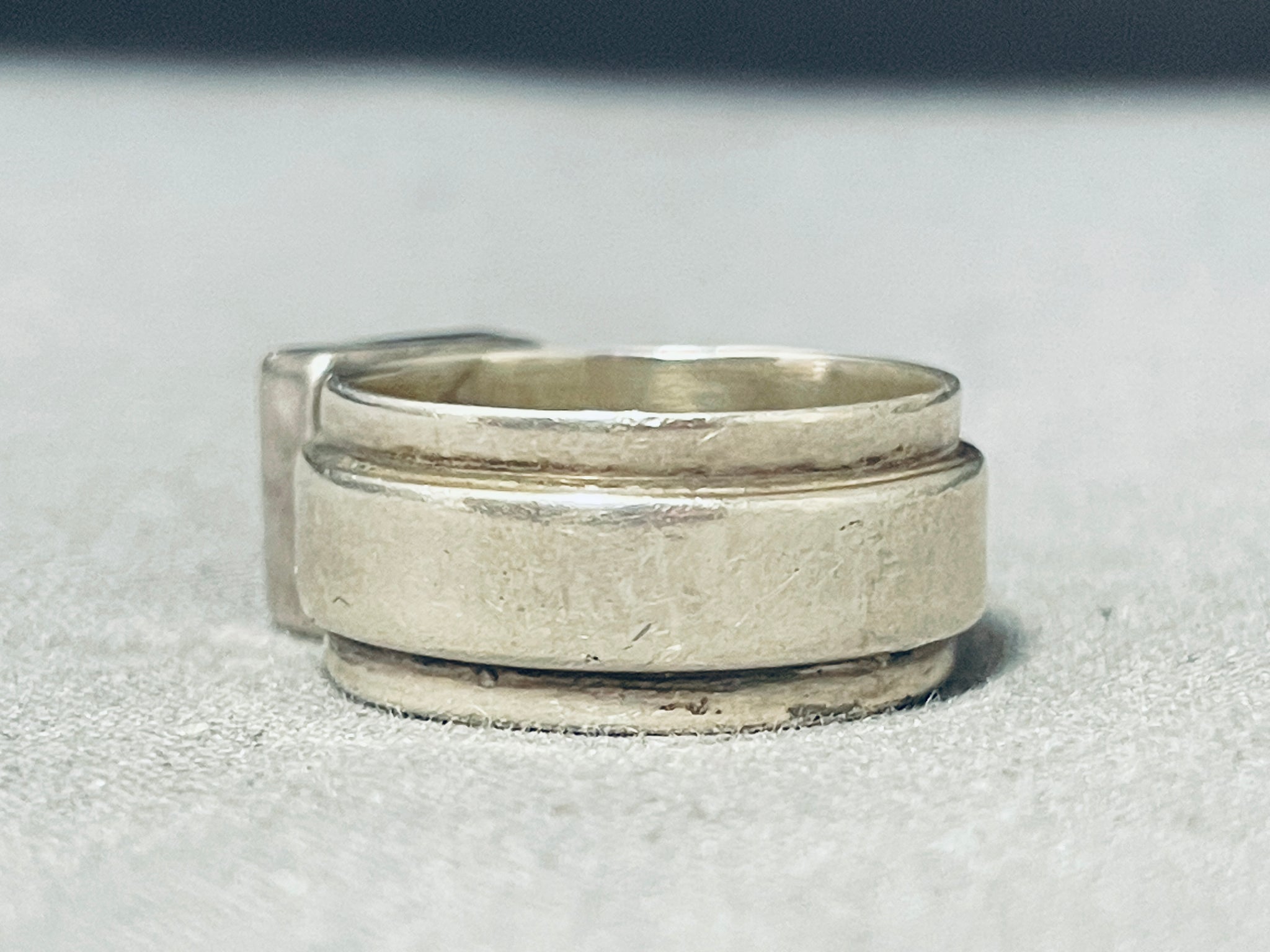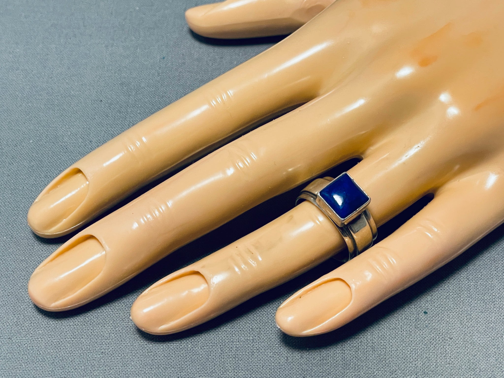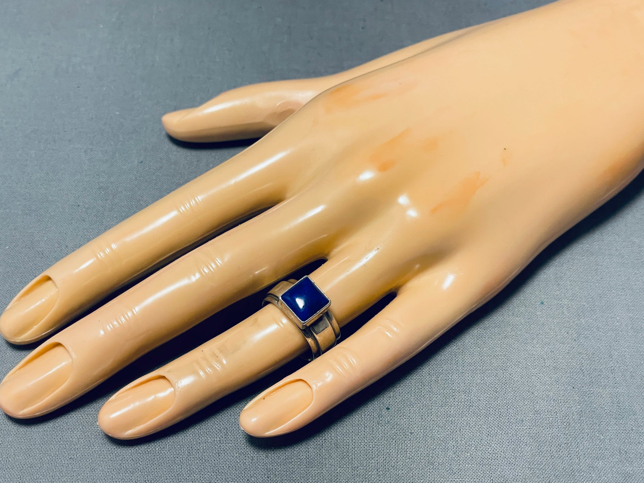 Dramatic Vintage Native American Navajo Lapis Sterling Silver Ring Signed Ann Curley