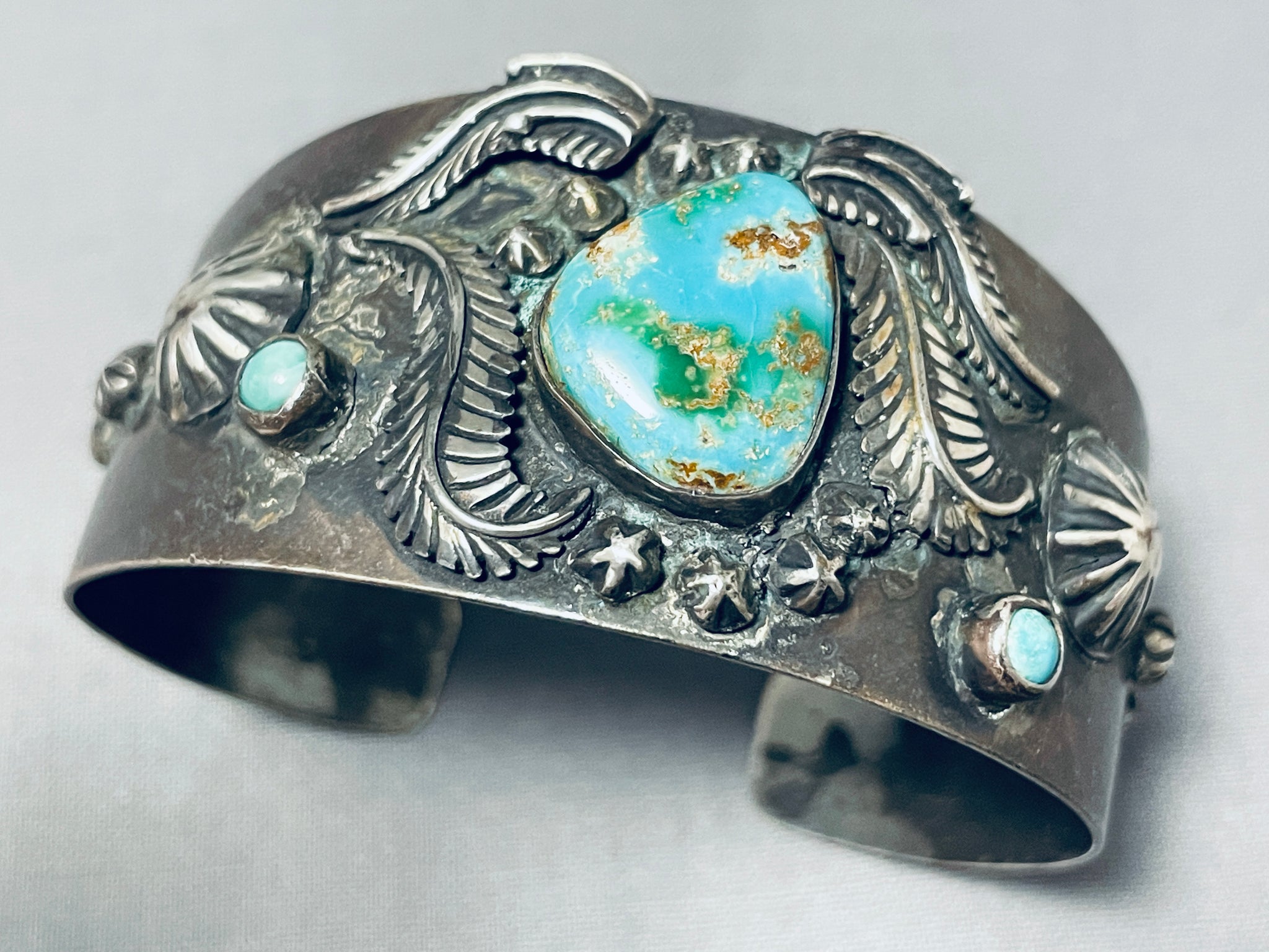 Dramatic Vintage Native American Navajo Royston Turquoise Sterling Silver Bracelet