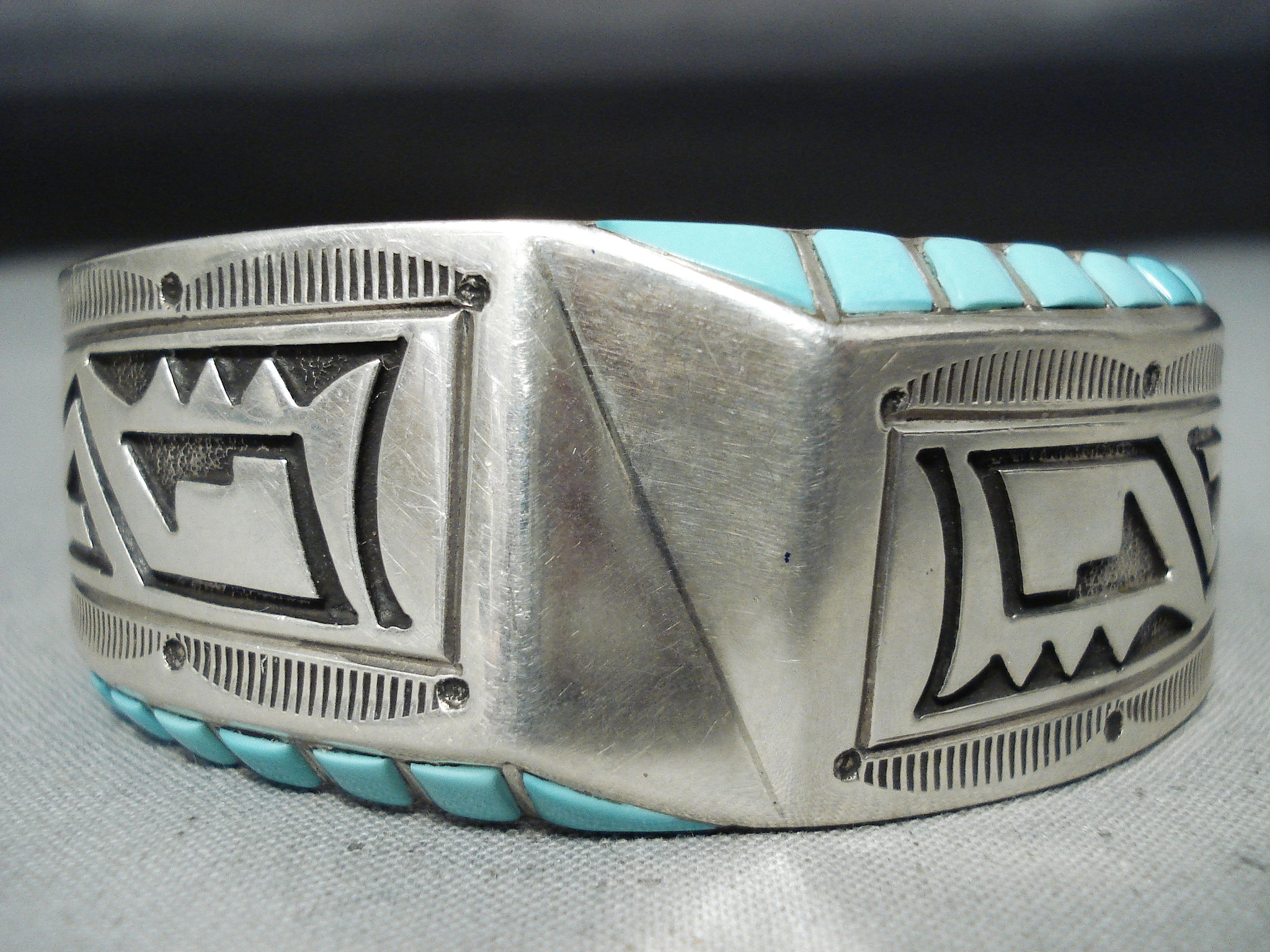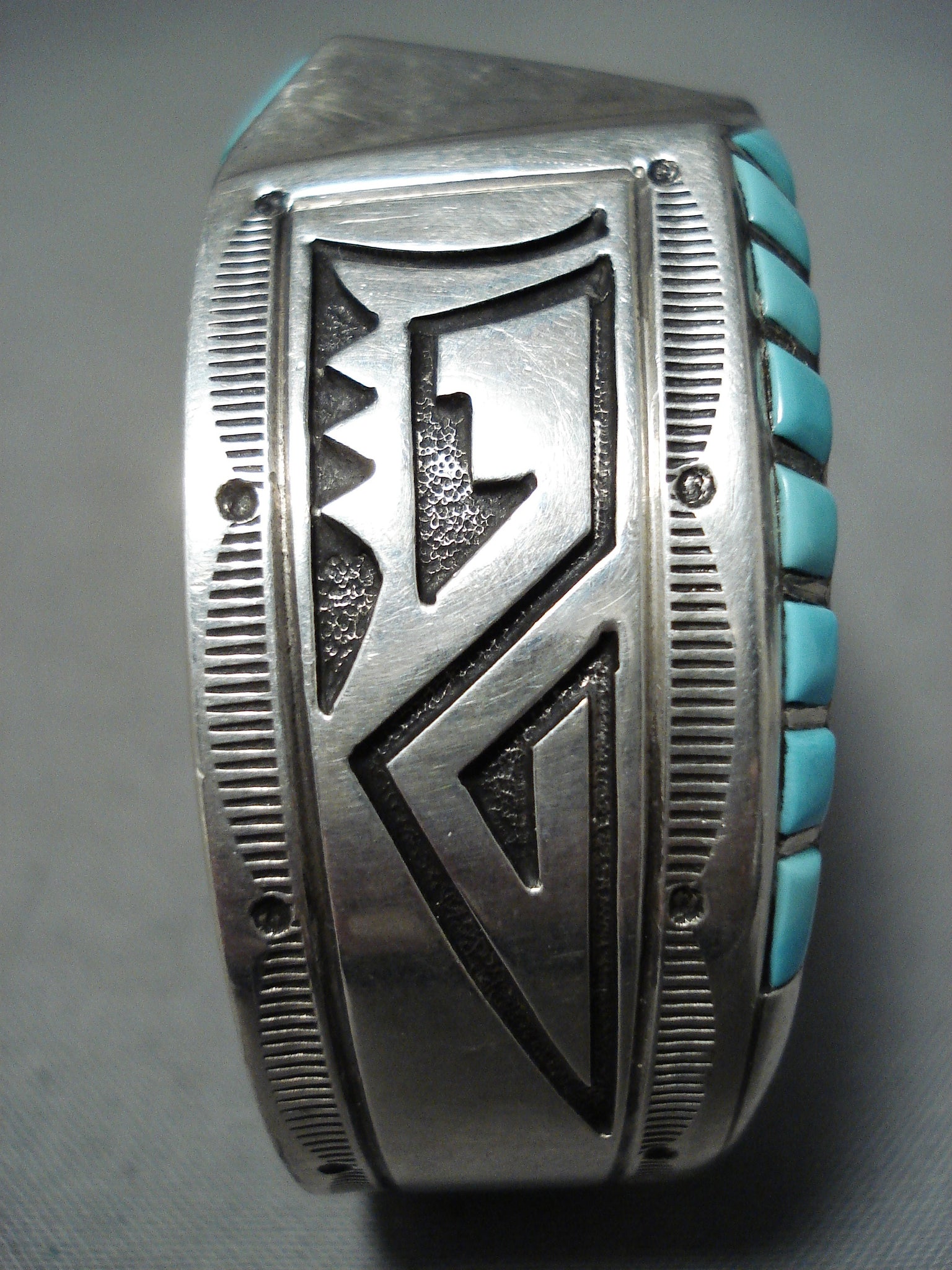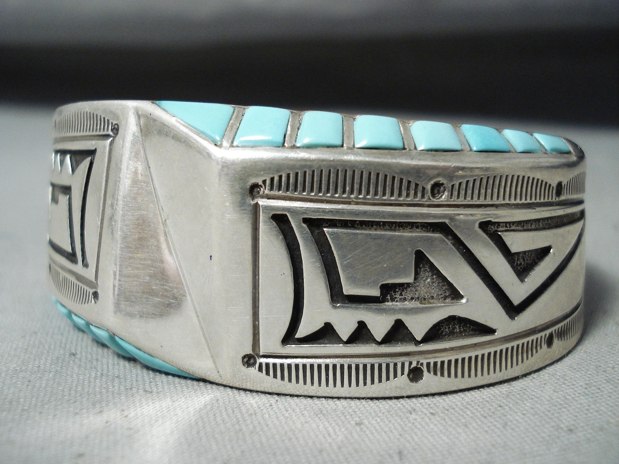 Dramatic Vintage Native American Navajo Sleeping Beauty Turquoise Sterling Silver Bracelet