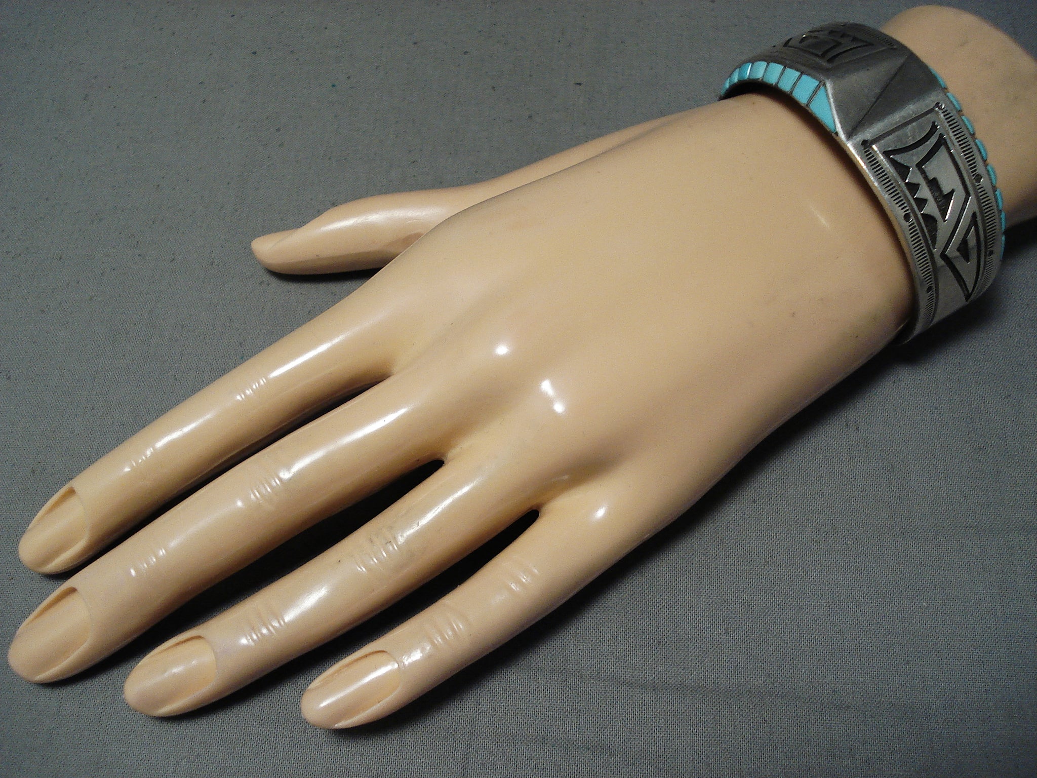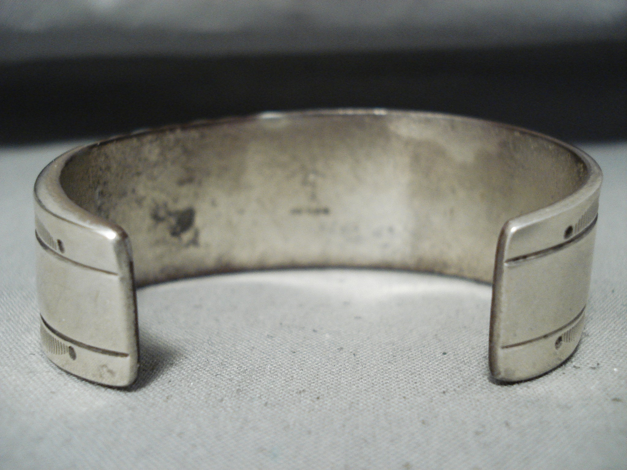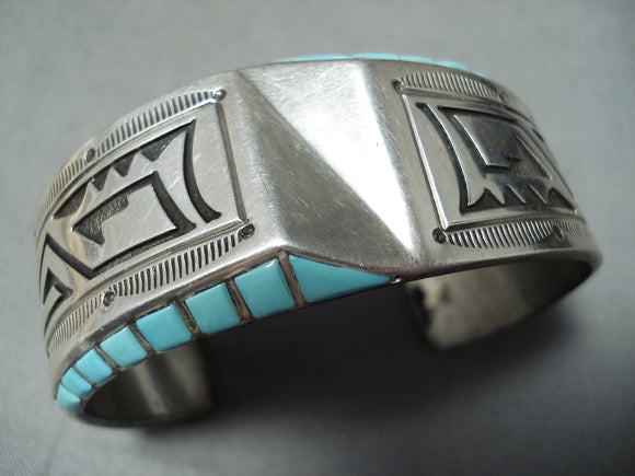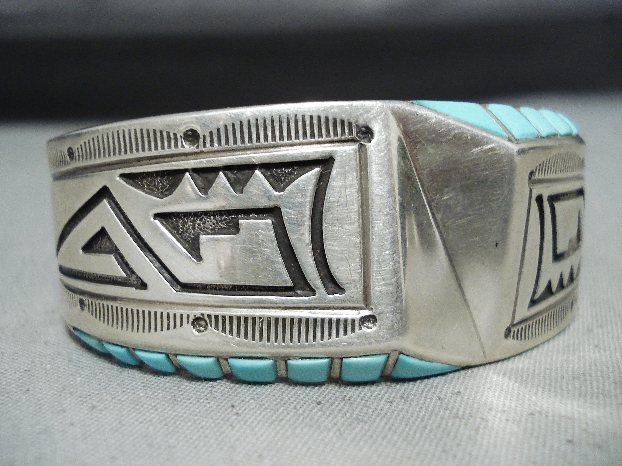 Dramatic Vintage Native American Navajo Sleeping Beauty Turquoise Sterling Silver Bracelet