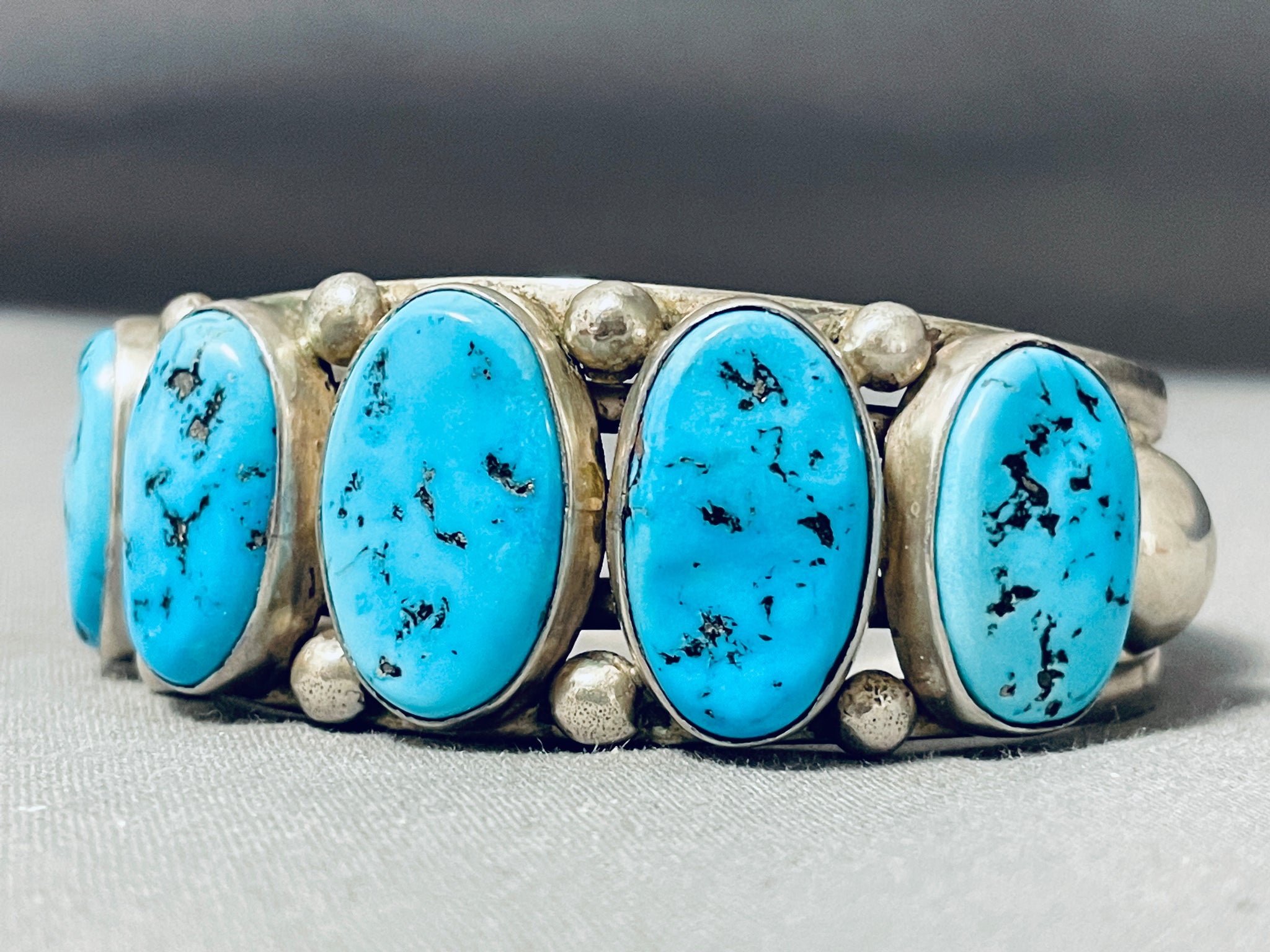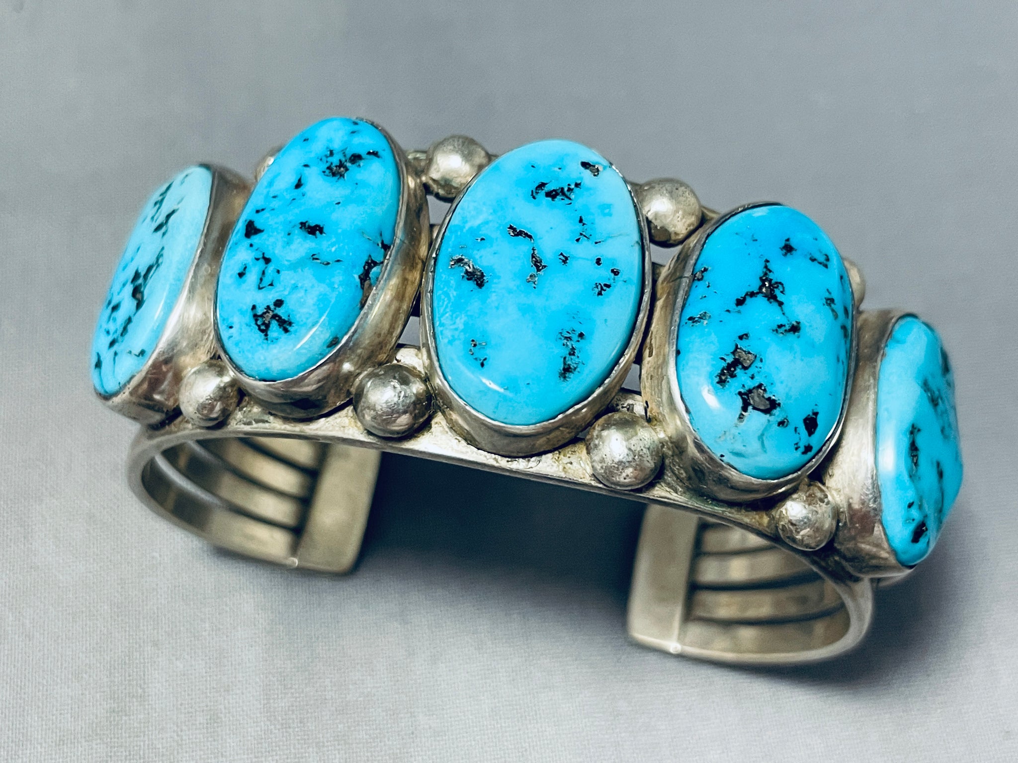 Dramatic Vintage Native American Navajo Sleeping Beauty Turquoise Sterling Silver Bracelet