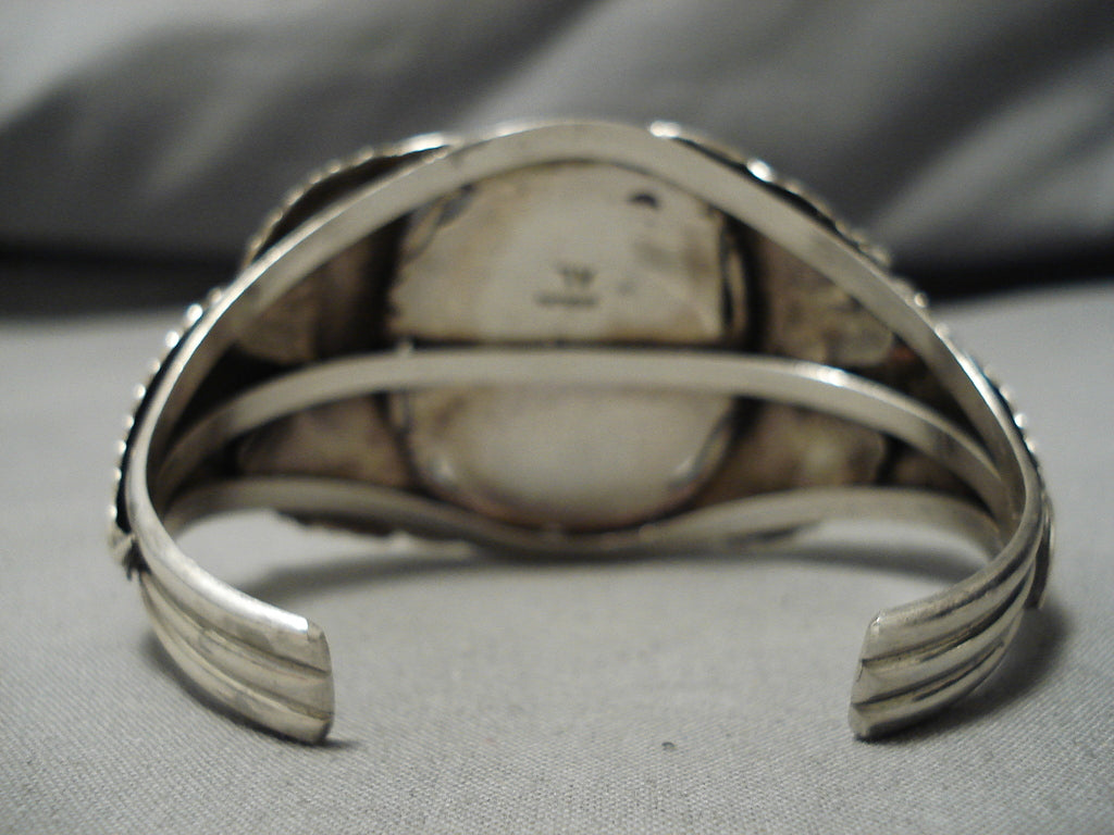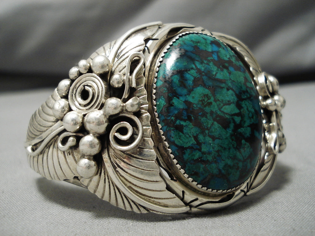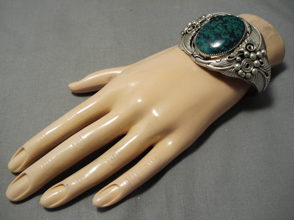 Dramatic Vintage Native American Navajo Spiderweb Green Turquoise Sterling Silver Bracelet
