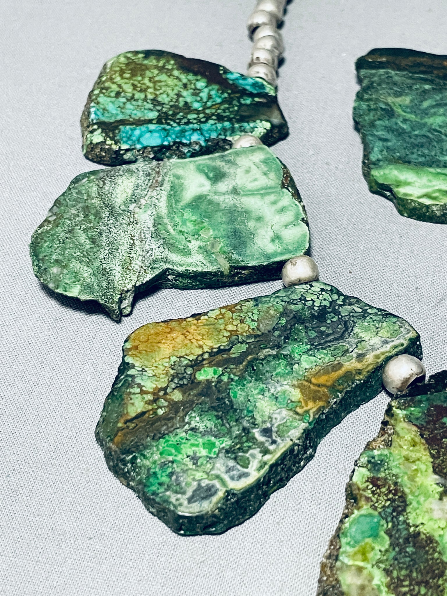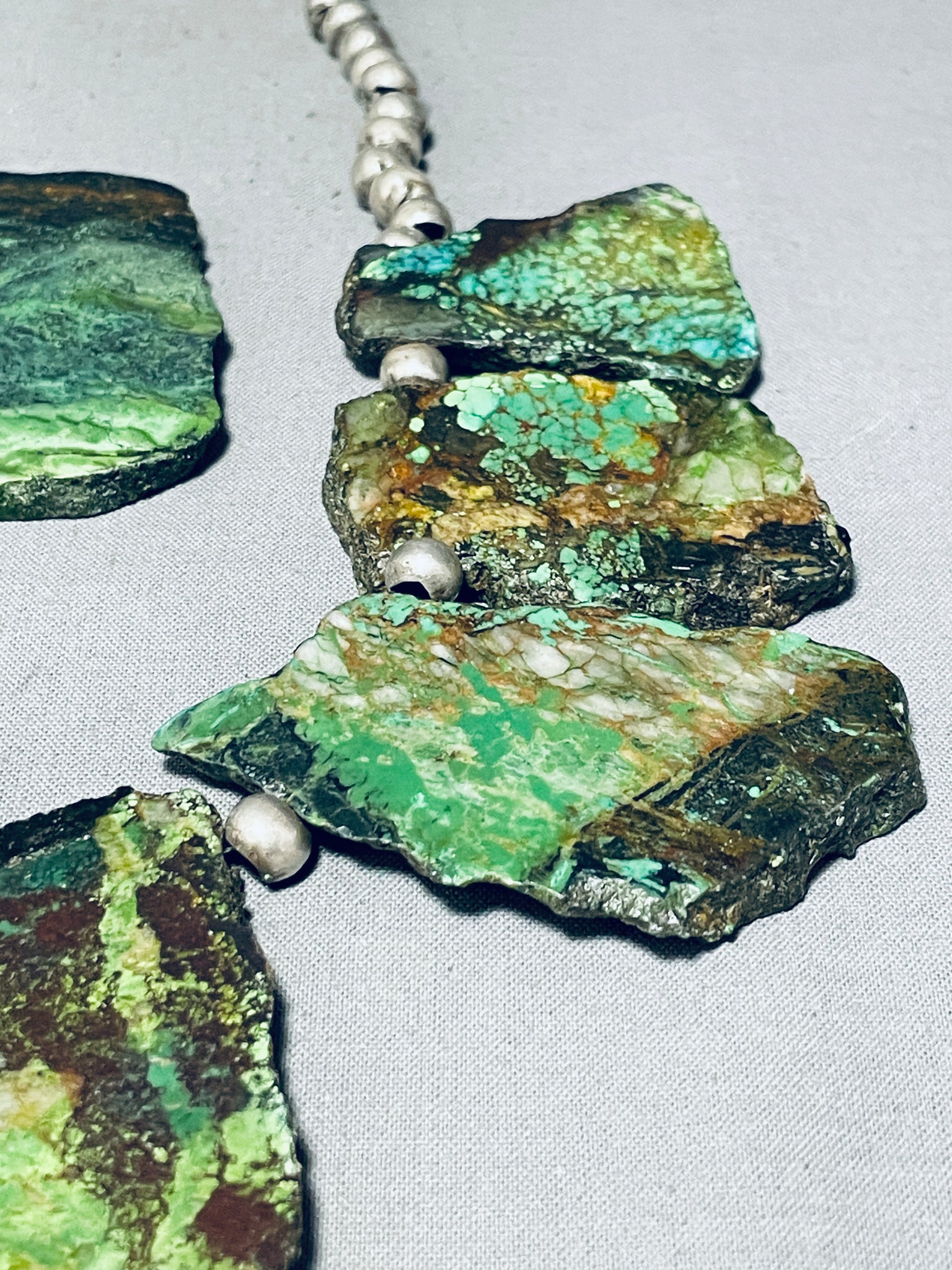 Dropdead Fab Slab Vintage Native American Navajo Green Turquoise Sterling Silver Necklace