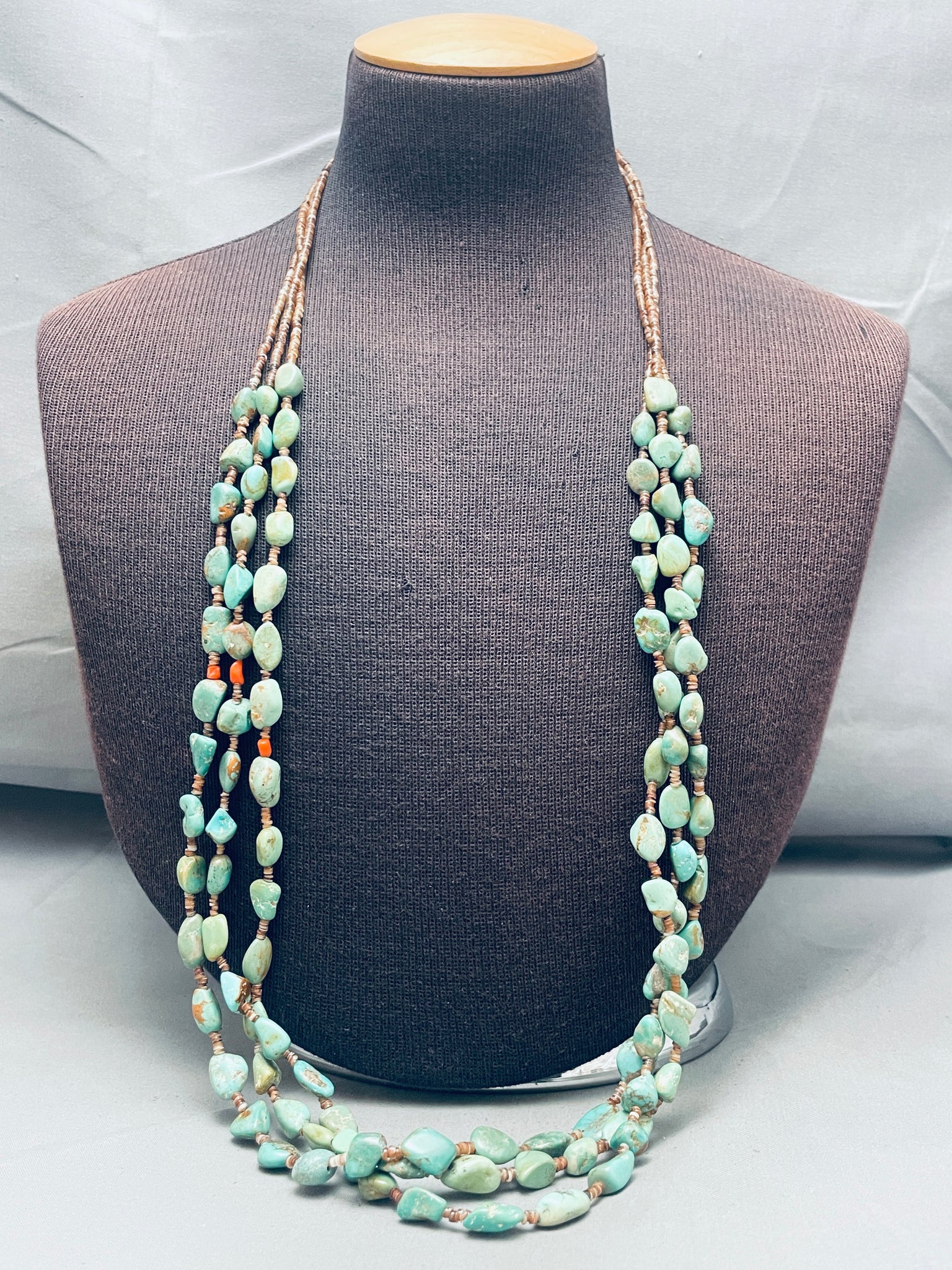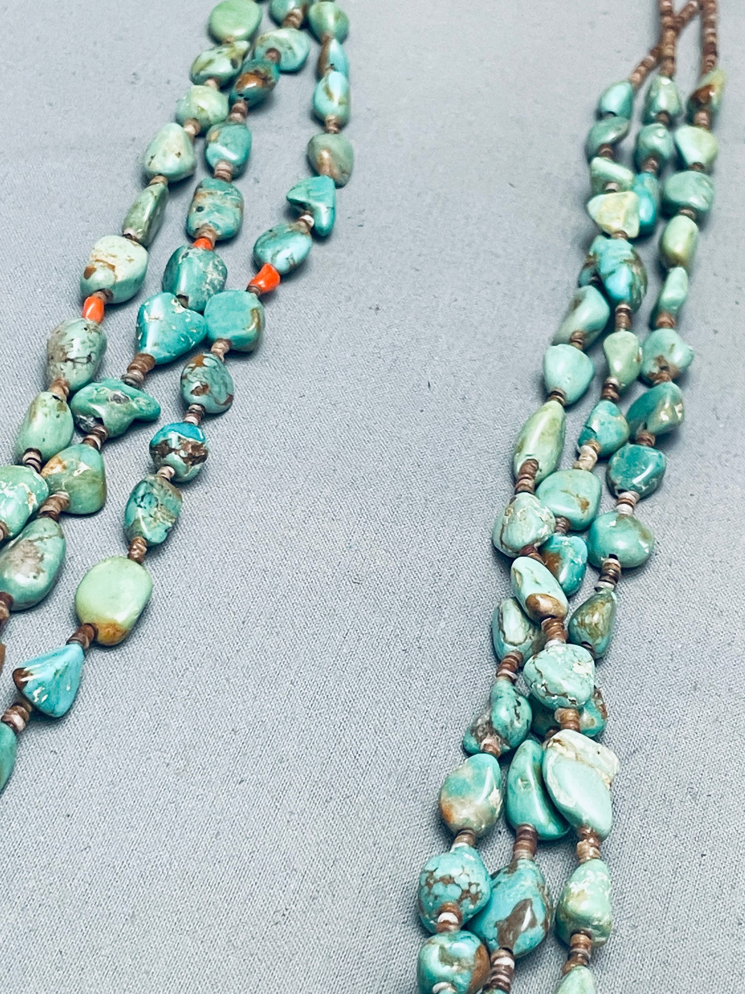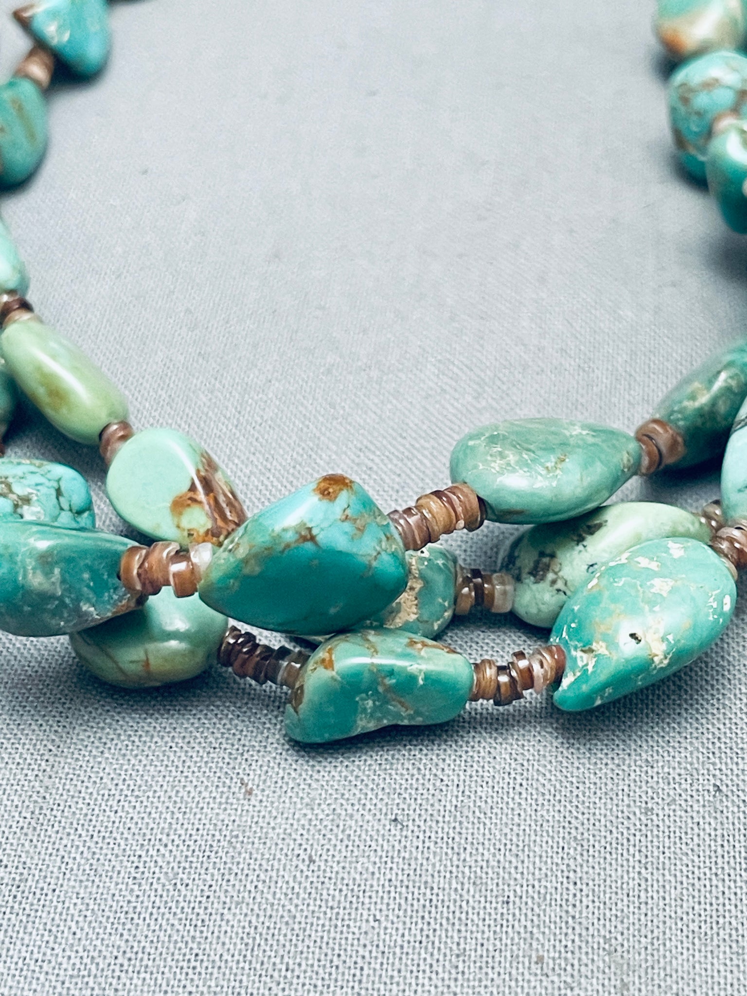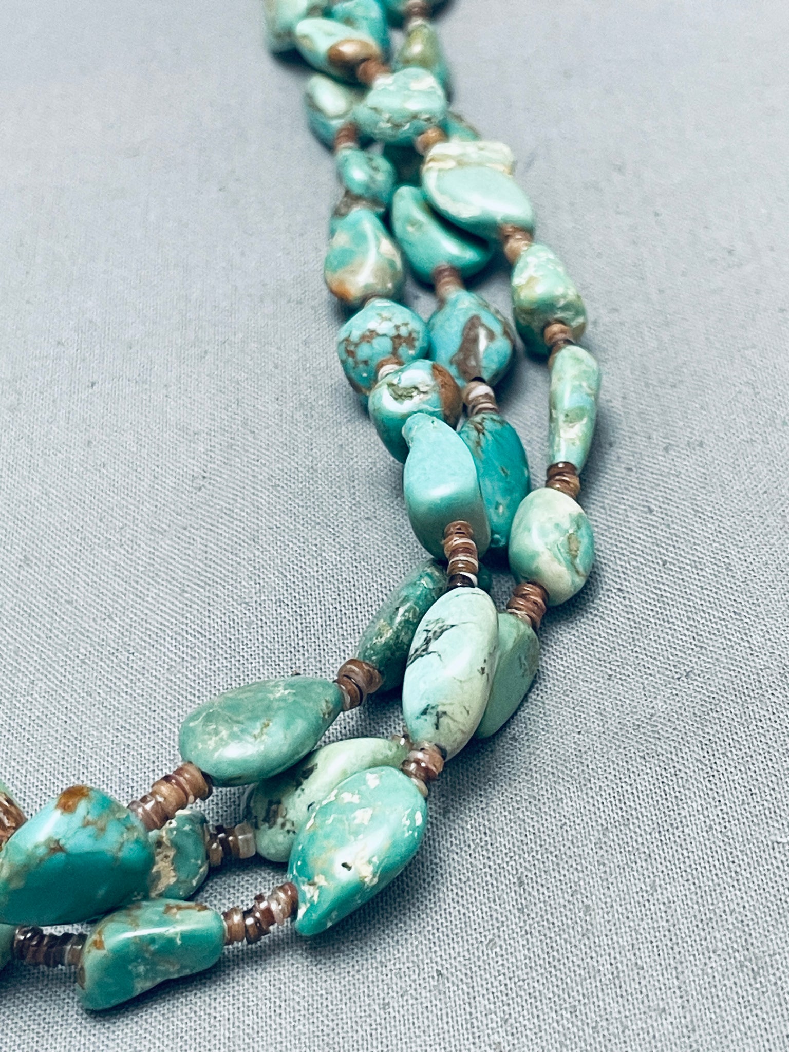 Dropdead Fab Vintage Native American Navajo Green Turquoise Sterling Silver Heishi Necklace