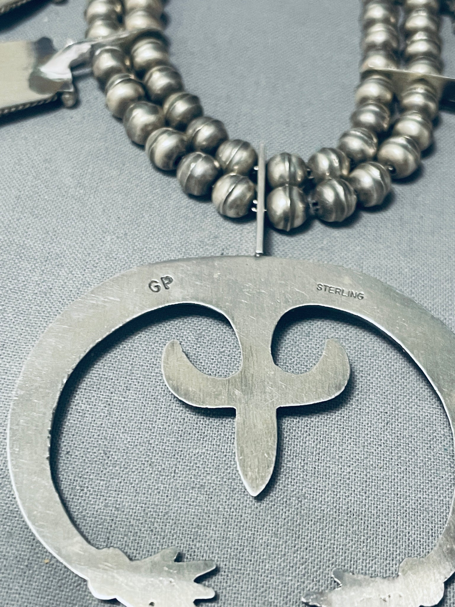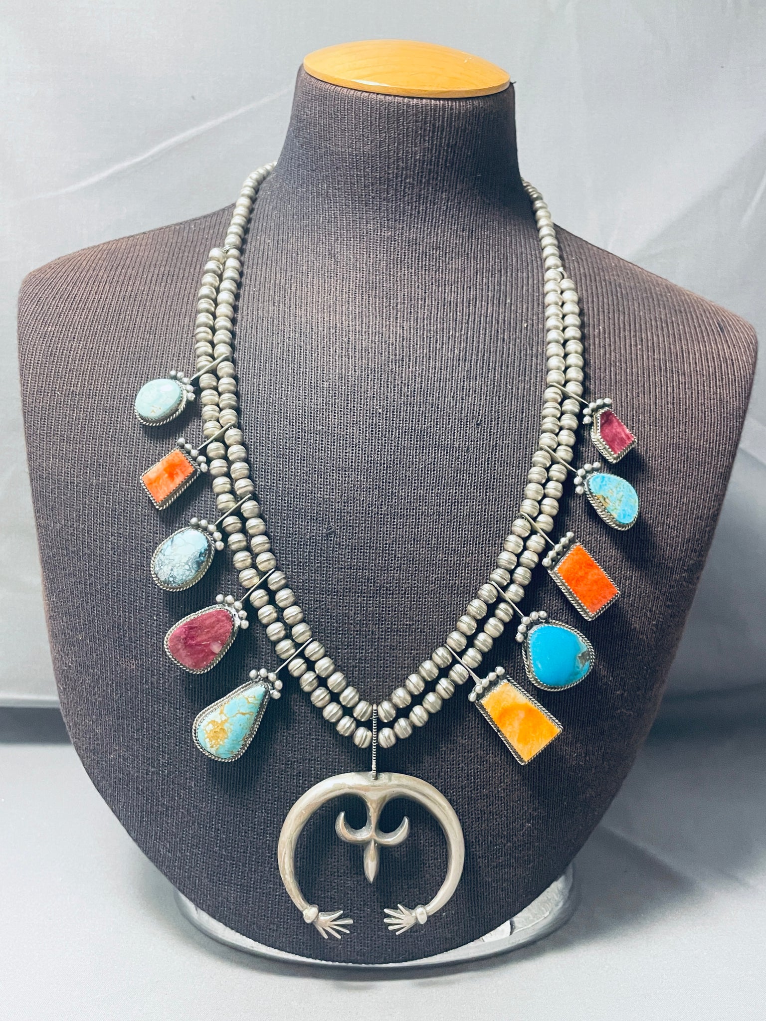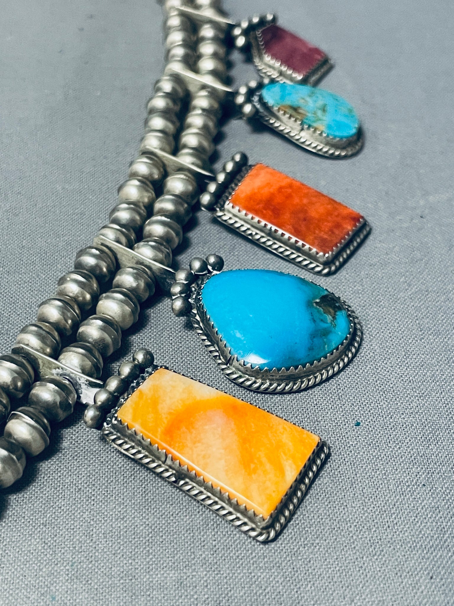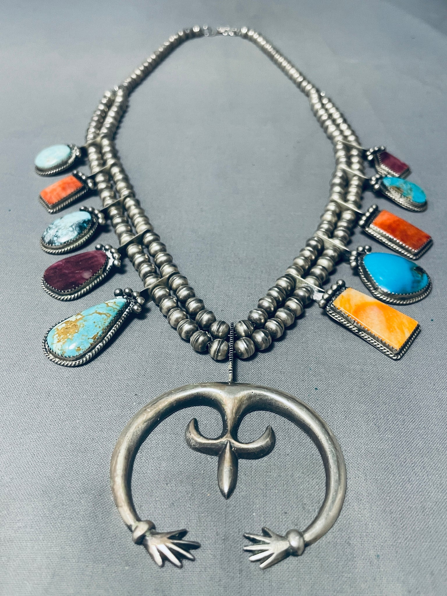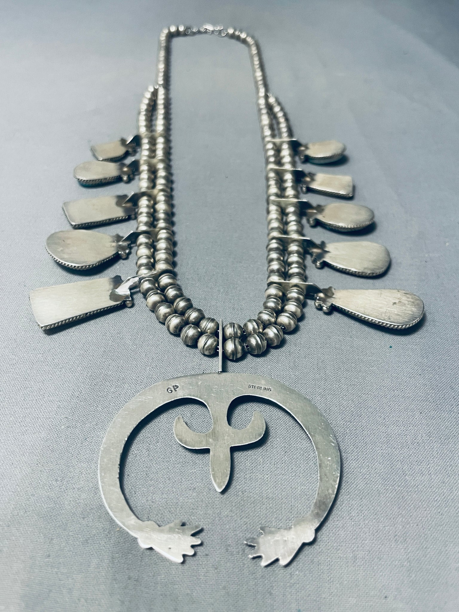 Dropdead Gorgeous Native American Navajo Turquoise Sterling Silver Squash Blossom Necklace