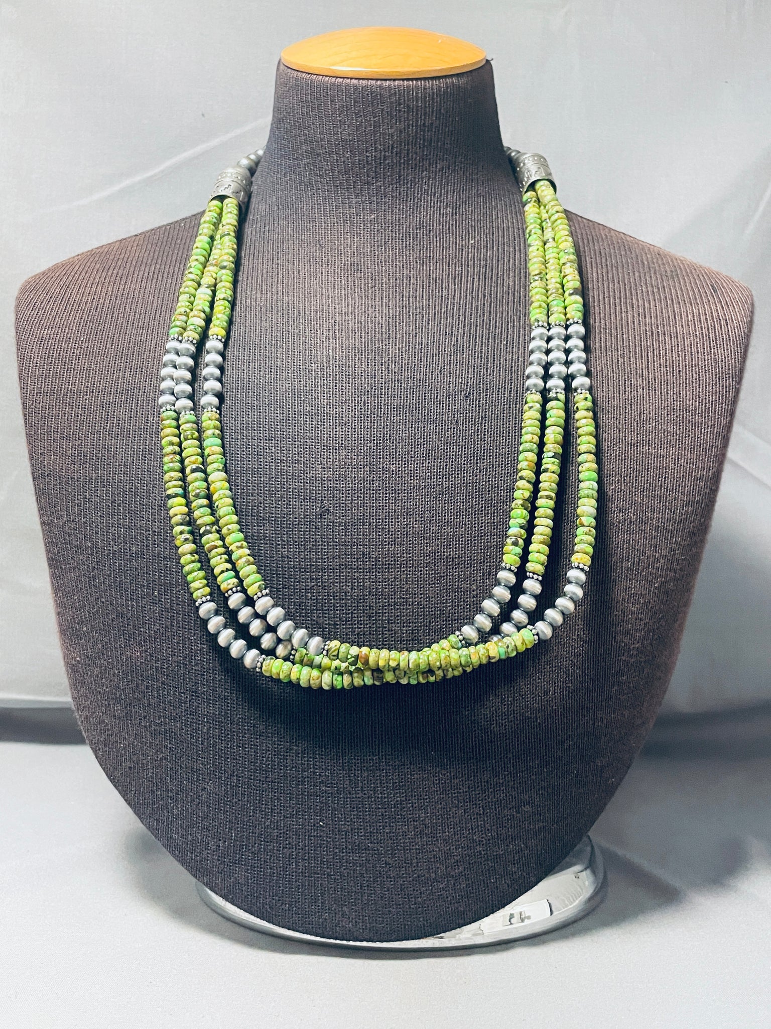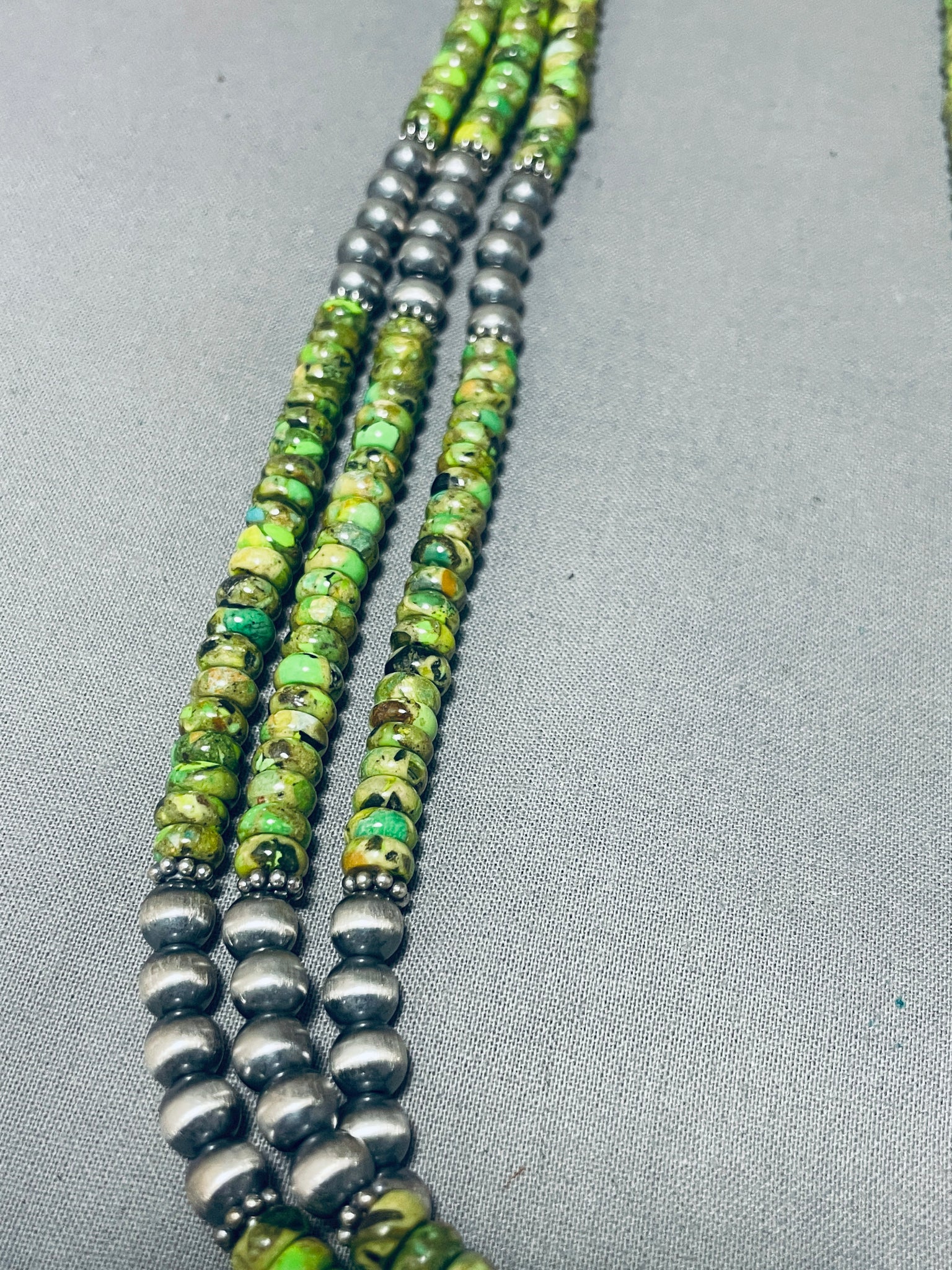 Drum Sterling Silver Native American Navajo Gaspeite Necklace