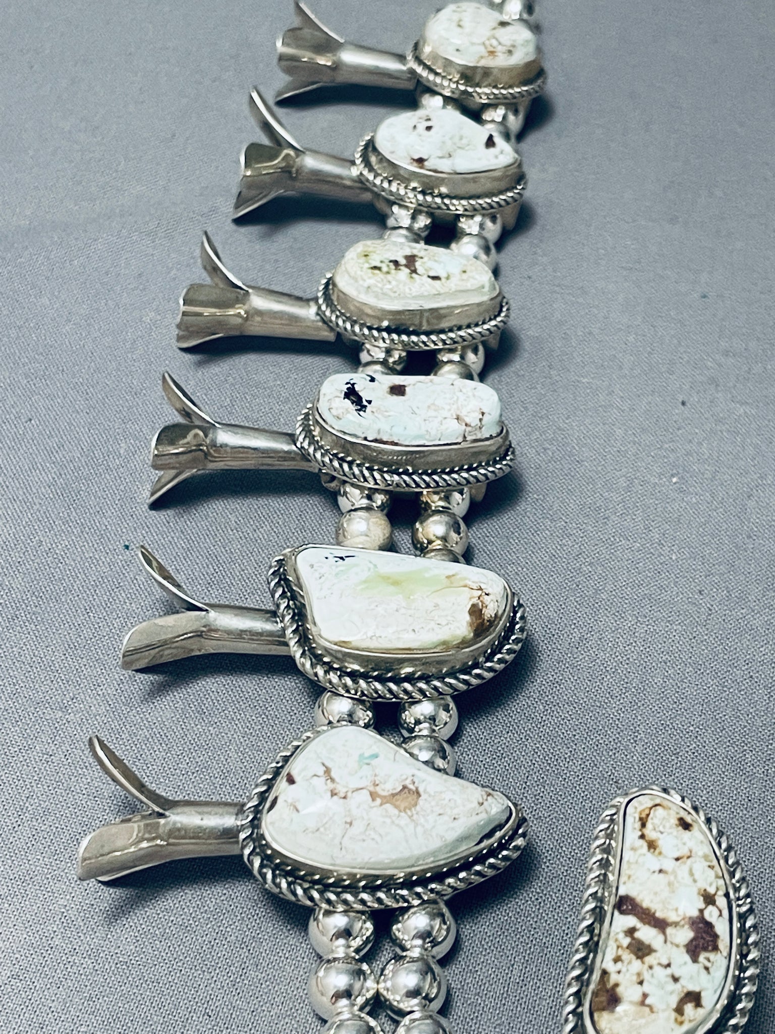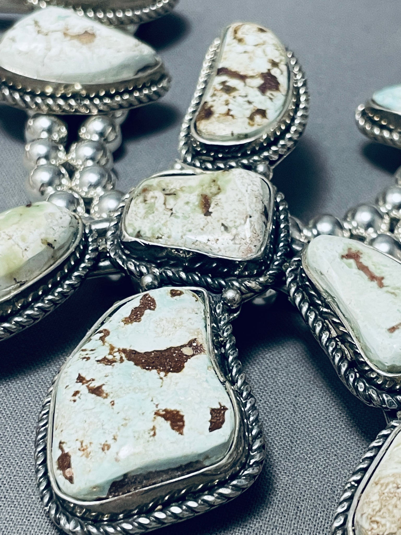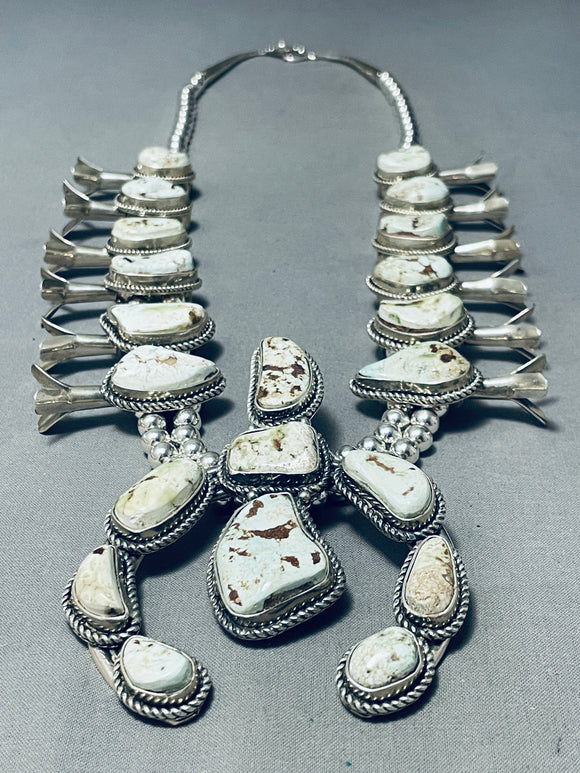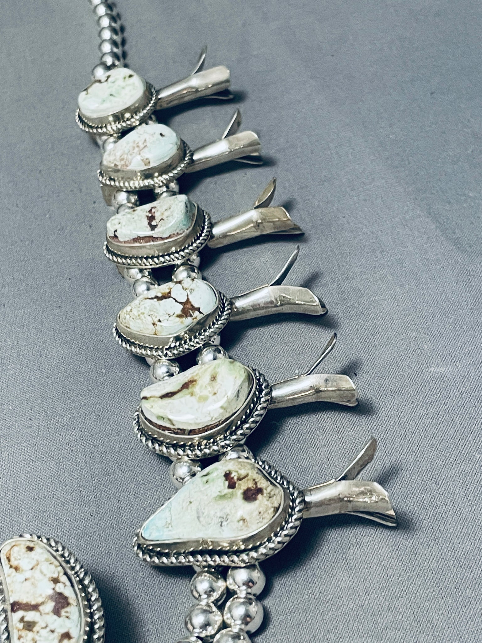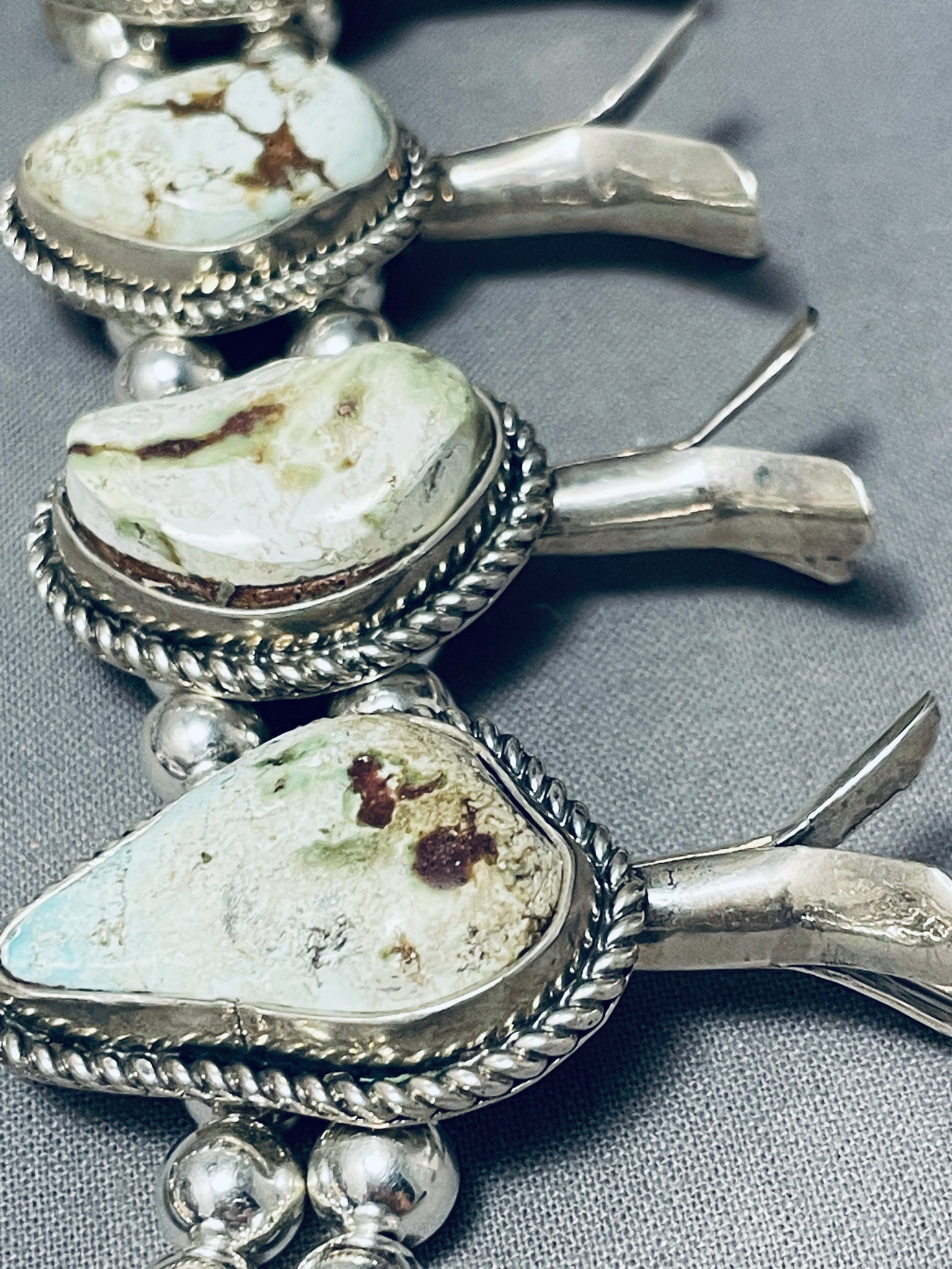 Dry Creek Turquoise Native American Navajo Sterling Silver Squash Blossom Necklace