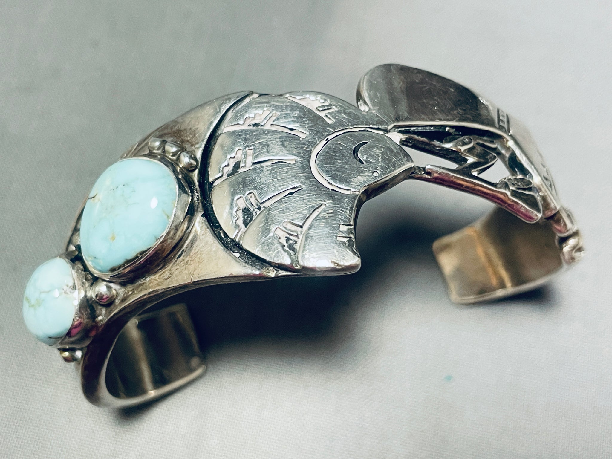 Dry Creek Turquoise!! Vintage Native American Navajo Kokopelli Sterling Silver Bracelet