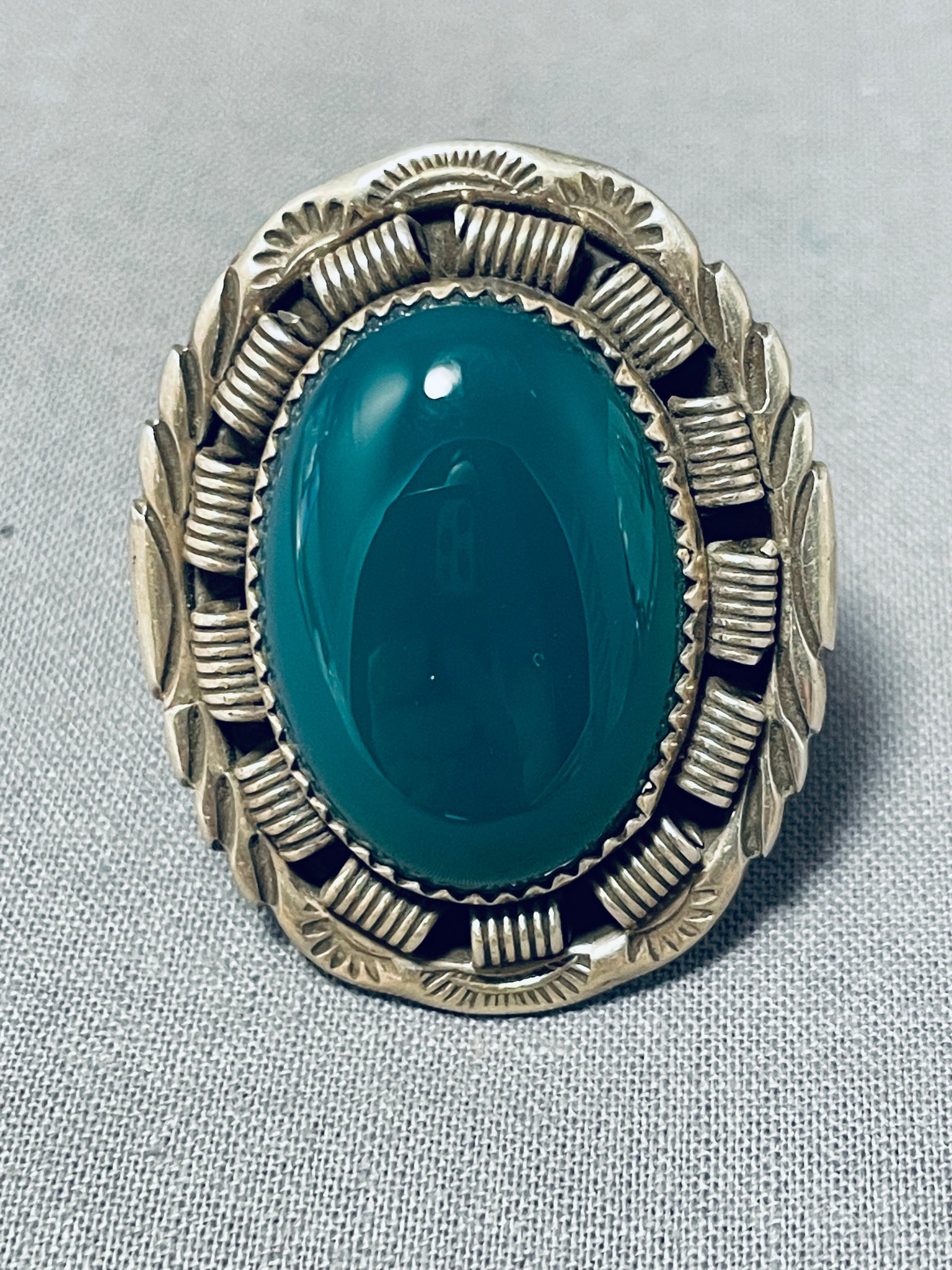 Dynamic Joe Tso Native American Navajo Jade Sterling Silver Ring Signed Jo Tso