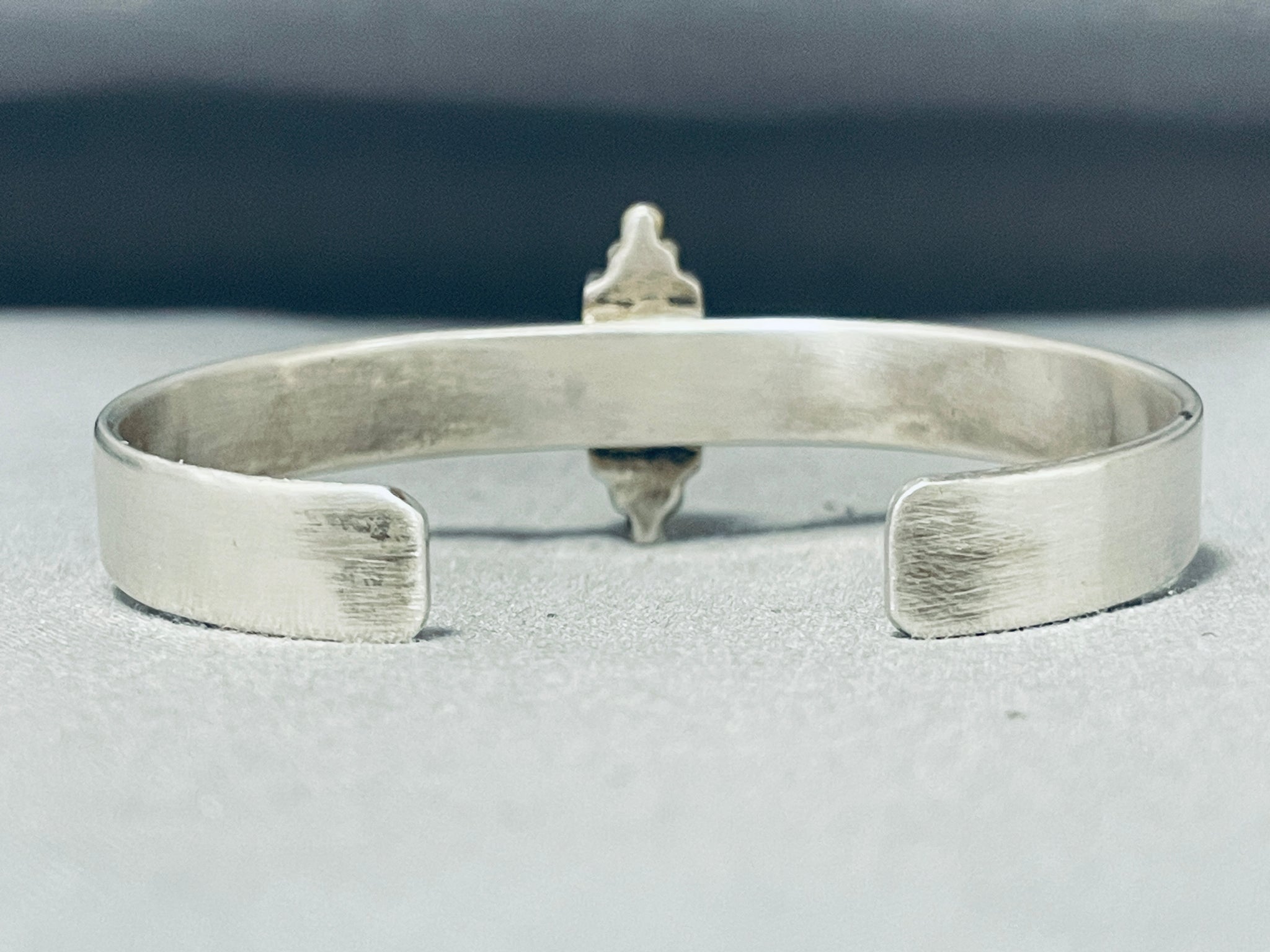 Dynamic Native American Navajo Lapis Sterling Silver Bracelet Signed Alvin Monte