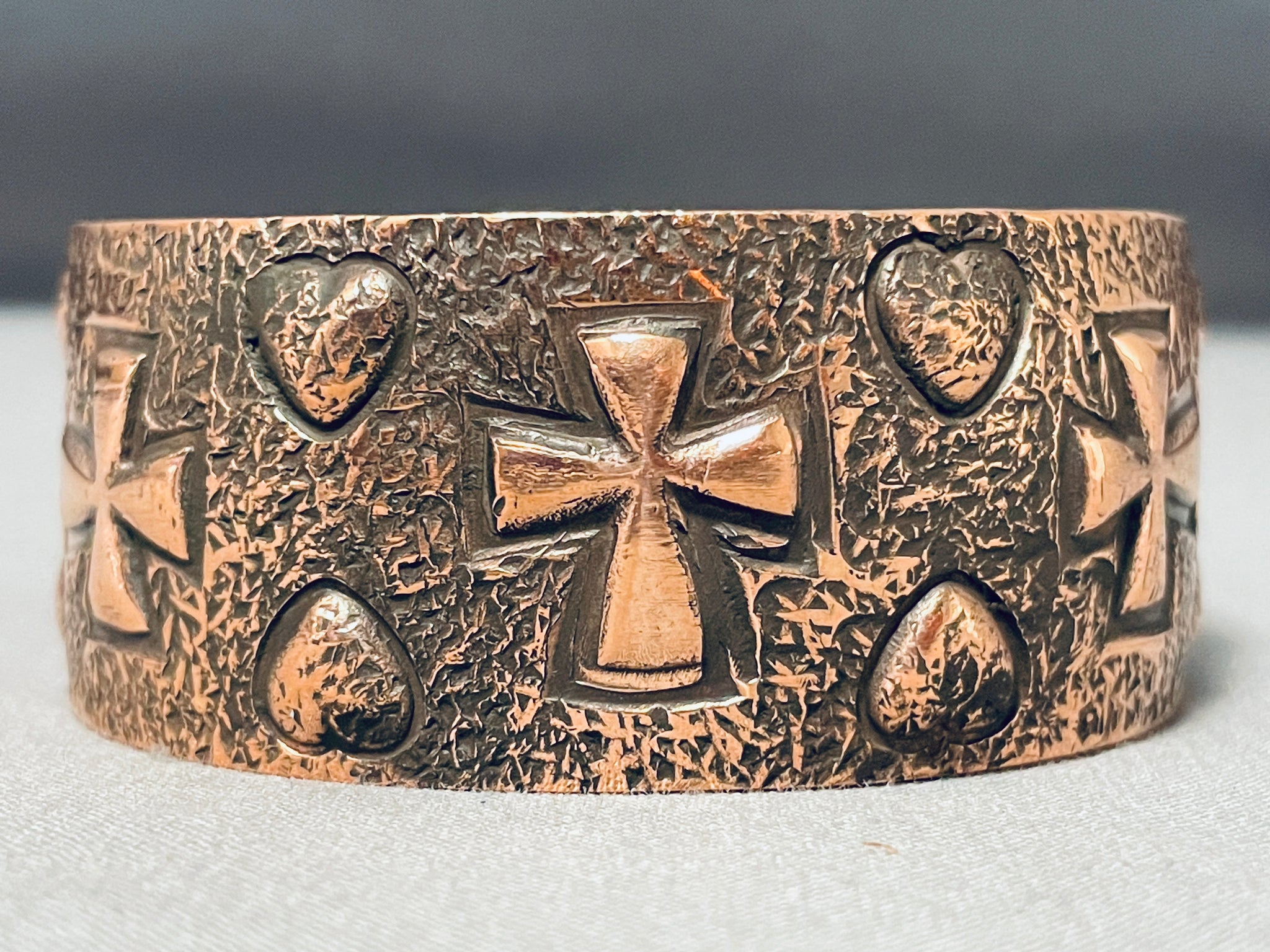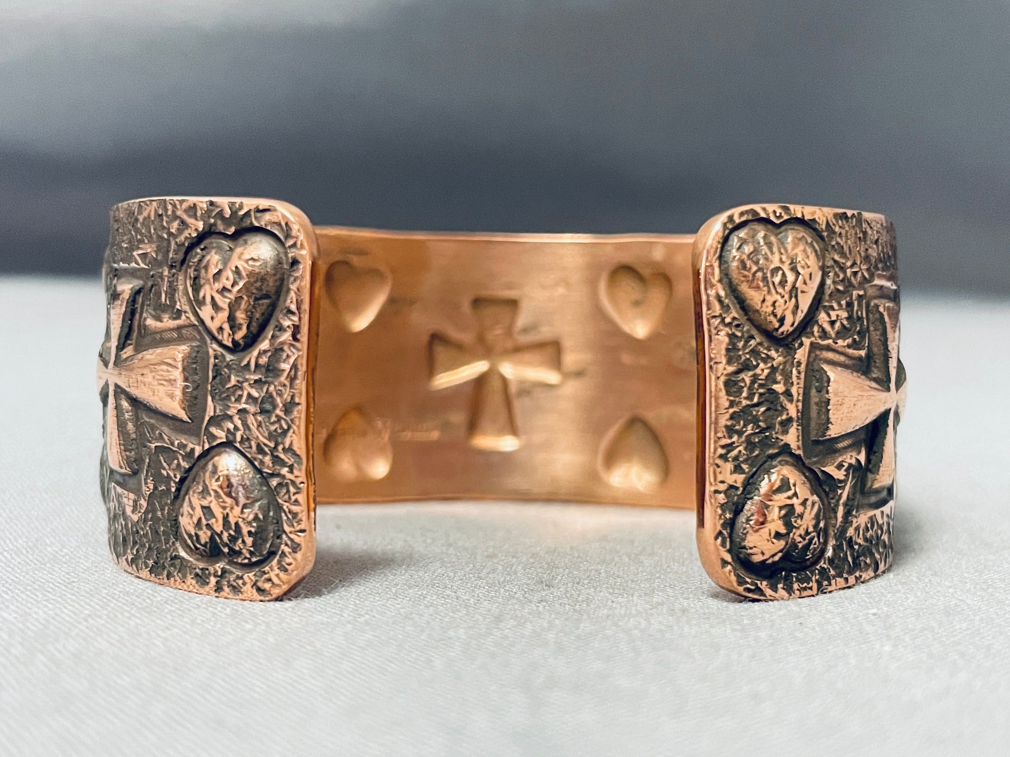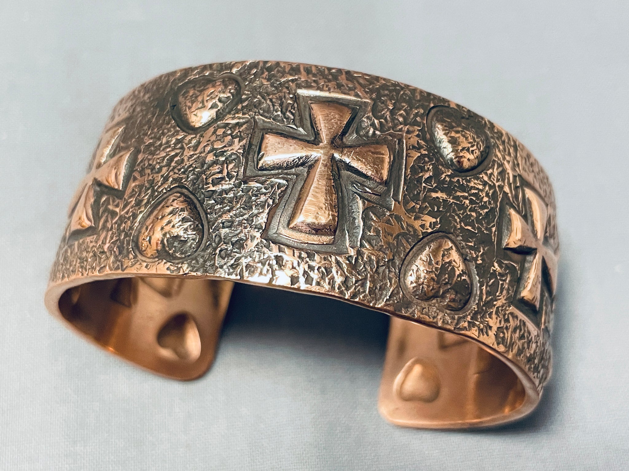 Dynamic Native American Navajo Signed Ron Willie Copper Bracelet