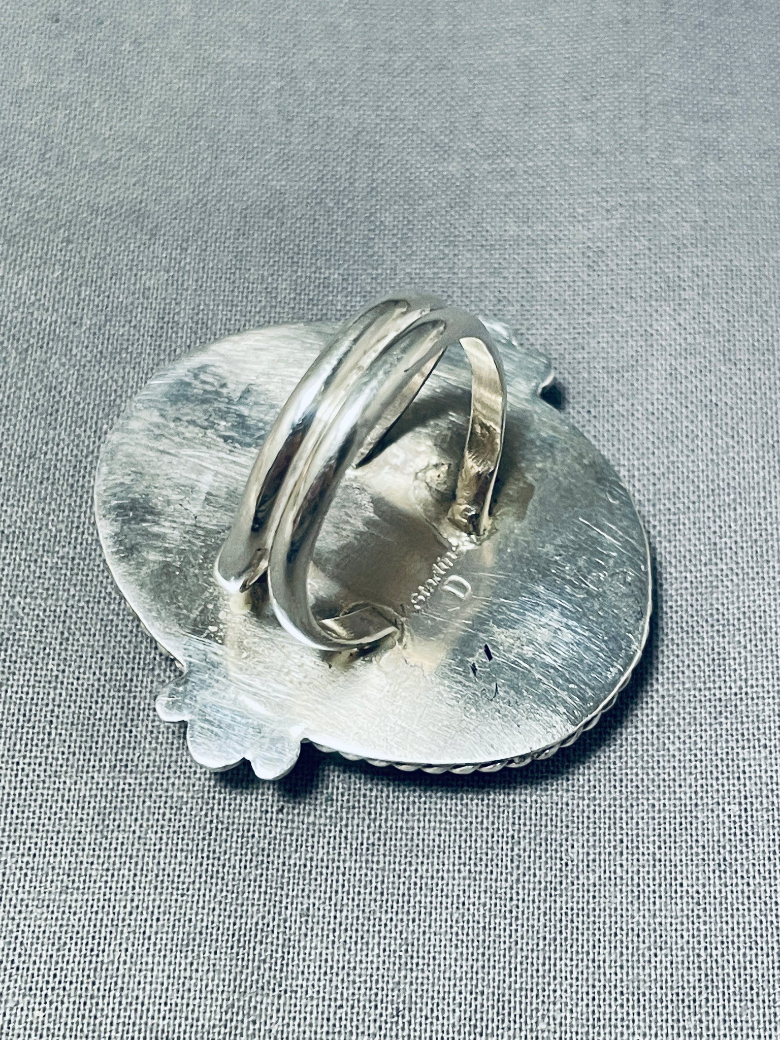 Dynamic Native American Navajo Turquoise Sterling Silver Ring Signed Calvin Desson