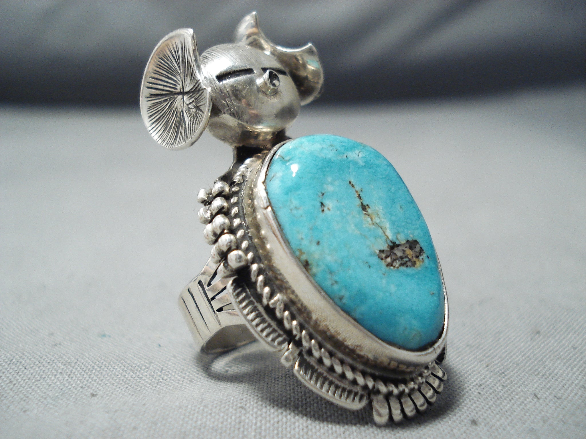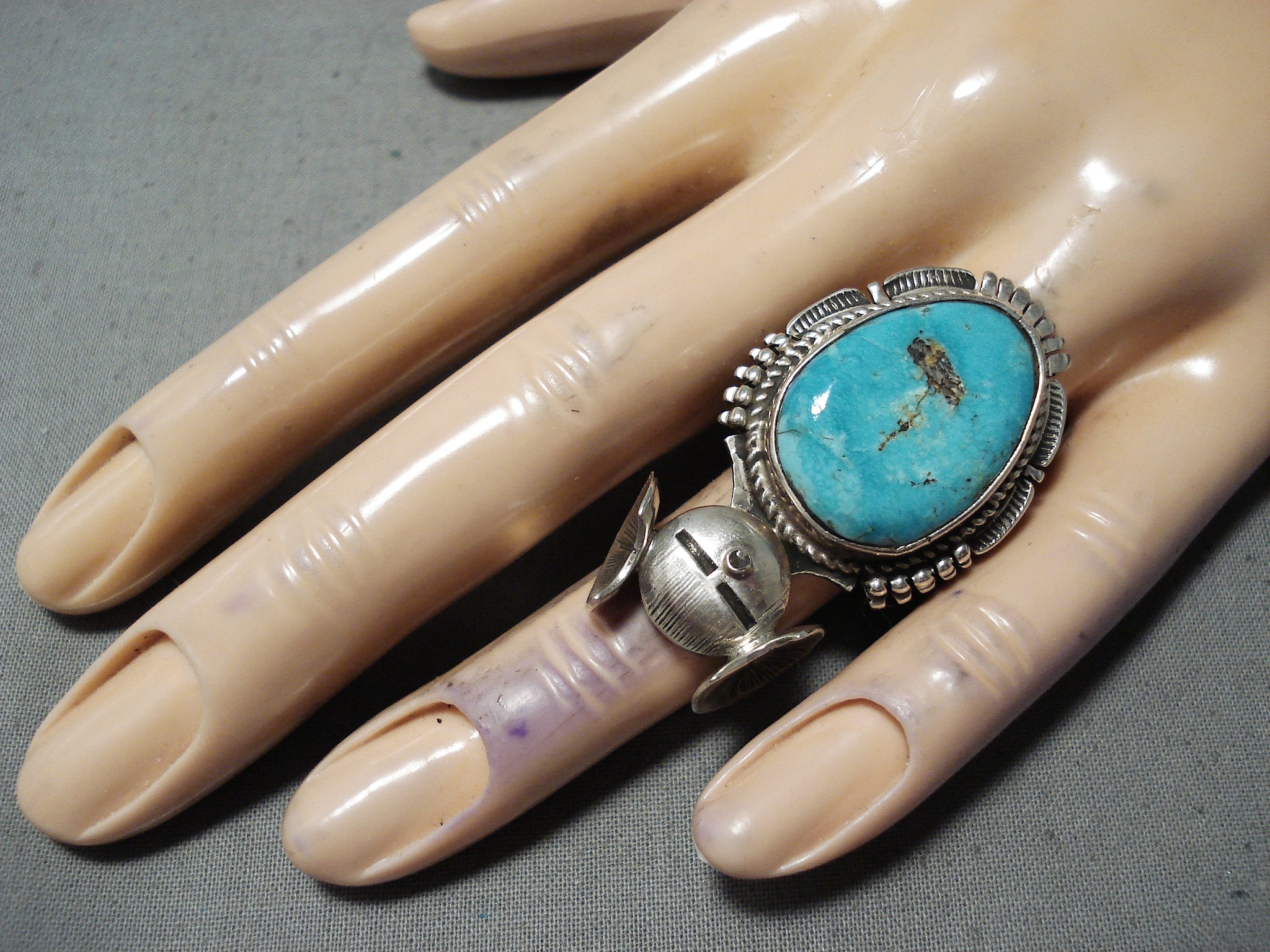 Dynamic Navajo Kingman Turquoise Sterling Silver Ring Native American