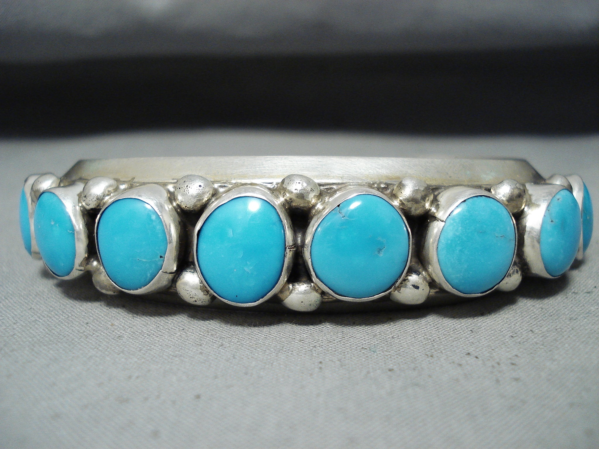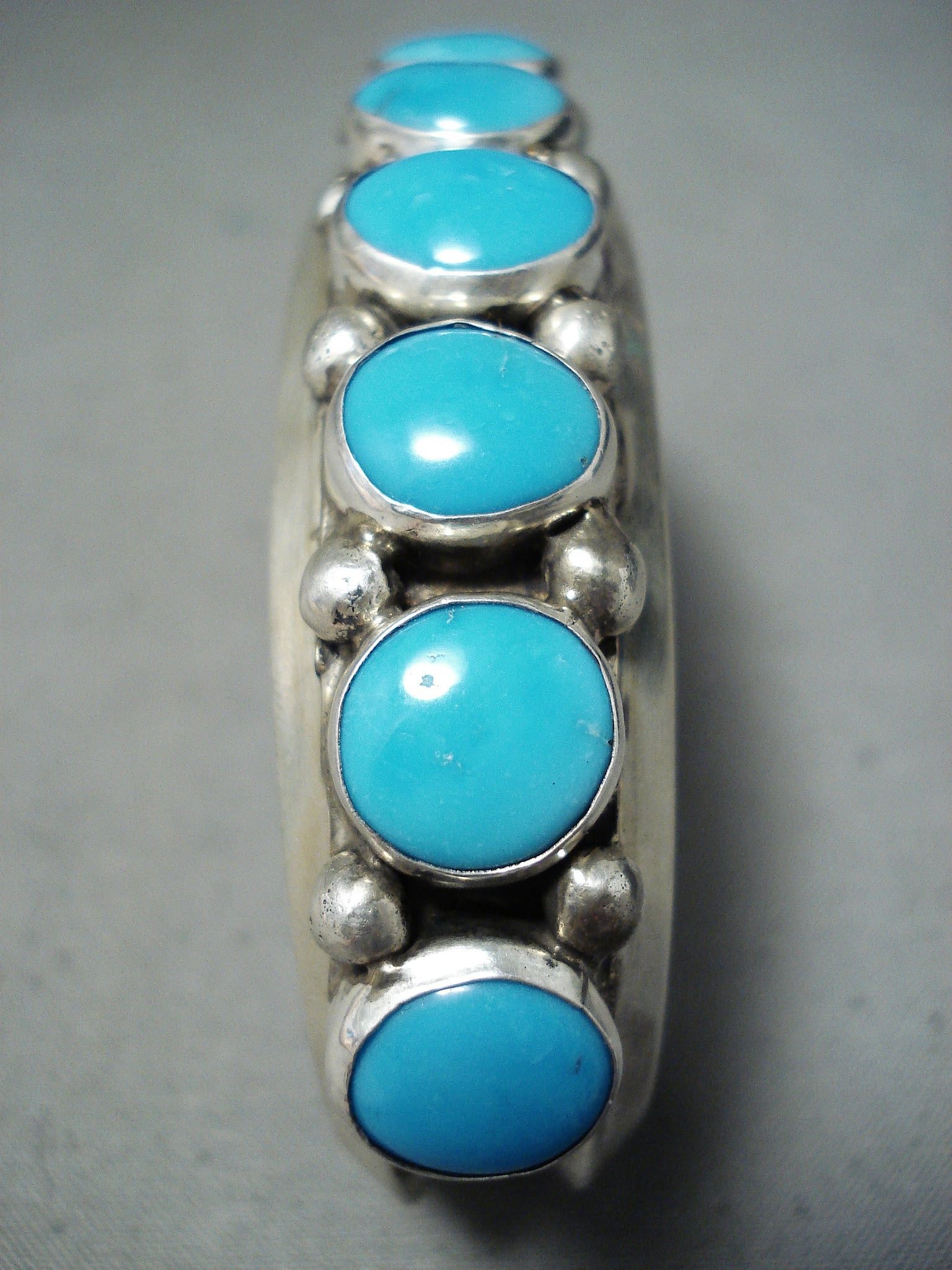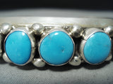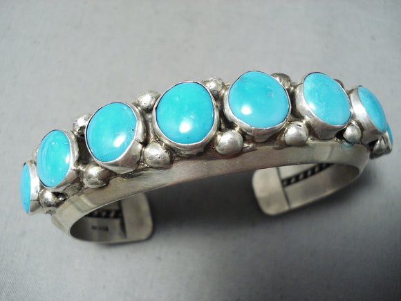 Dynamic Vintage Native American Navajo Blue Gem Turquoise Sterling Silver Bracelet