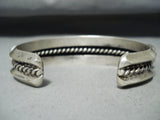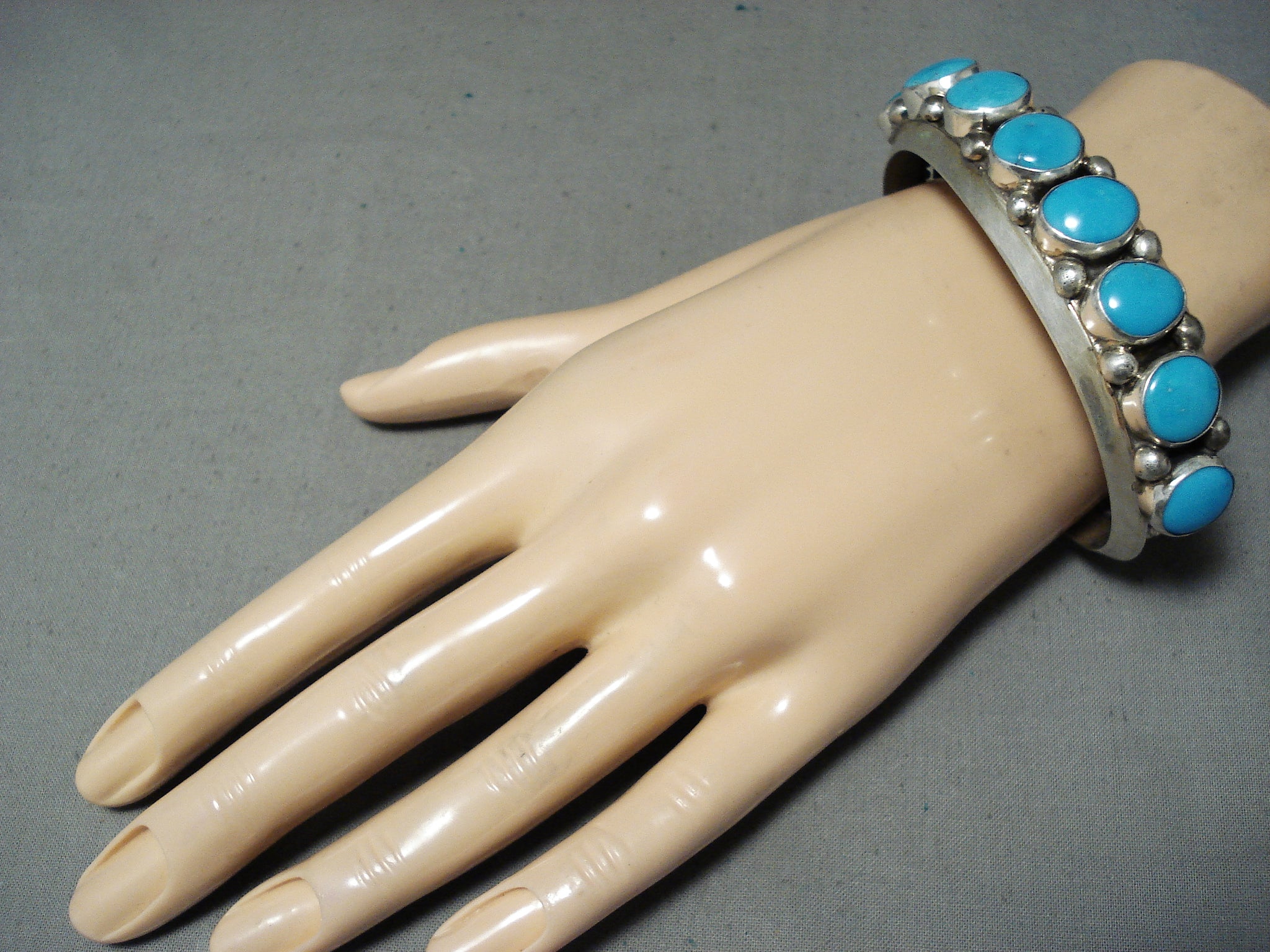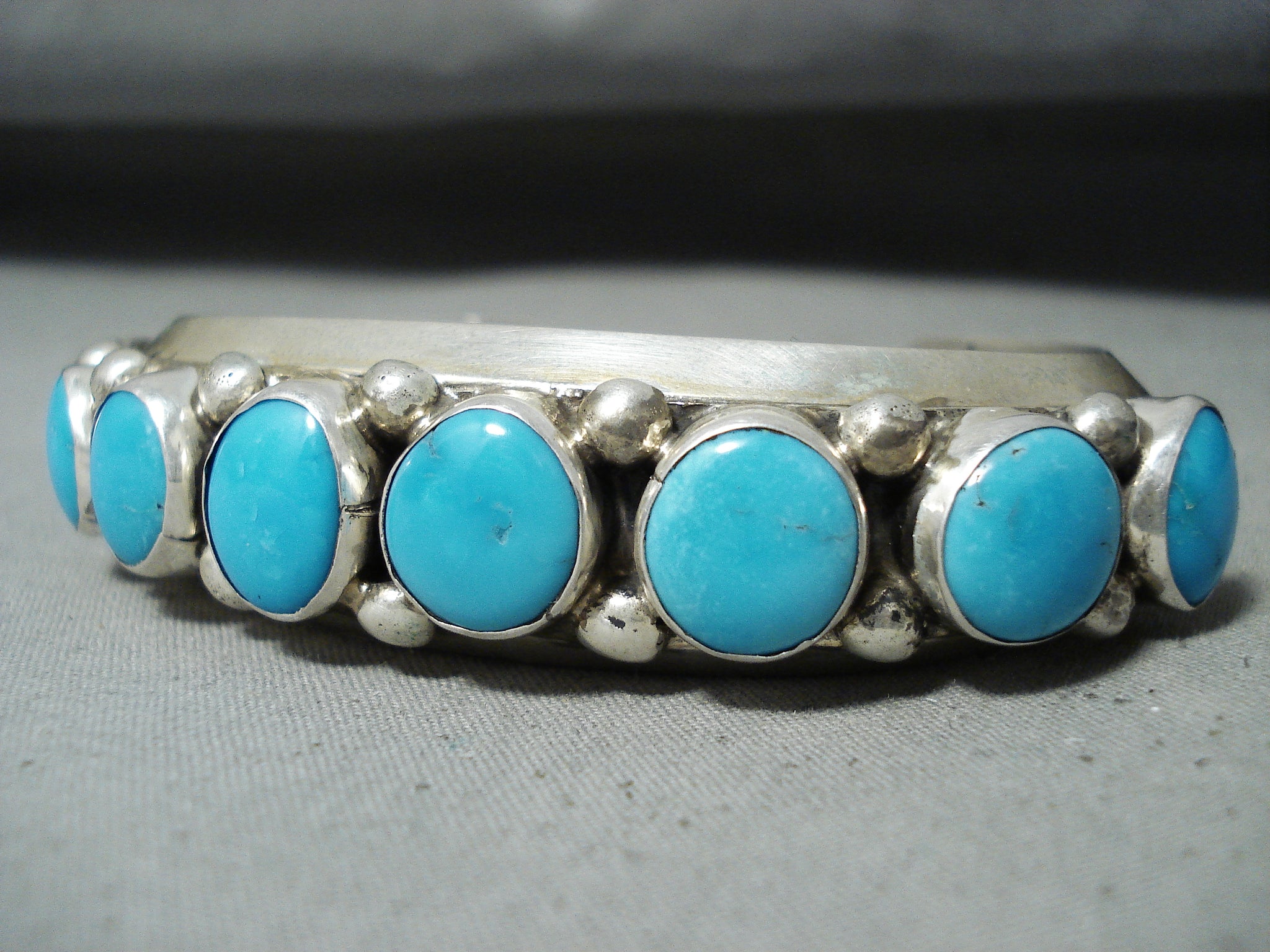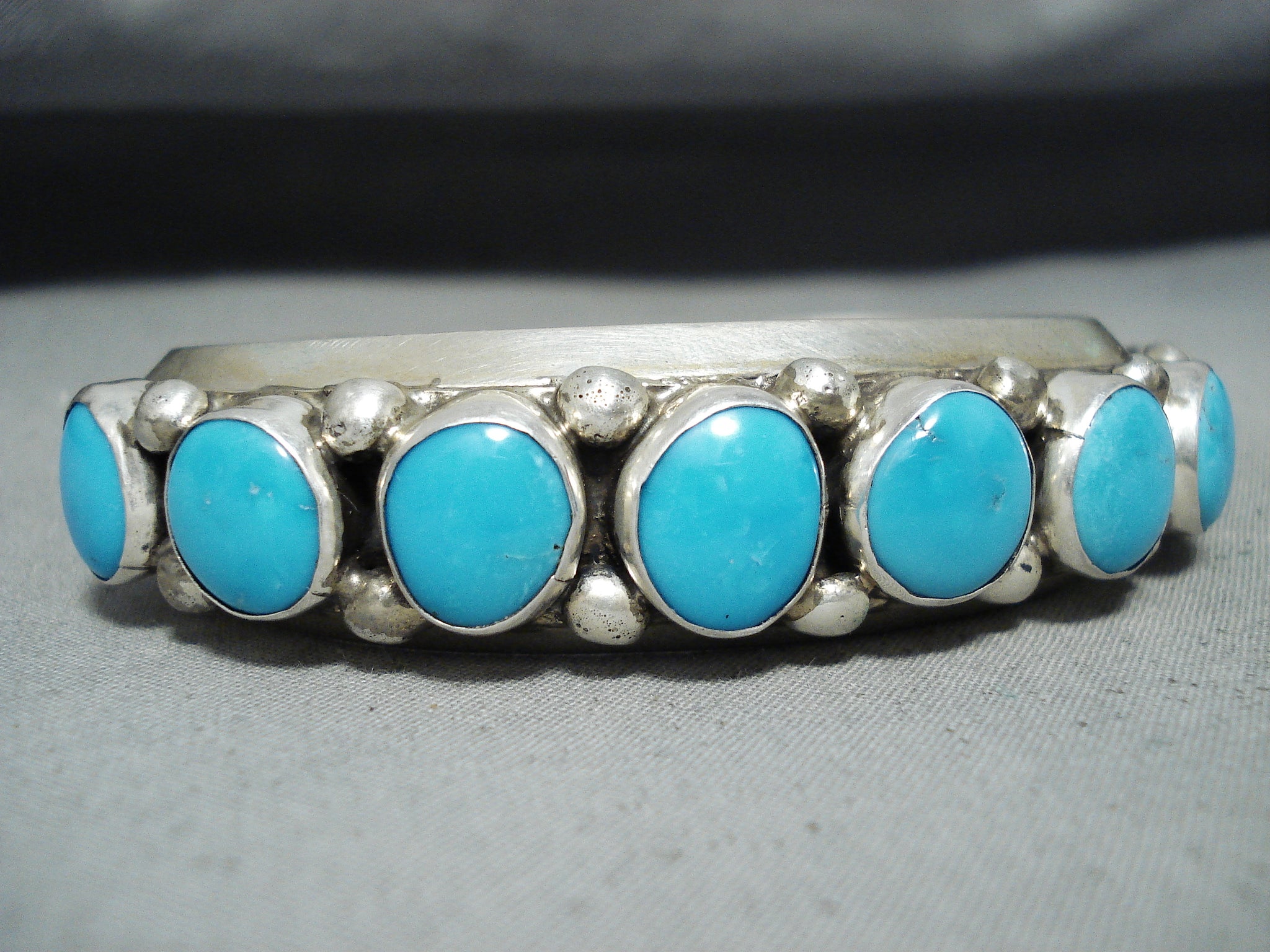 Dynamic Vintage Native American Navajo Blue Gem Turquoise Sterling Silver Bracelet